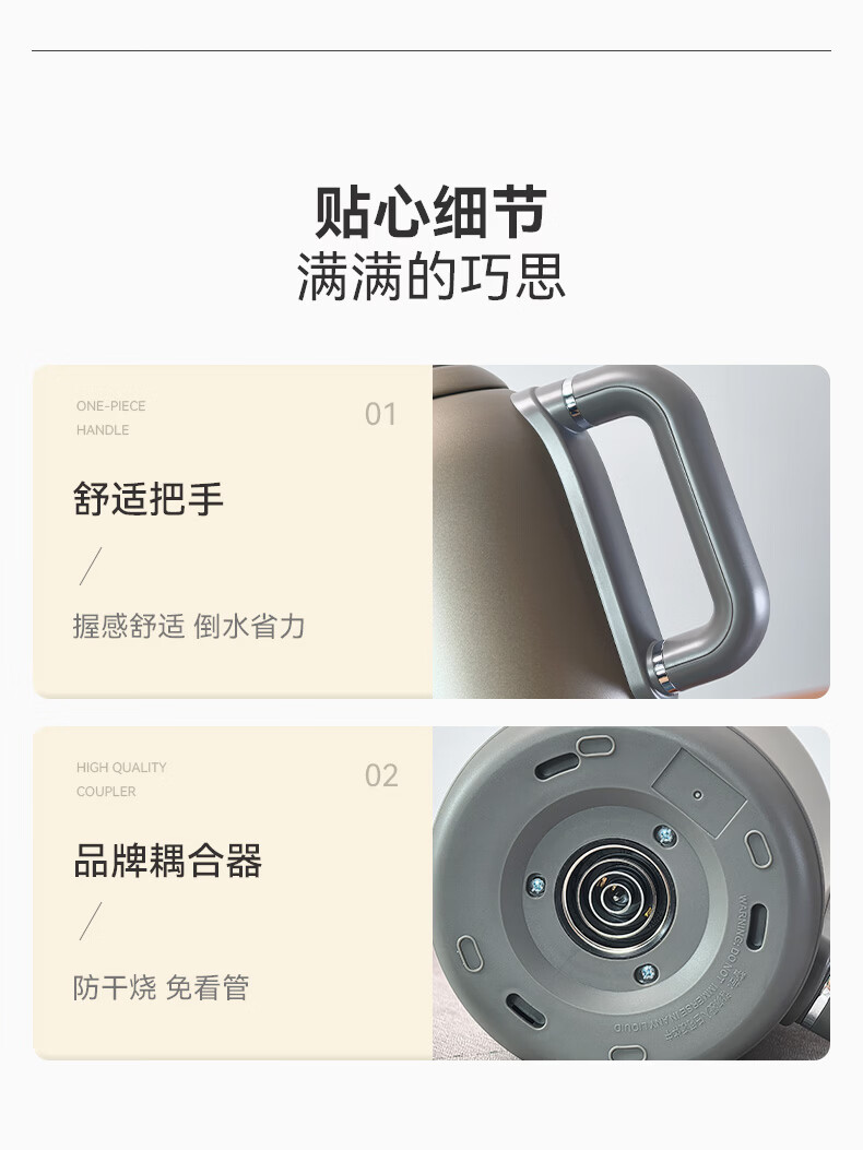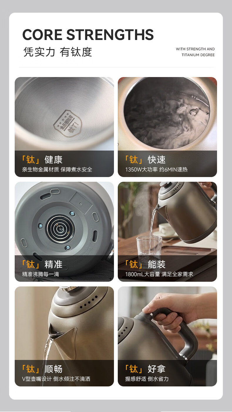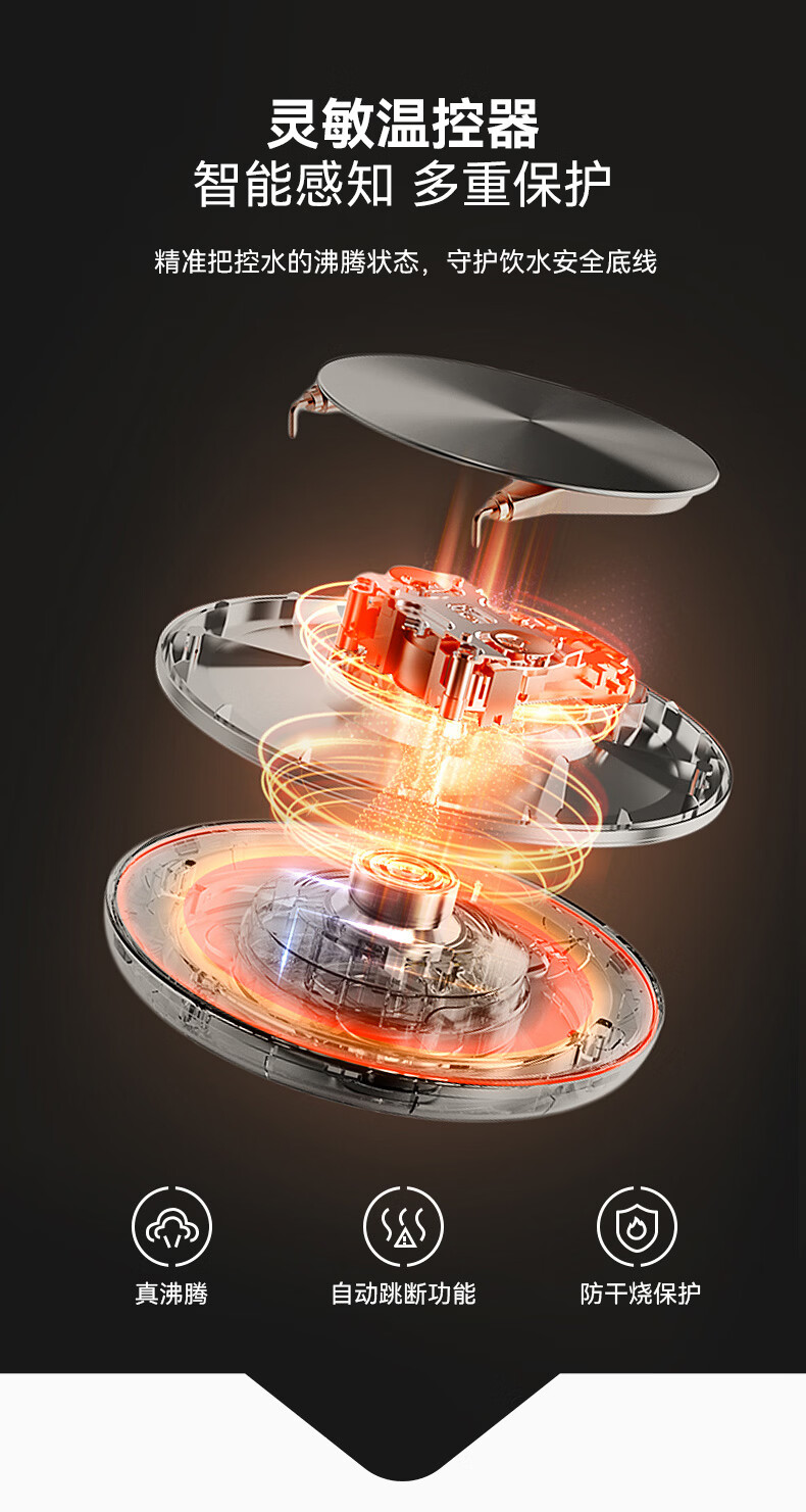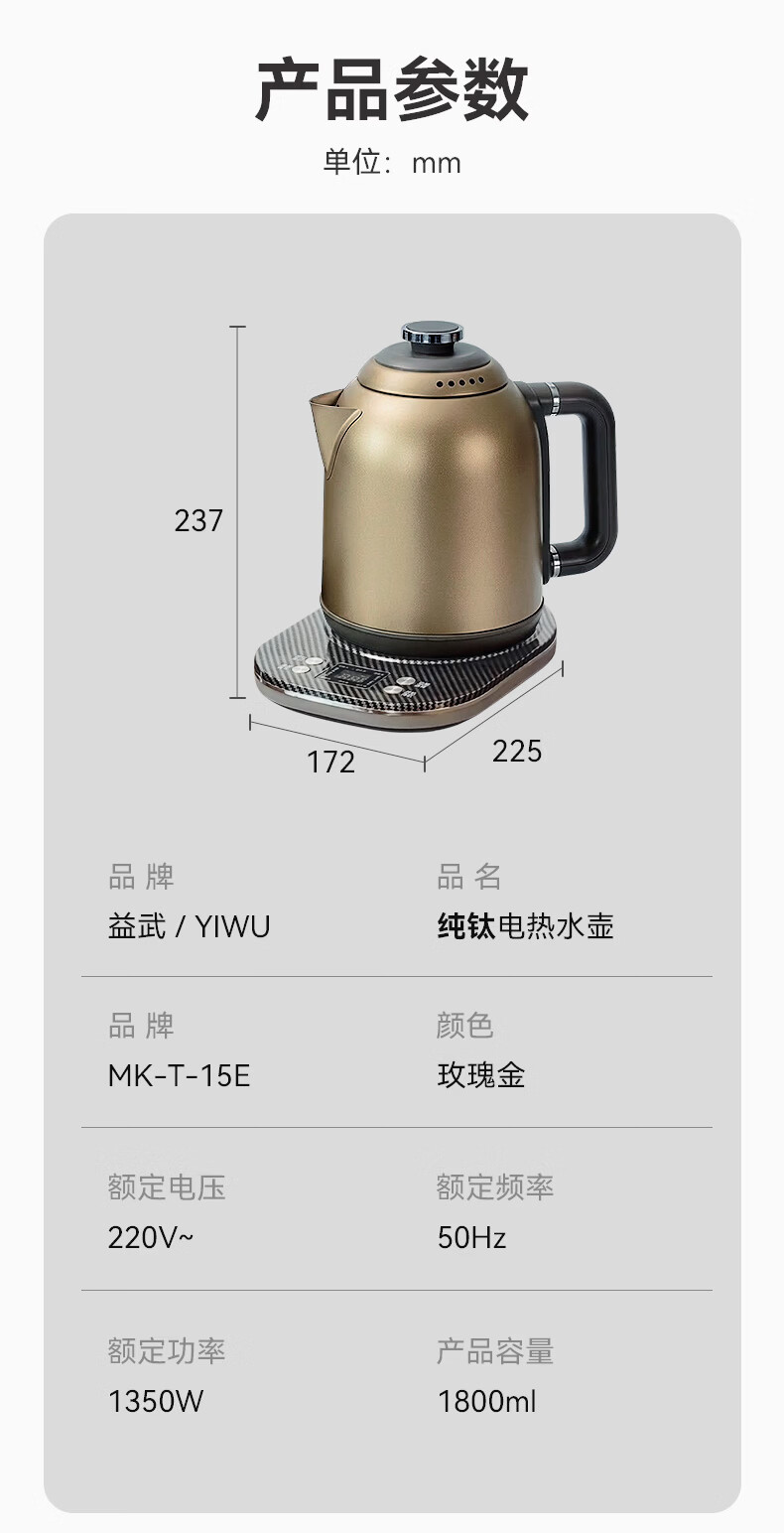 益武纯钛烧水壶家用多功能煮茶壶变频恒温防干烧大容量不锈钢煮茶炉 304不锈钢 1.8L