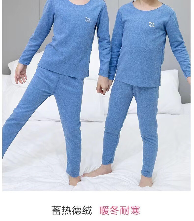 莫代尔儿童内衣套装无骨无痕中大童秋衣秋裤秋冬男女童家居保暖套装 儿童套装蓝色 3XL (160) cm