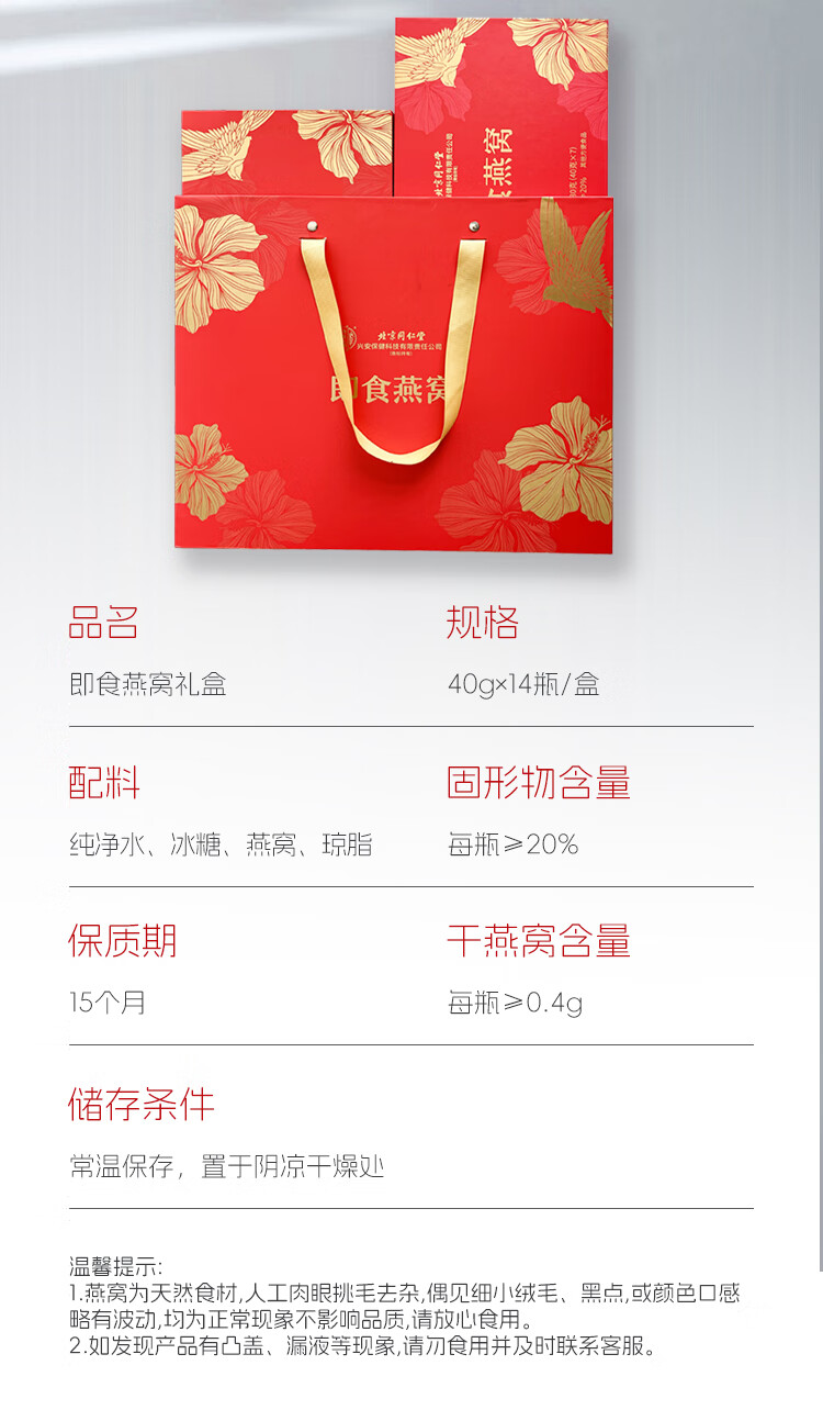 内廷上用北京同仁堂即食燕窝冰糖燕窝礼盒孕妈营养品送长辈礼品节日礼物 7瓶礼盒装-美好心意 20%固形物高性价比