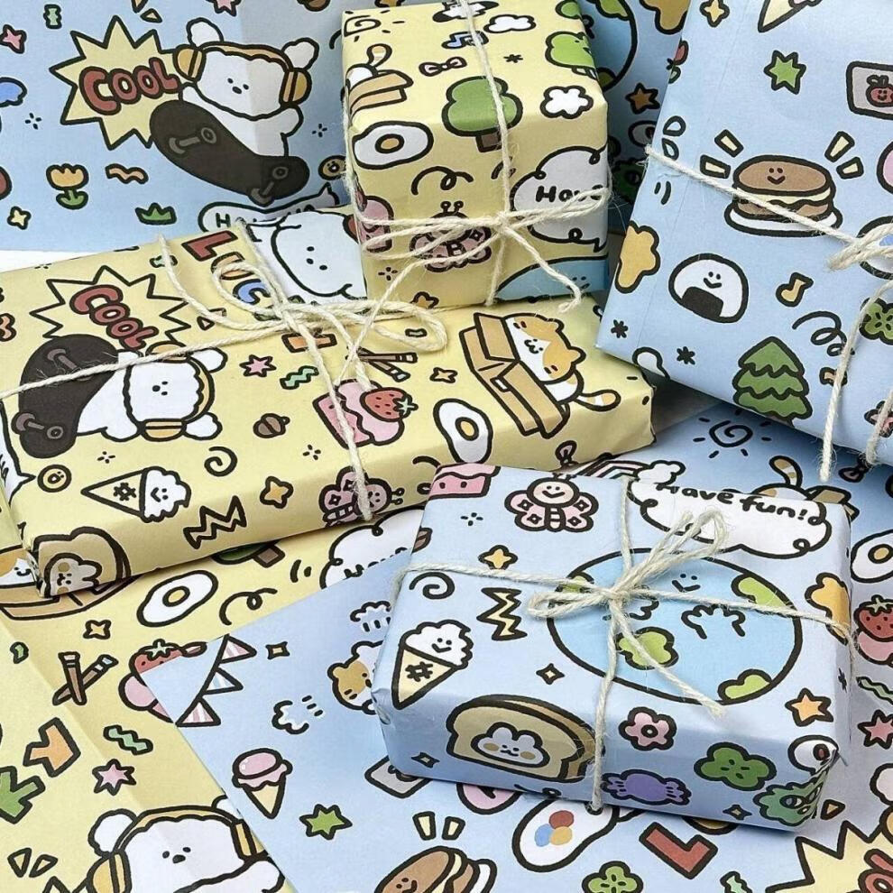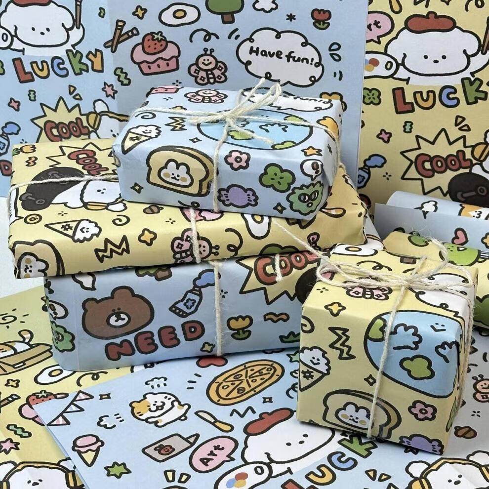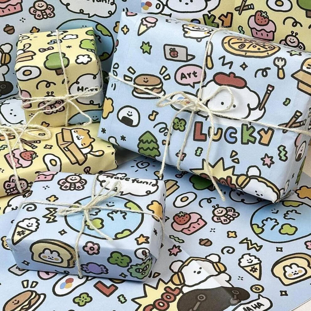 MPPMCK涂鸦lucky小狗大张礼物包装纸高颜值可爱生日礼品礼物包装书皮纸6 6张蓝色涂鸦小狗+6张黄色涂鸦小 以上规格(50*70CM)