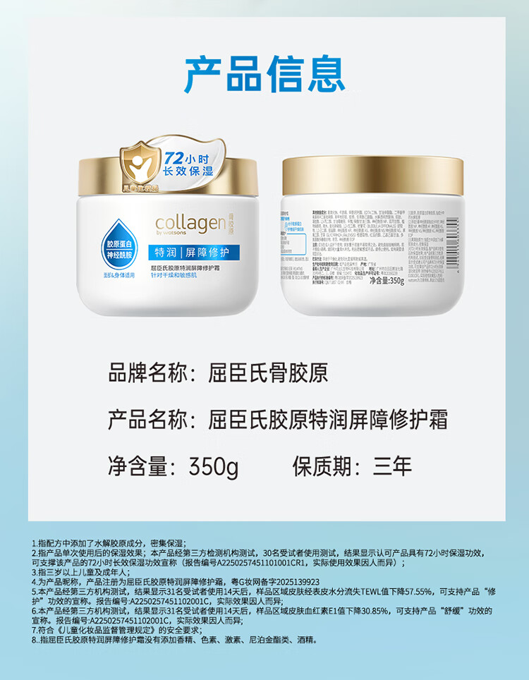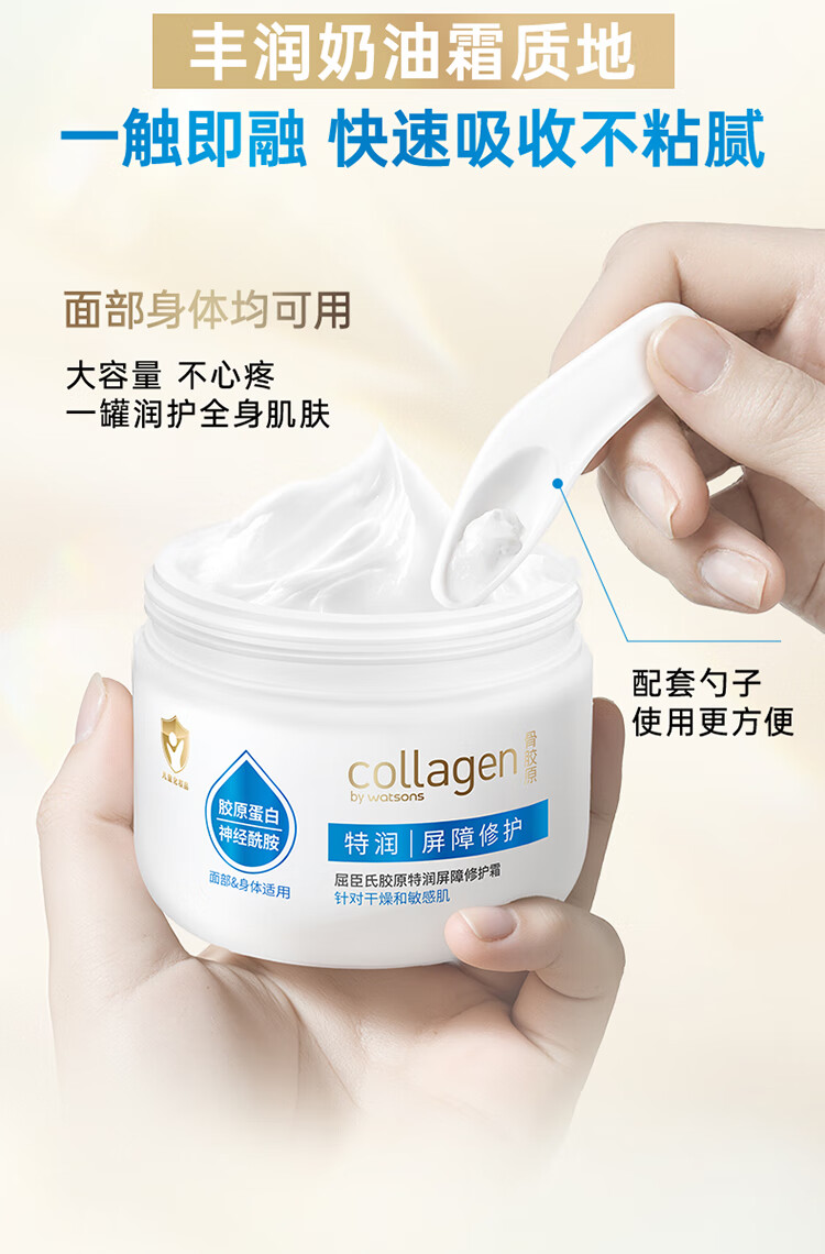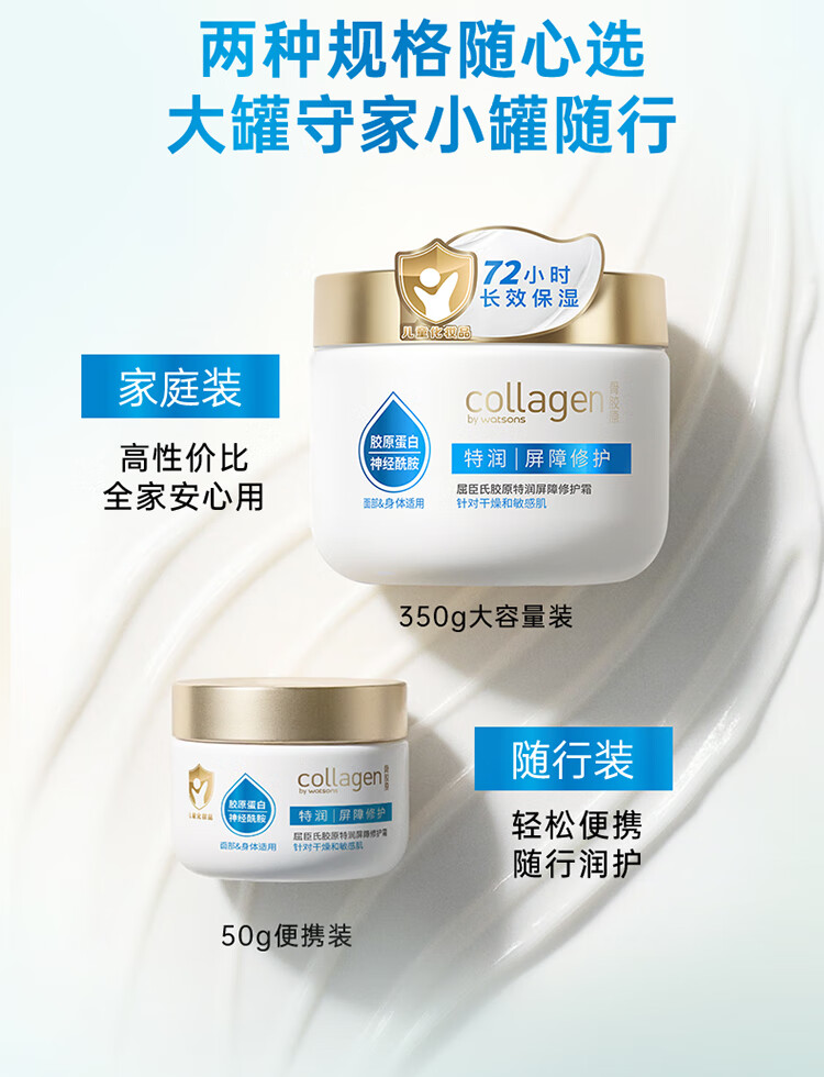 屈臣氏情人节礼物胶原弹润爽肤水弹润乳液 清爽水润 保湿 保湿乳 胶原特润屏障修护霜 350g