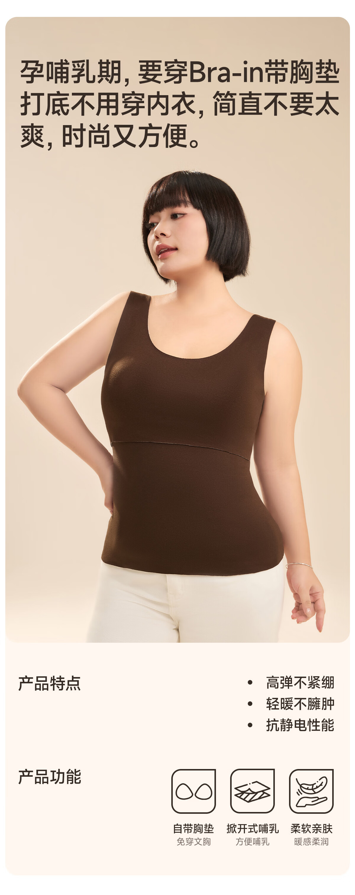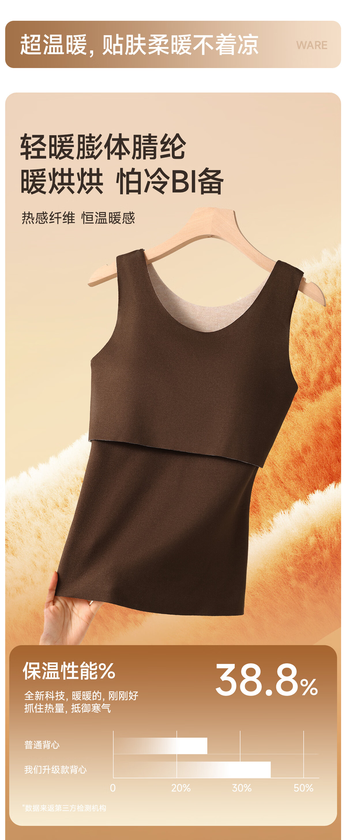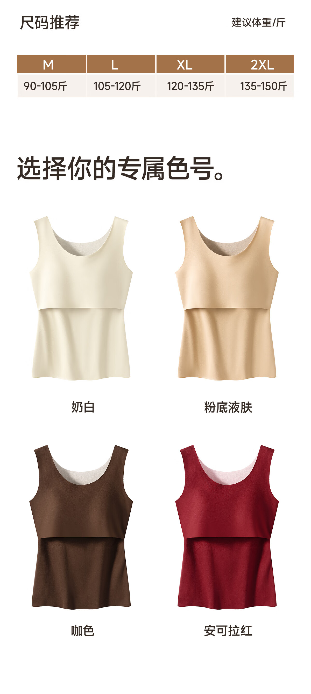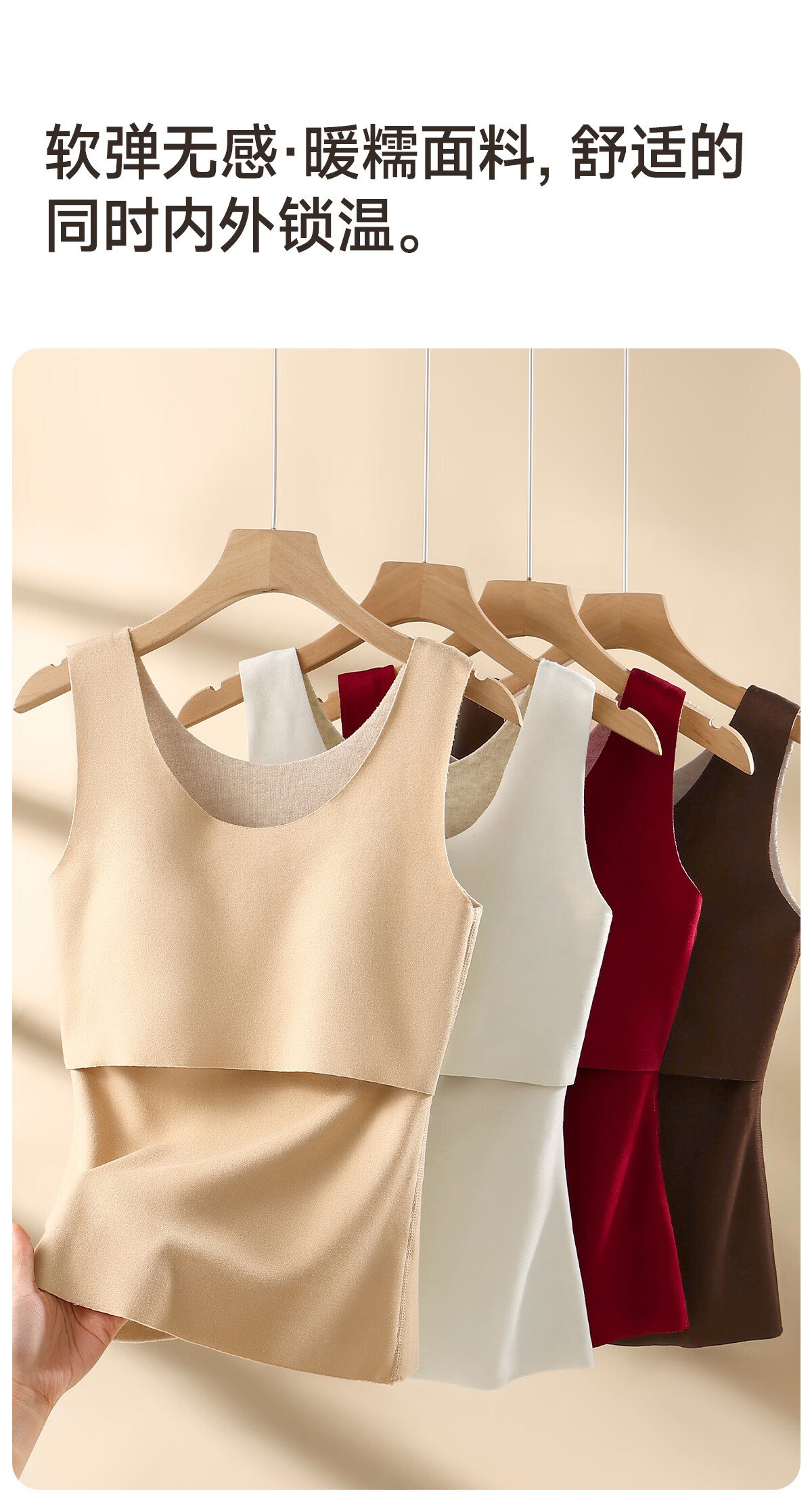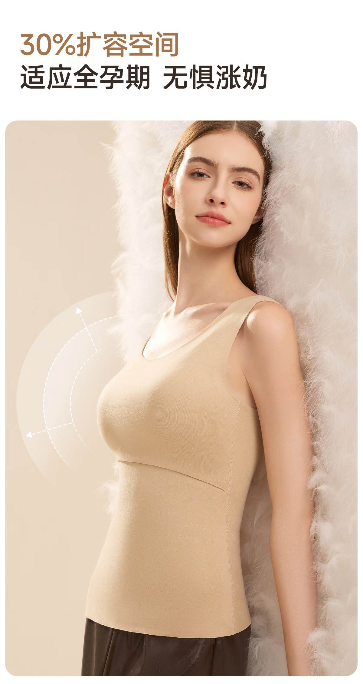 都市丽人女士保暖内衣【貂绒羊毛桑蚕丝】BRA背心软弹无感内外锁温防走光 奶白 2XL 建议体重135-150