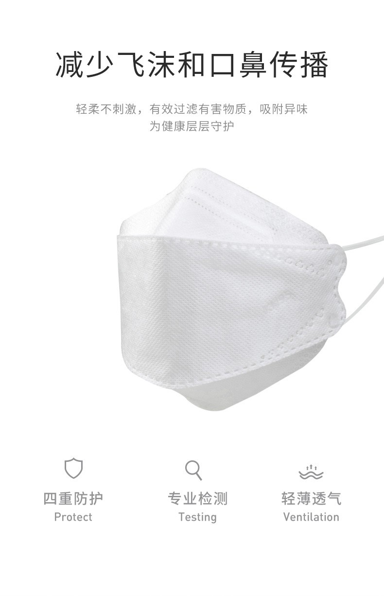 卫士立时尚韩版KN95口罩独立包装鱼型柳叶款一次性3D立体四层防护口罩 kn95柳叶型-100个白 色【独立包装】