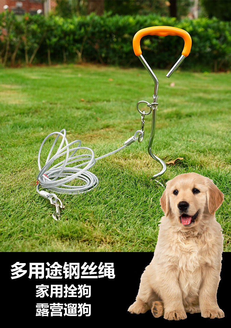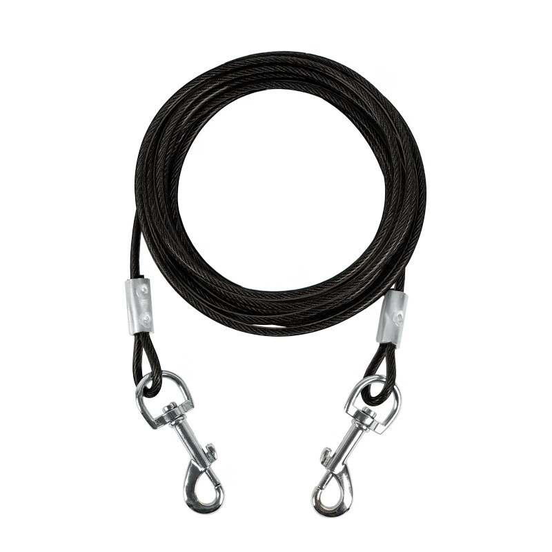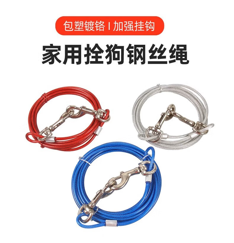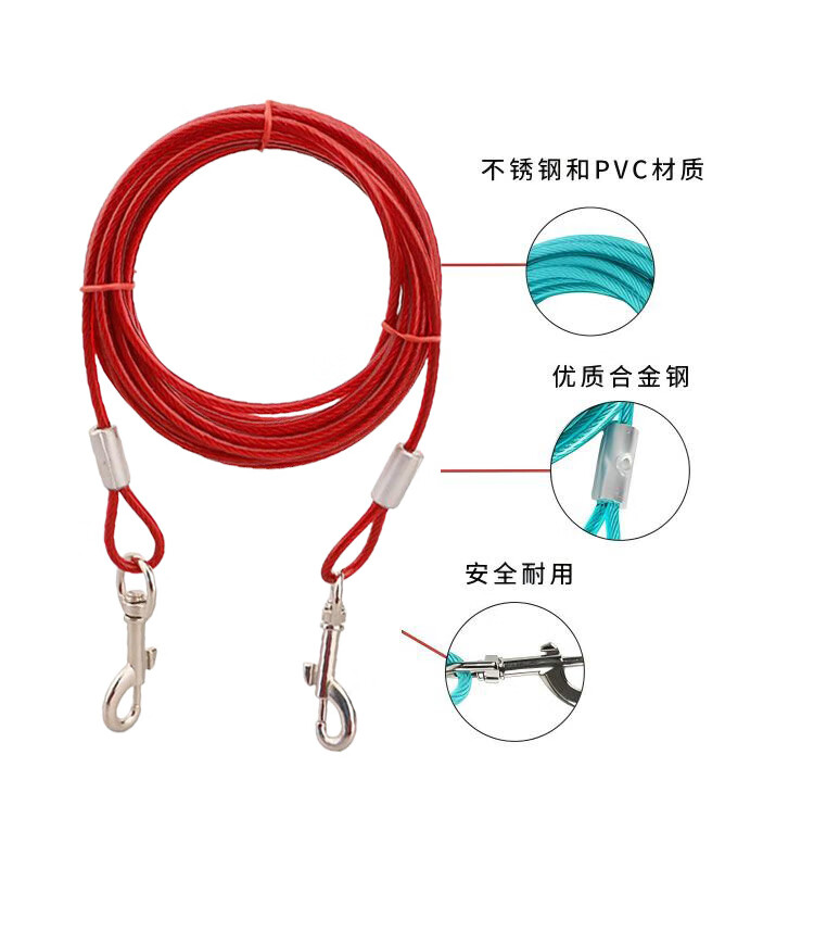 斯派科钢丝拴狗绳拴狗链防咬断钢丝耐咬1.8/3/5/10米铁链子农村中大型犬 黑色5米5mm+黑项圈L码(18-35斤)