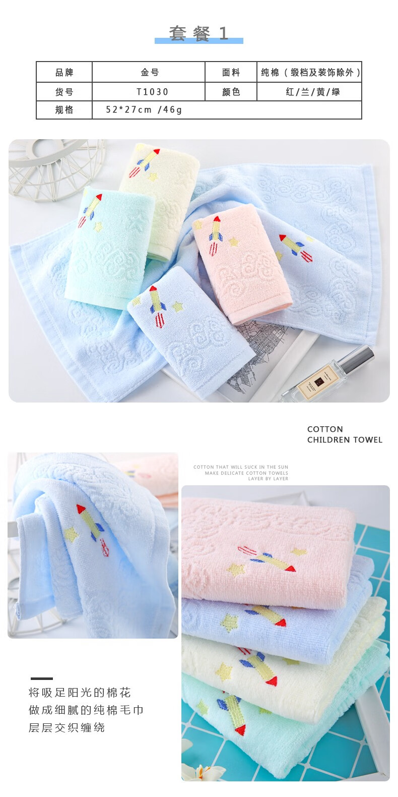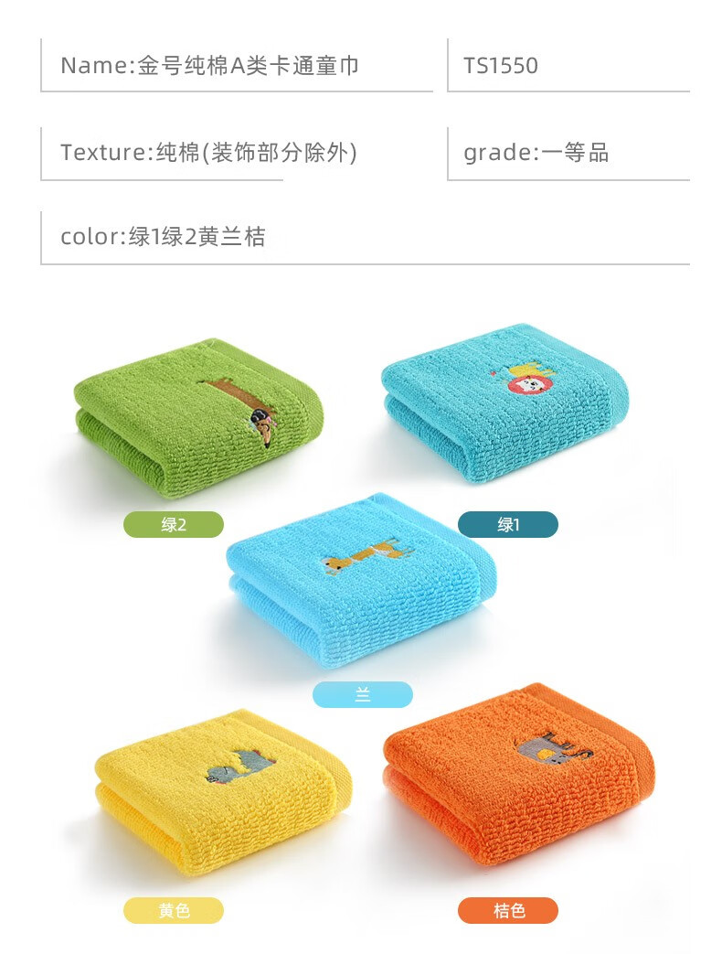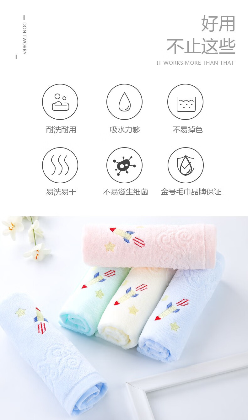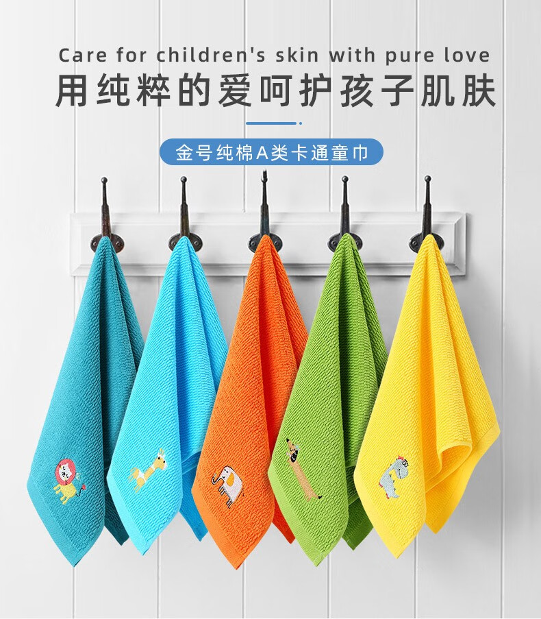 金号(KING SHORE)5条纯棉A类儿童毛巾全棉宝宝洗脸巾柔软舒适强吸水婴儿擦汗小毛巾 混色 5条