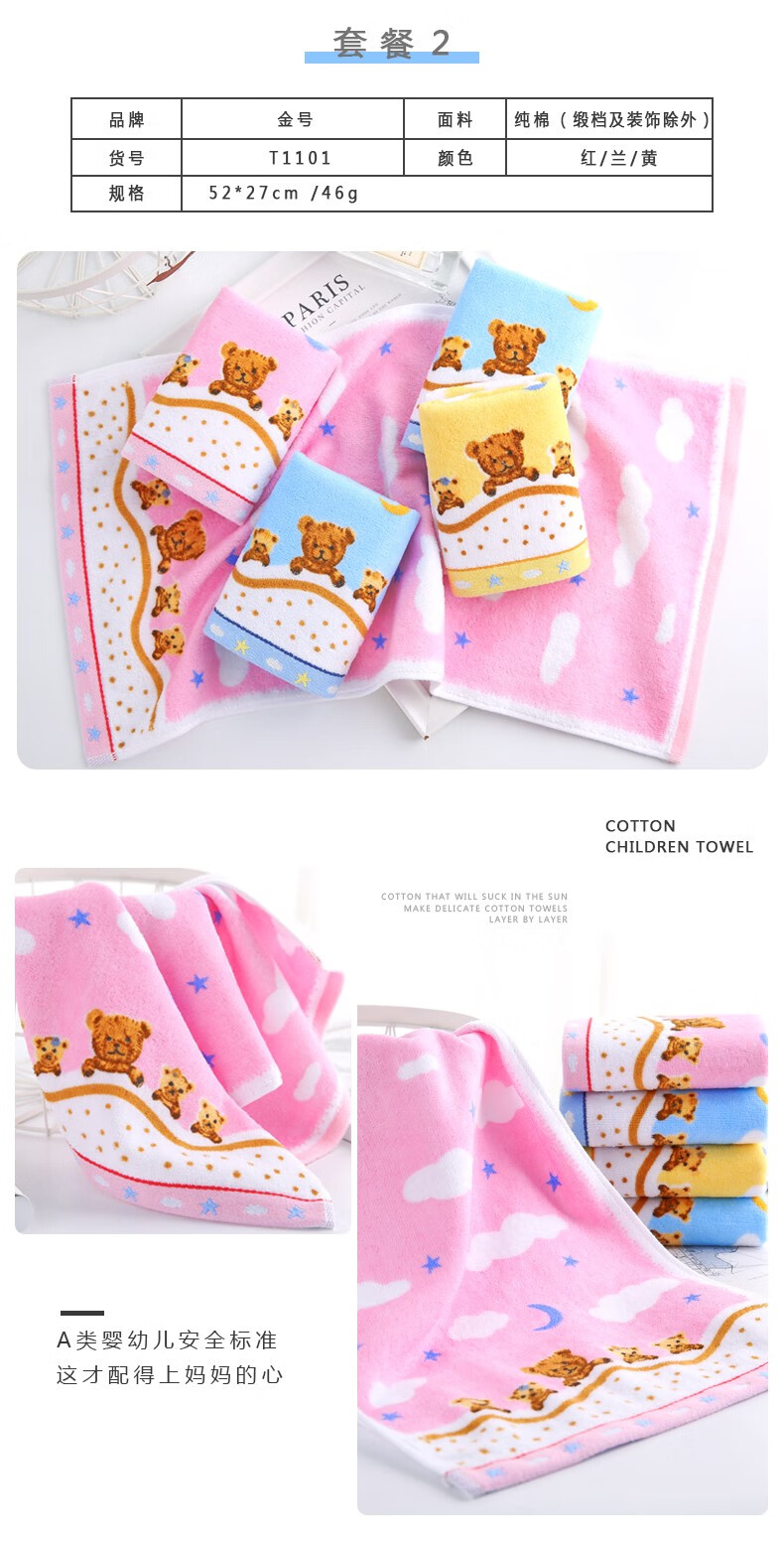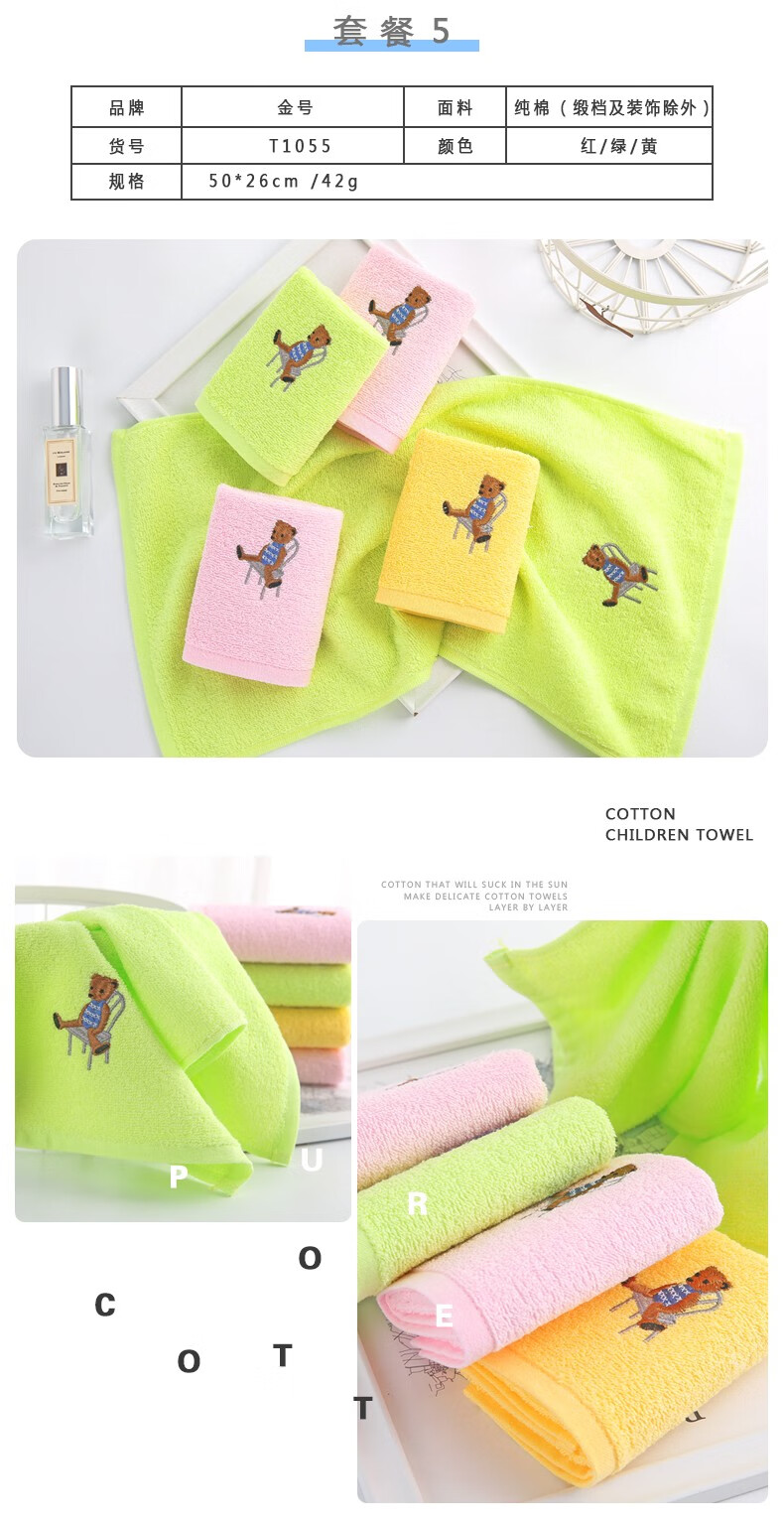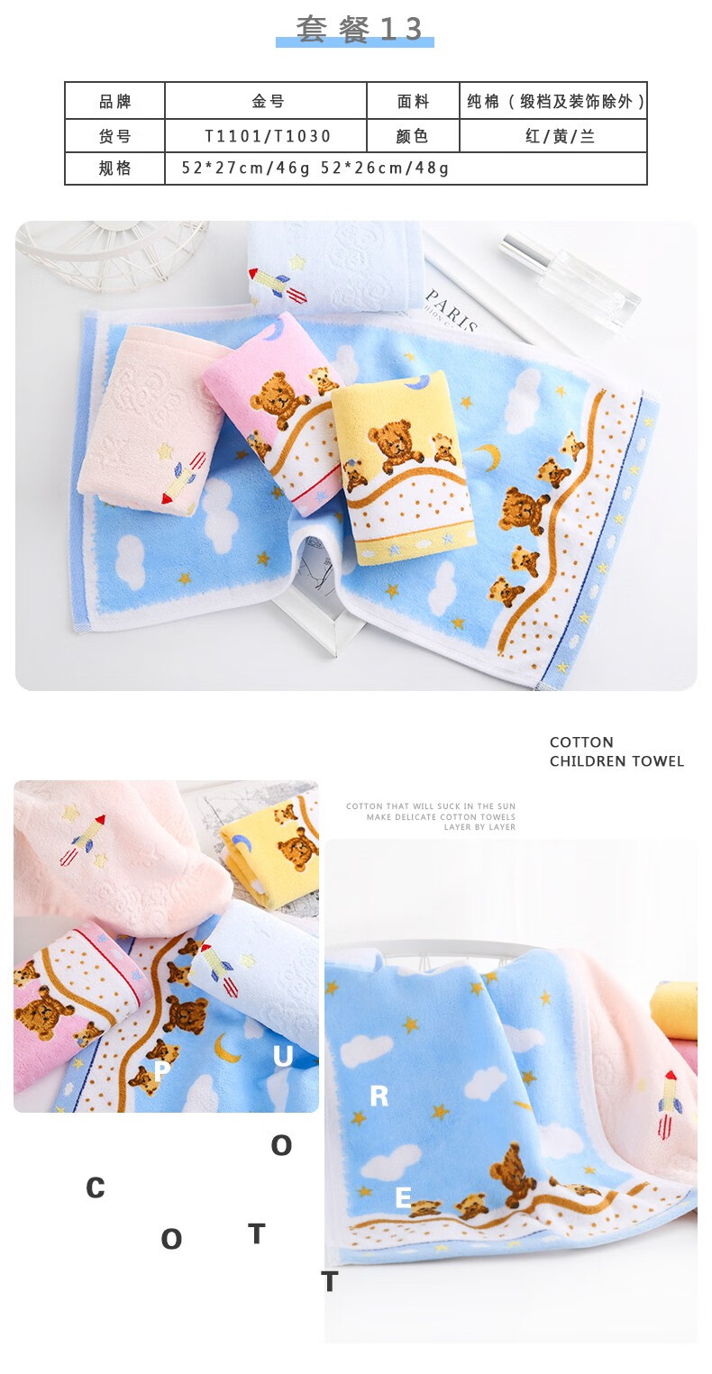 金号(KING SHORE)5条纯棉A类儿童毛巾全棉宝宝洗脸巾柔软舒适强吸水婴儿擦汗小毛巾 混色 5条