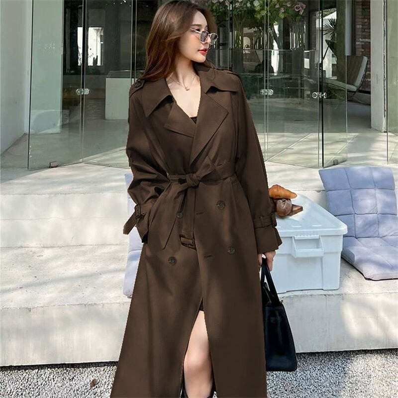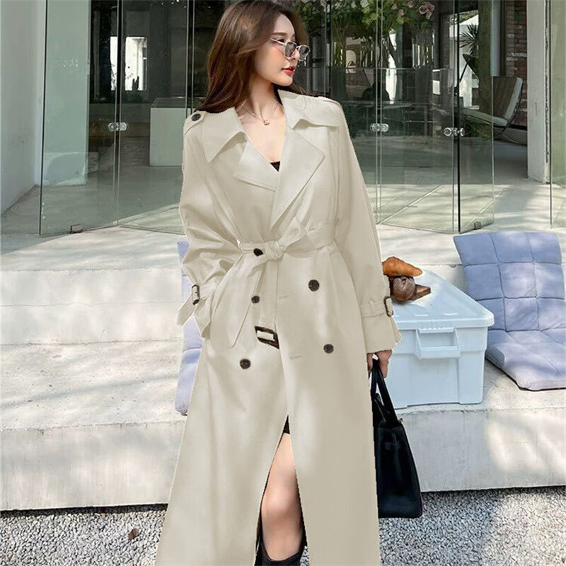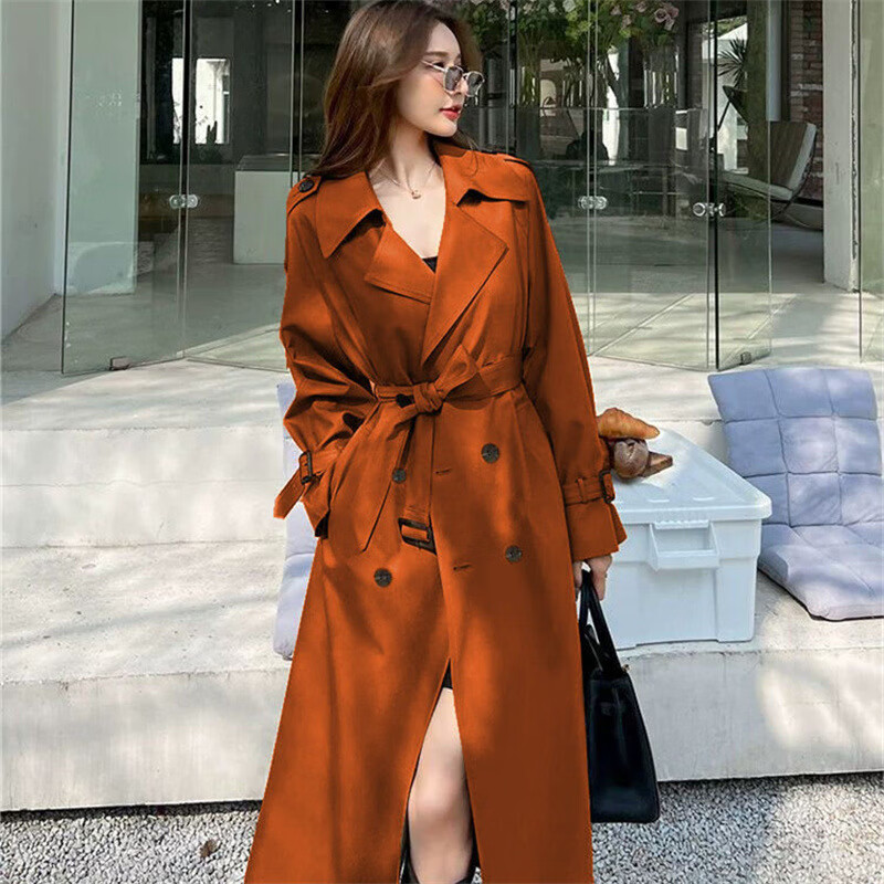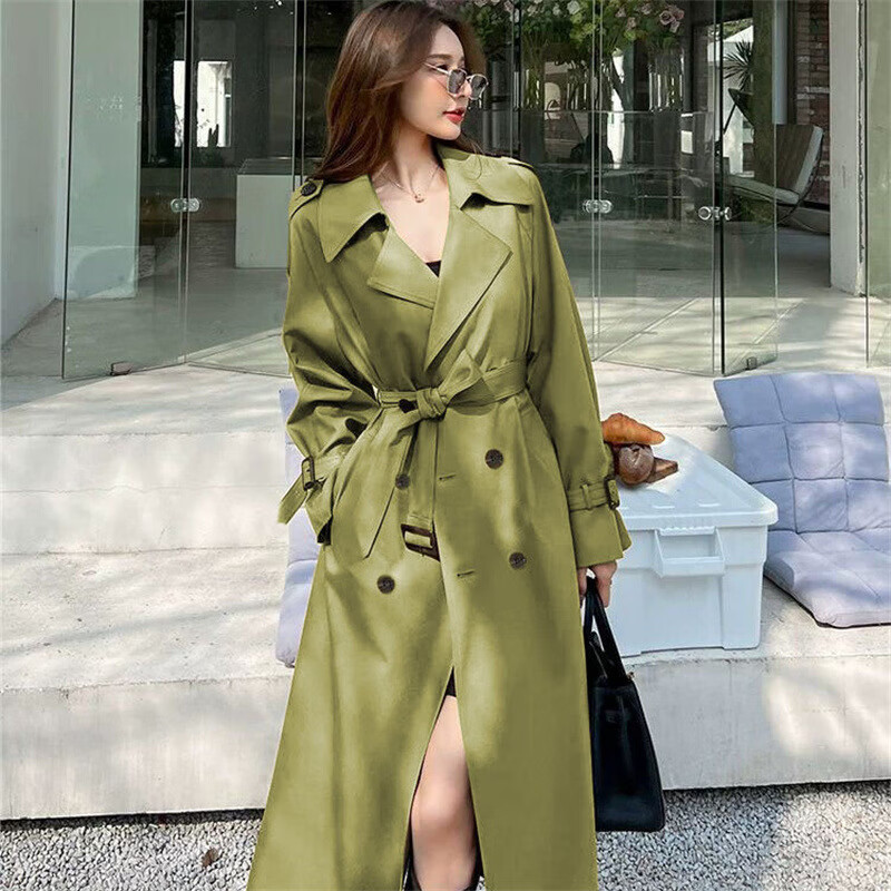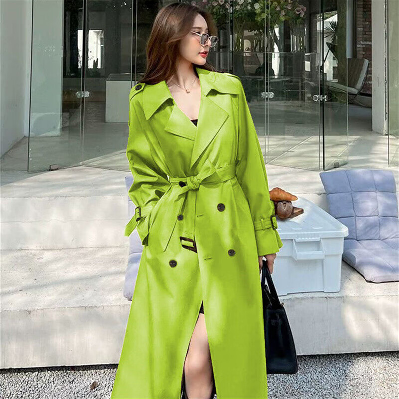 风衣外套女装2025新款春秋季英伦风中长款风衣小个子百搭大衣外套 柠檬黄 3XL