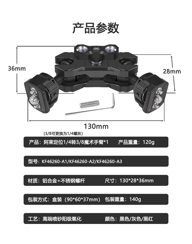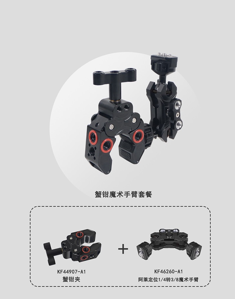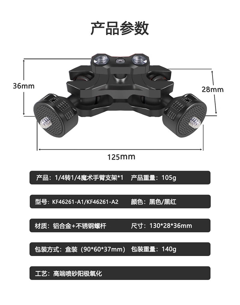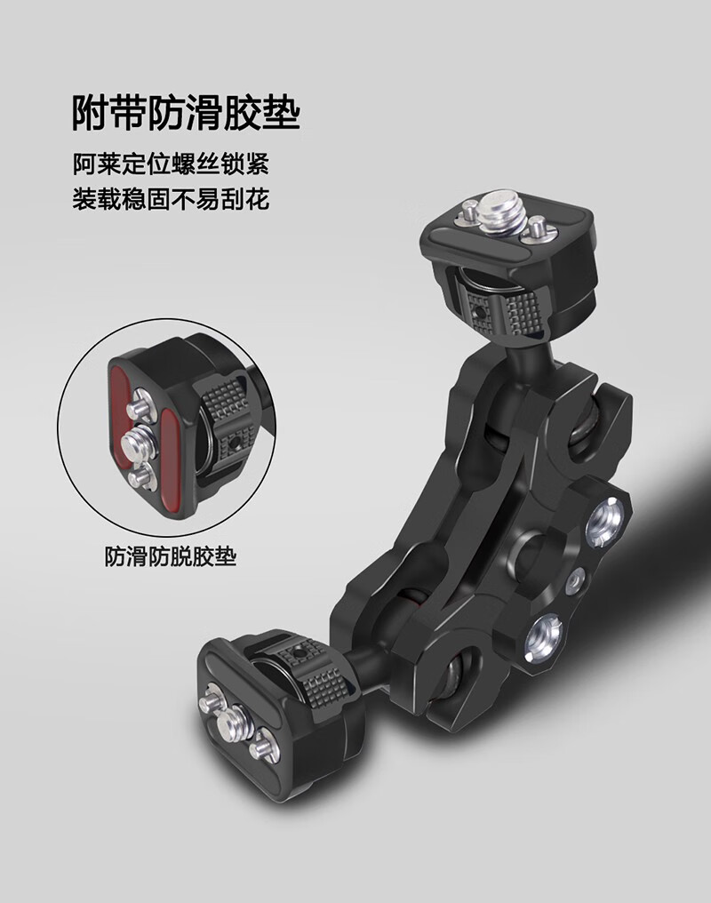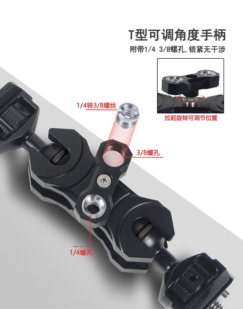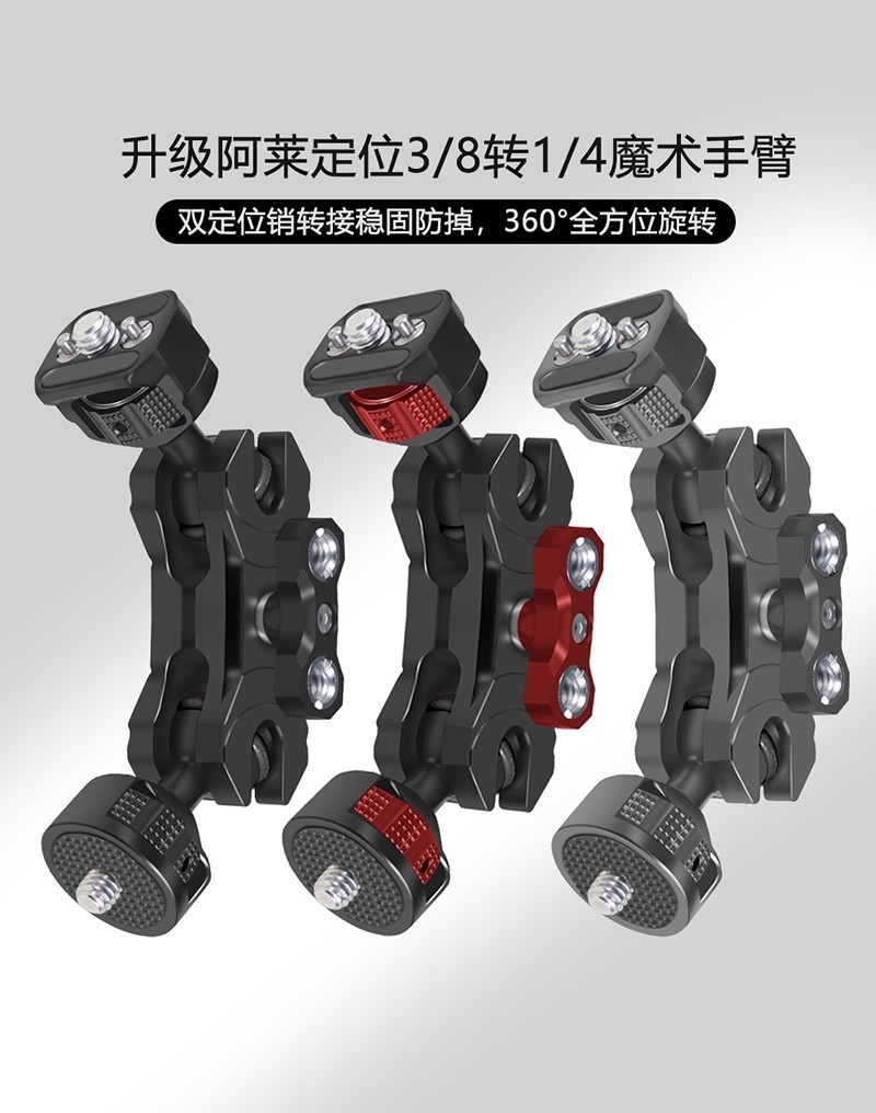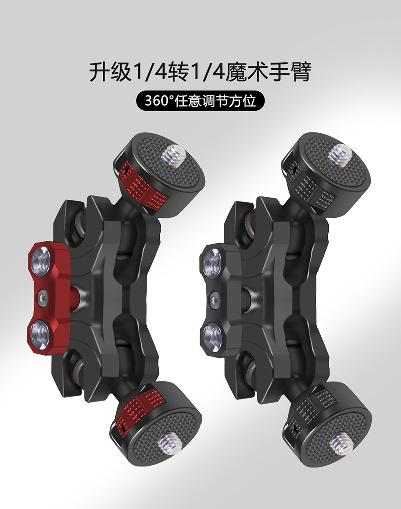 飞超 万向魔术手臂1/4转3/8监视器支架适用于单反稳定器兔笼摄影拓展配件 升级可调角度手柄1/4转1/4黑红色-A2