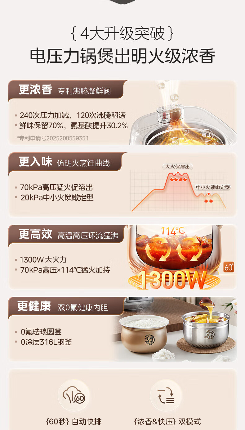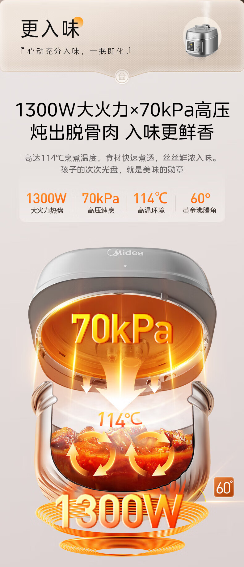 美的(Midea)小凝鲜沸腾浓香电压力锅0氟母婴316L钢釜0涂层5L高压锅60S快排家用煲汤4-6人煮饭煲C5940N
