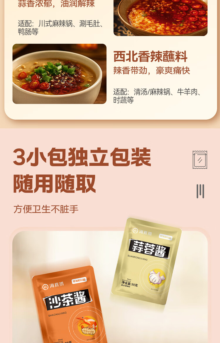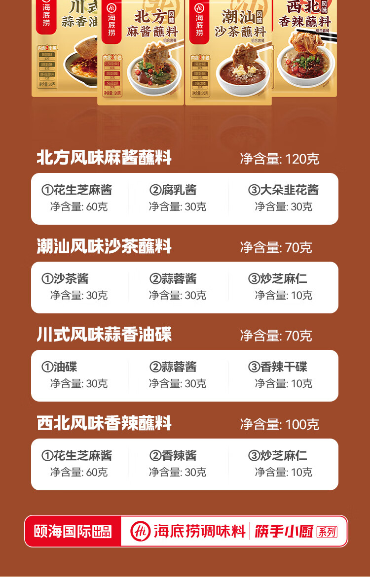 海底捞火锅蘸料 花生麻酱组合120g 内含3包 凉拌菜拌面 烧烤家用调味料