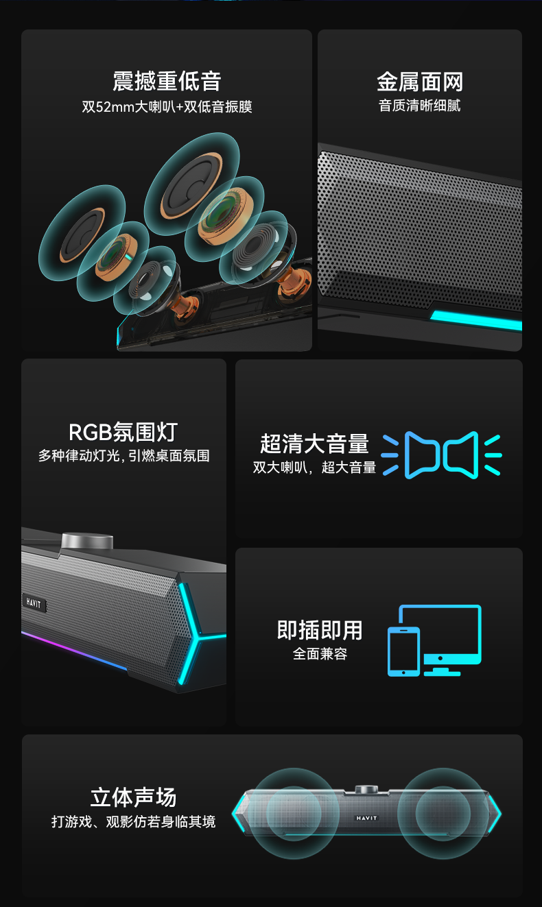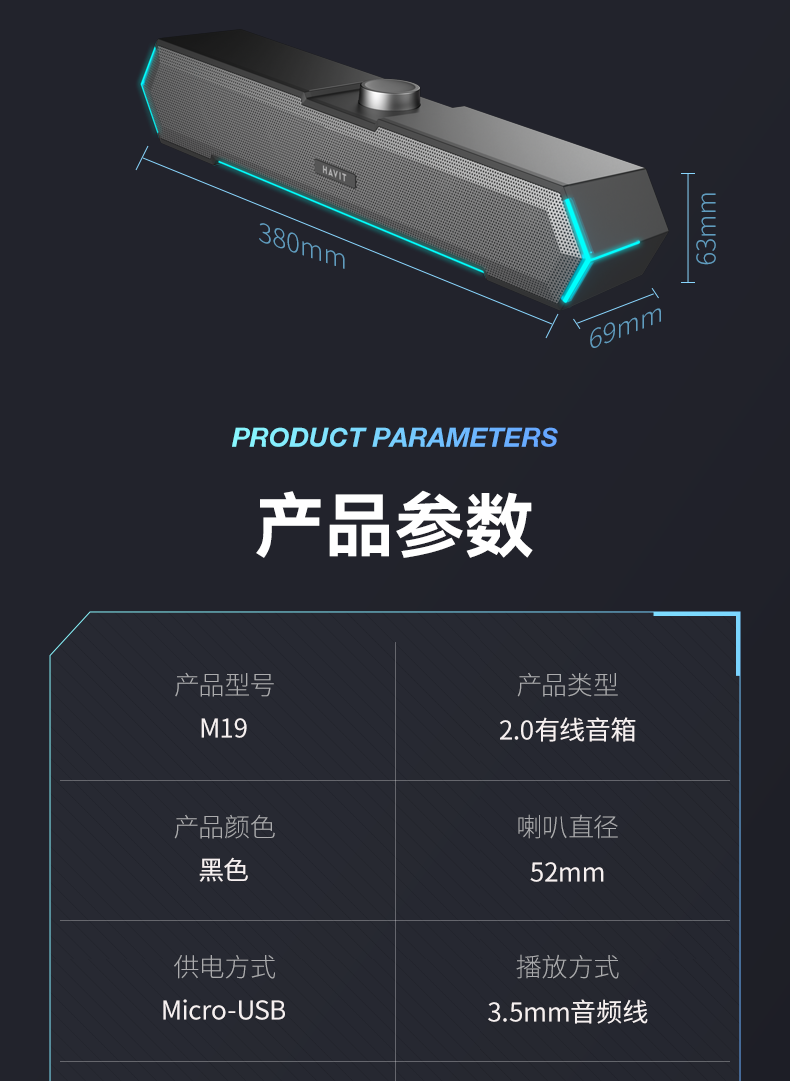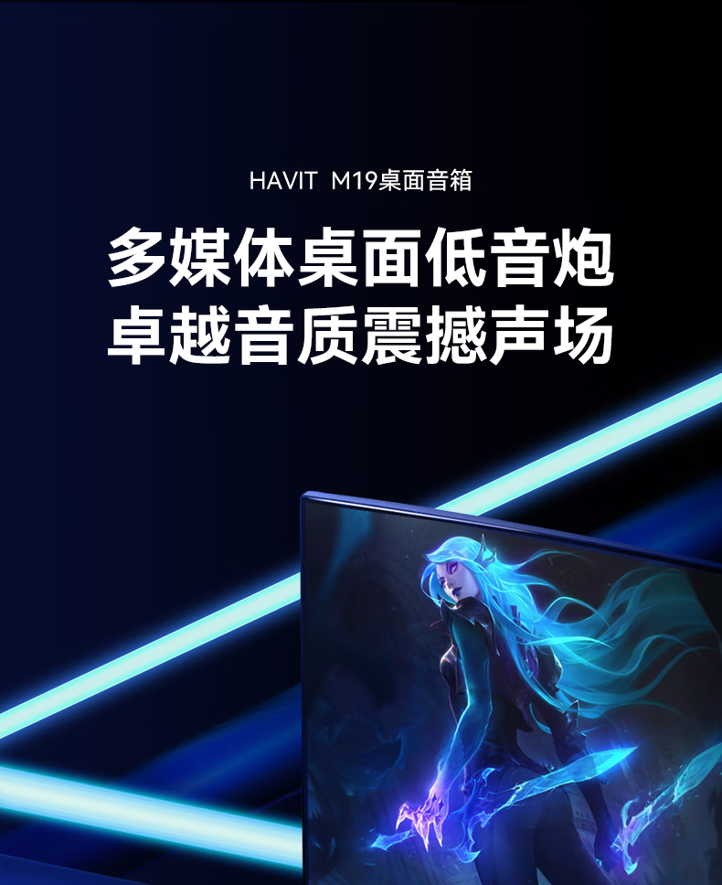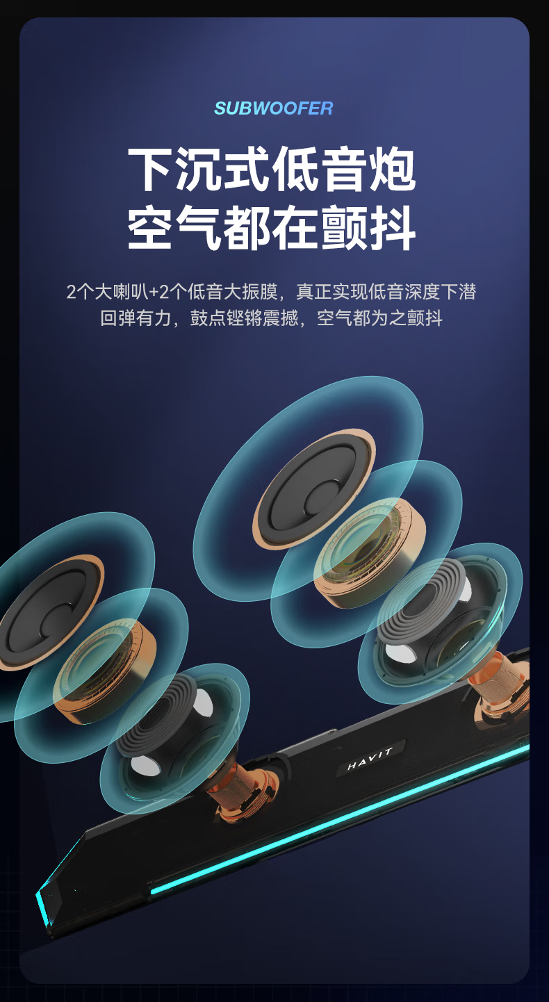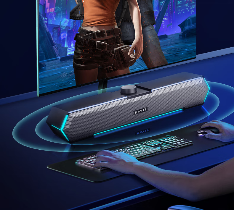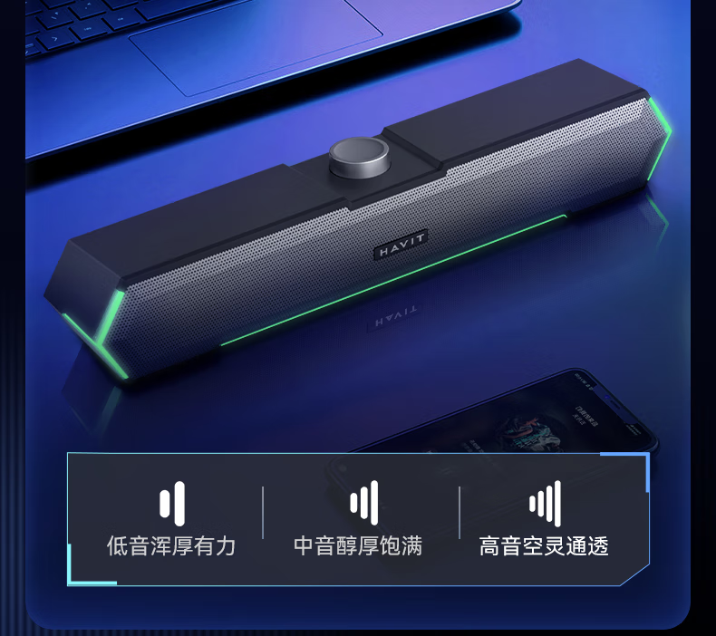 海威特(HAVIT)【20万好评】电脑音响音箱台式桌面家用笔记本主机usb有线长条网课迷你低音炮外放喇叭 M19黑色