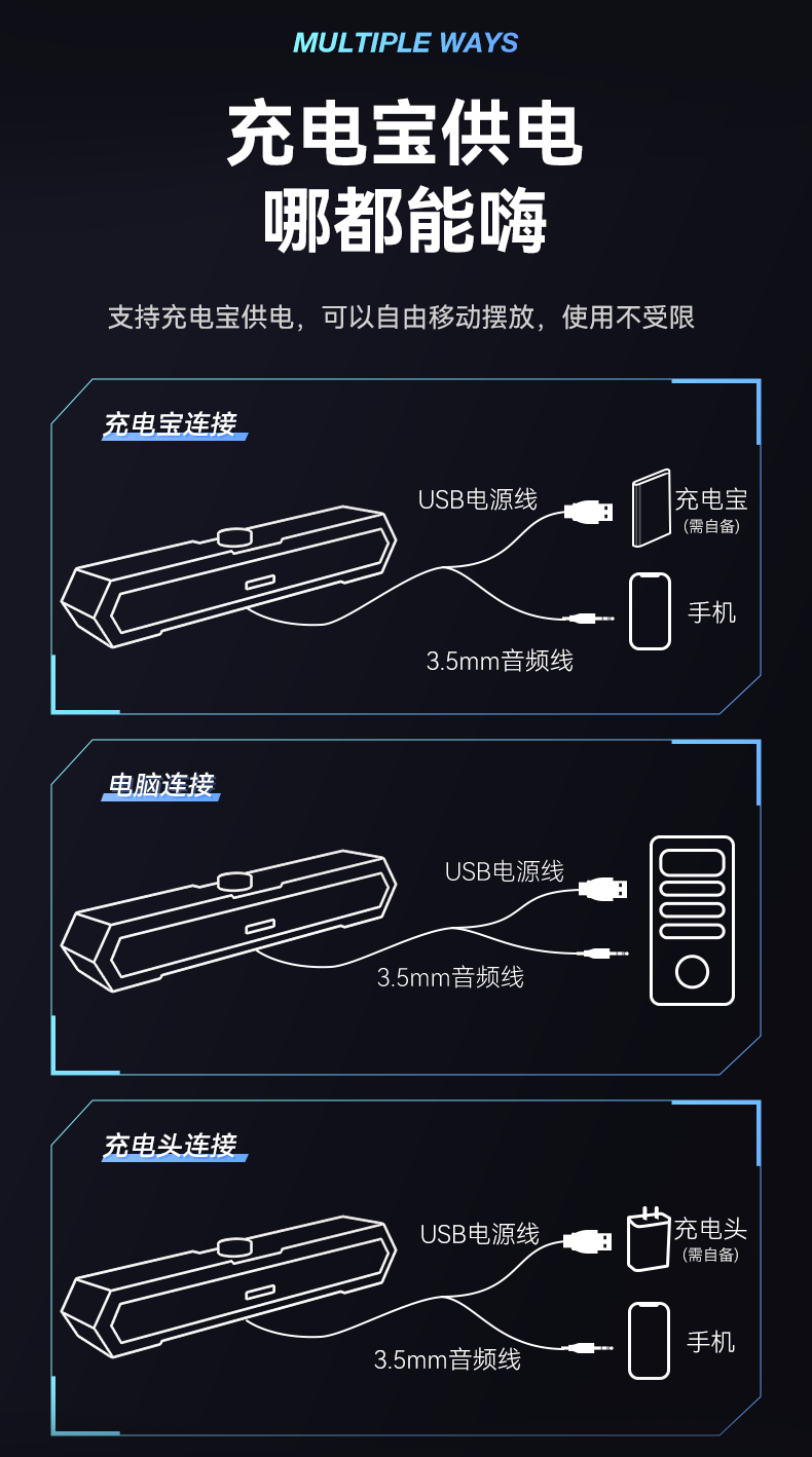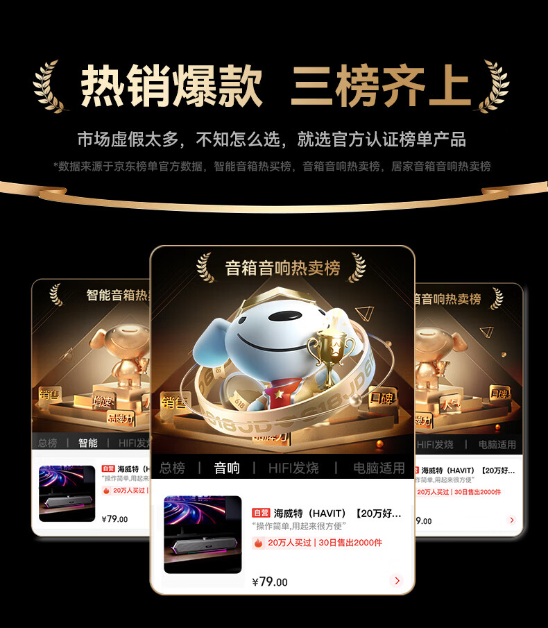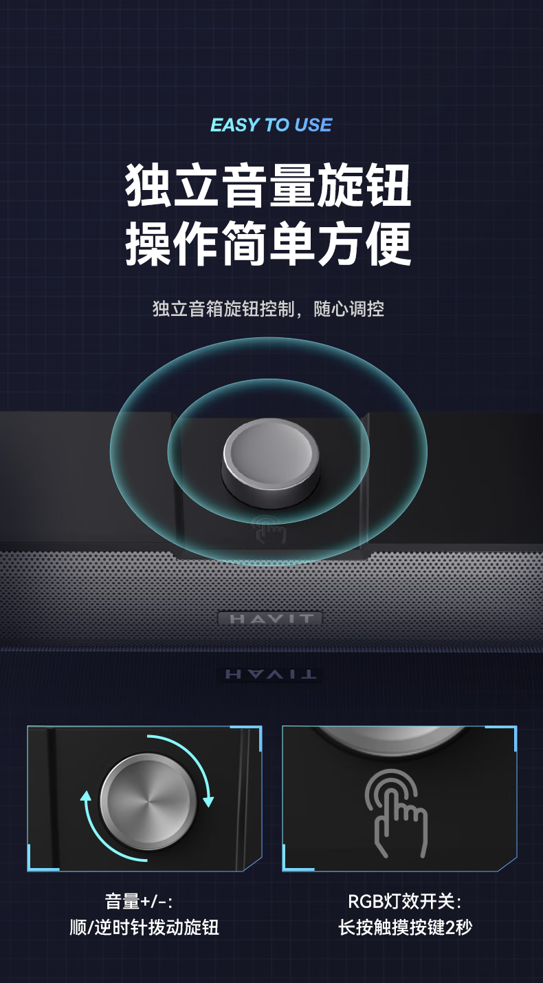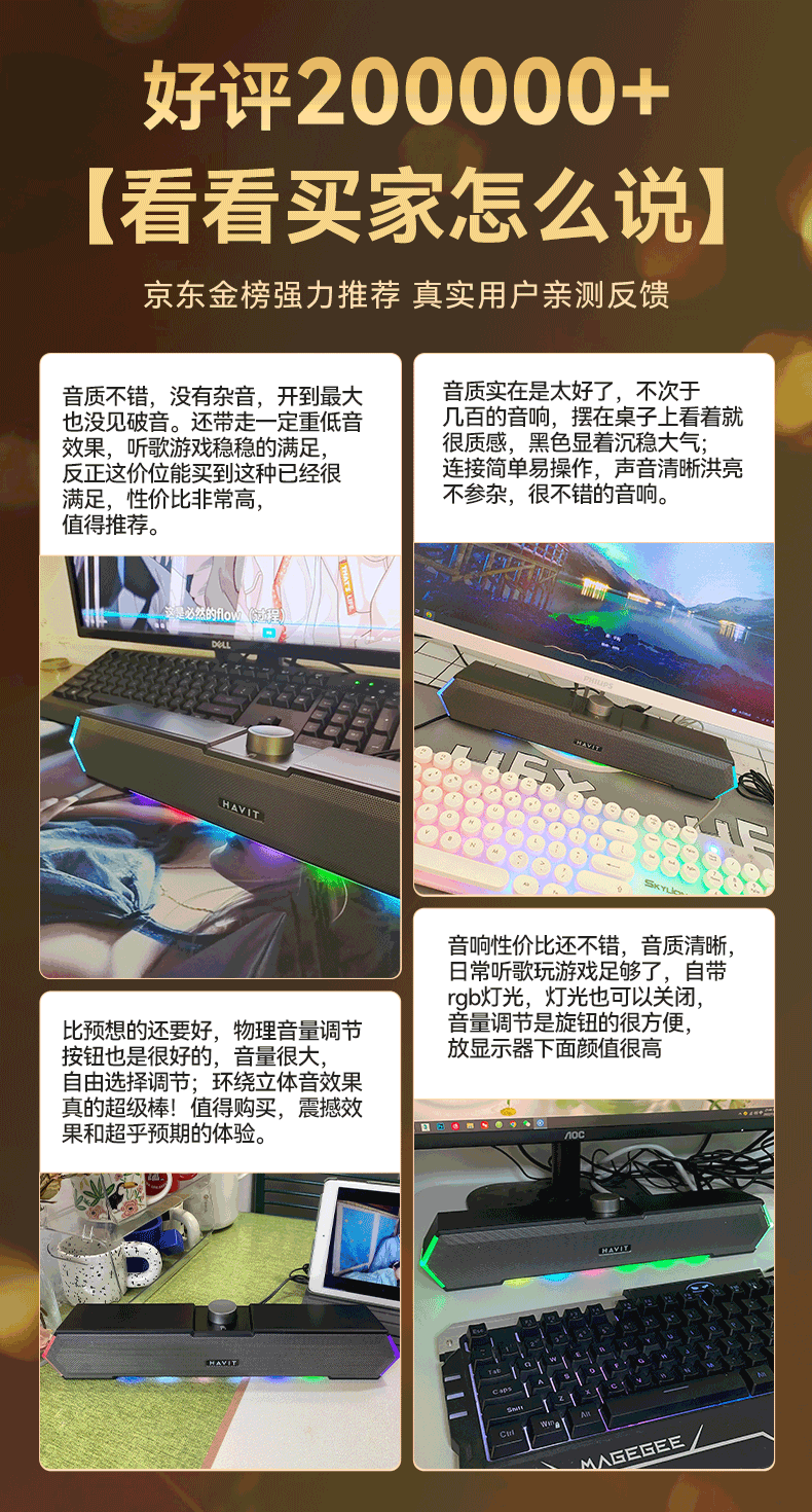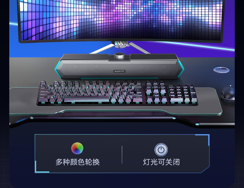 海威特(HAVIT)【20万好评】电脑音响音箱台式桌面家用笔记本主机usb有线长条网课迷你低音炮外放喇叭 M19黑色