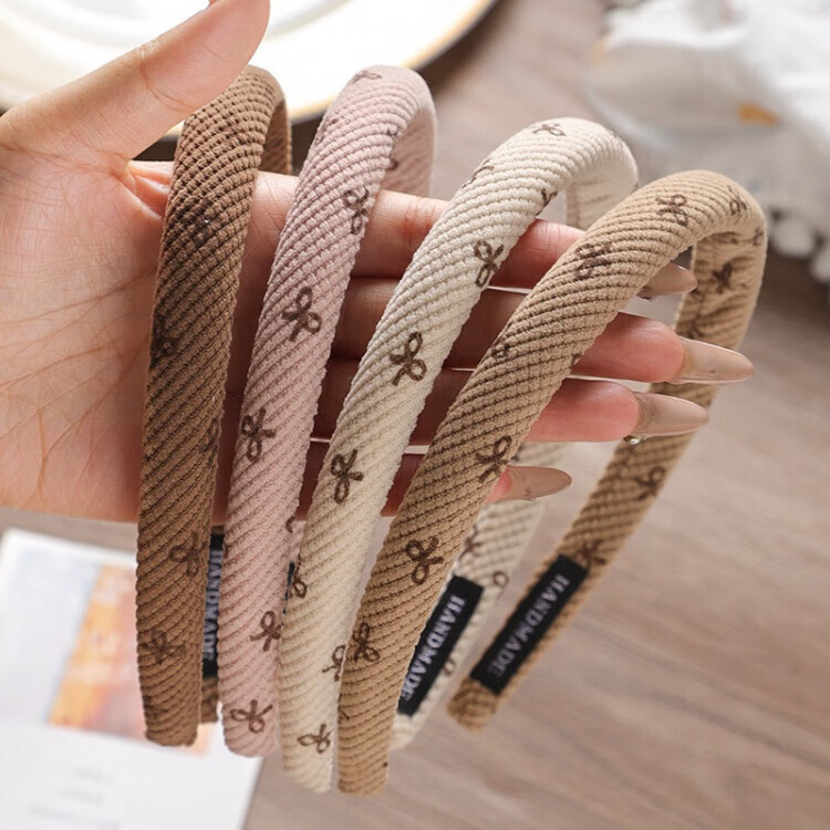 韩式简约咖色蝴蝶结发箍立体充棉发捆气质少女发饰感格纹头箍 1#深咖