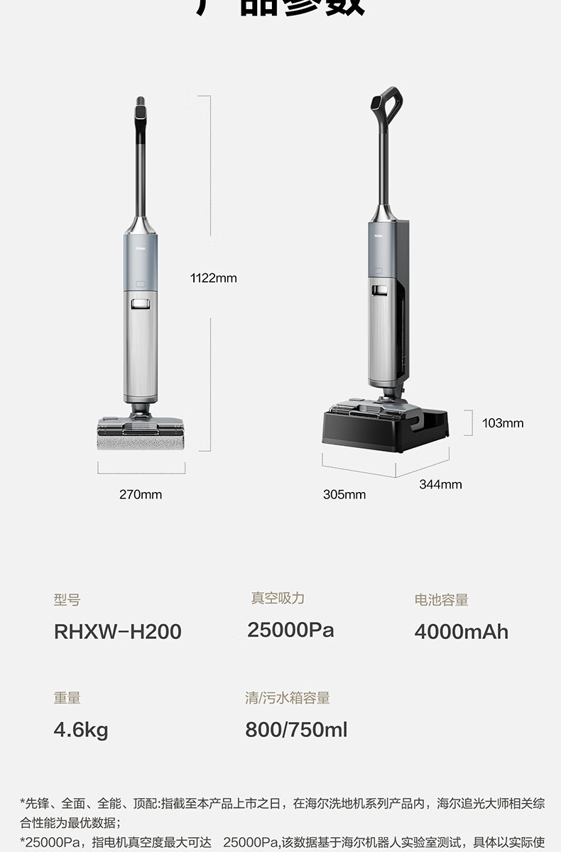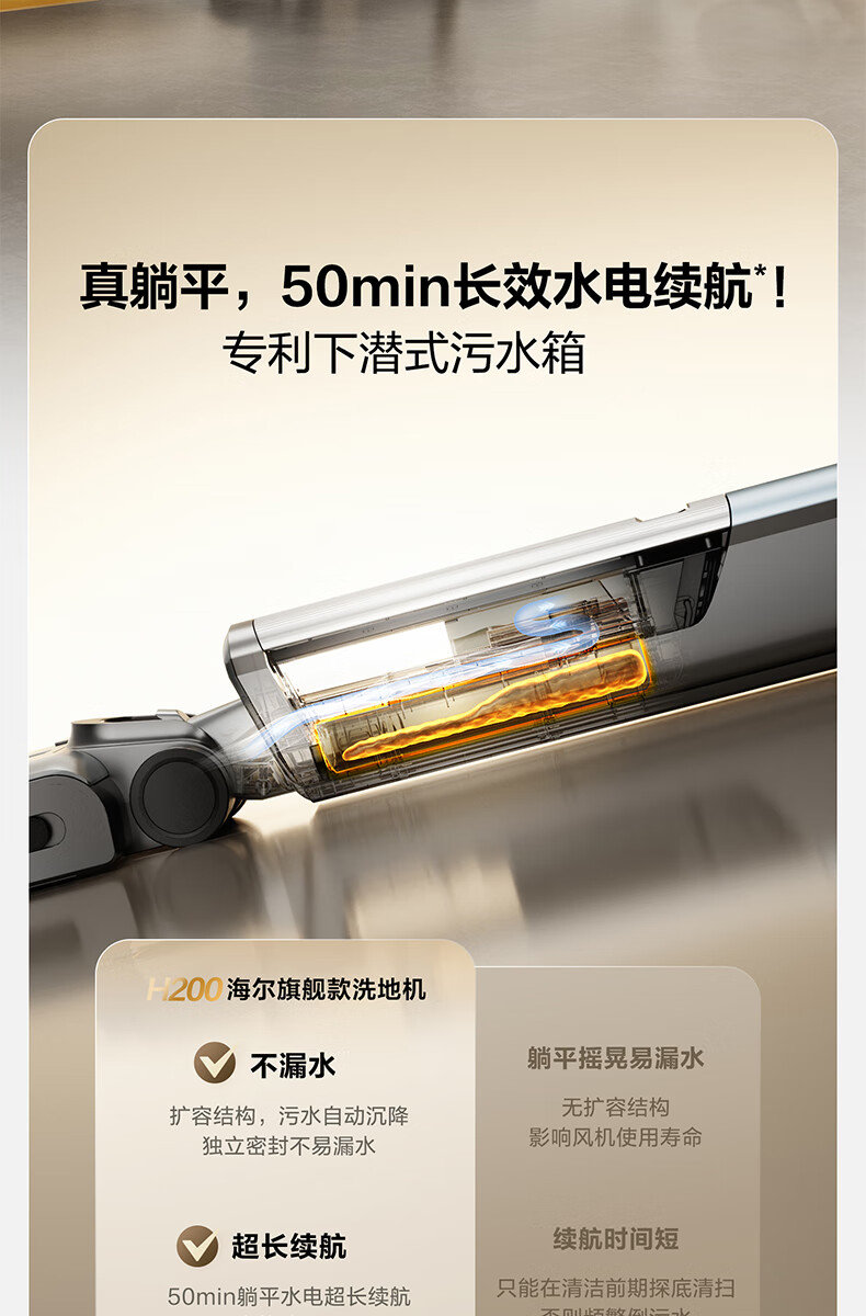 海尔洗地机H200 追光MAX 180°平躺 自动清洗智能吸拖洗一体拖地用机器人 H200追光大师H1/DI升级版
