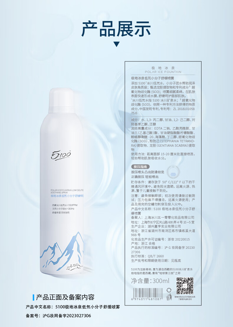 5100极地冰泉补水喷雾300ml舒缓修护干红肌冬季保湿送女生新年礼物