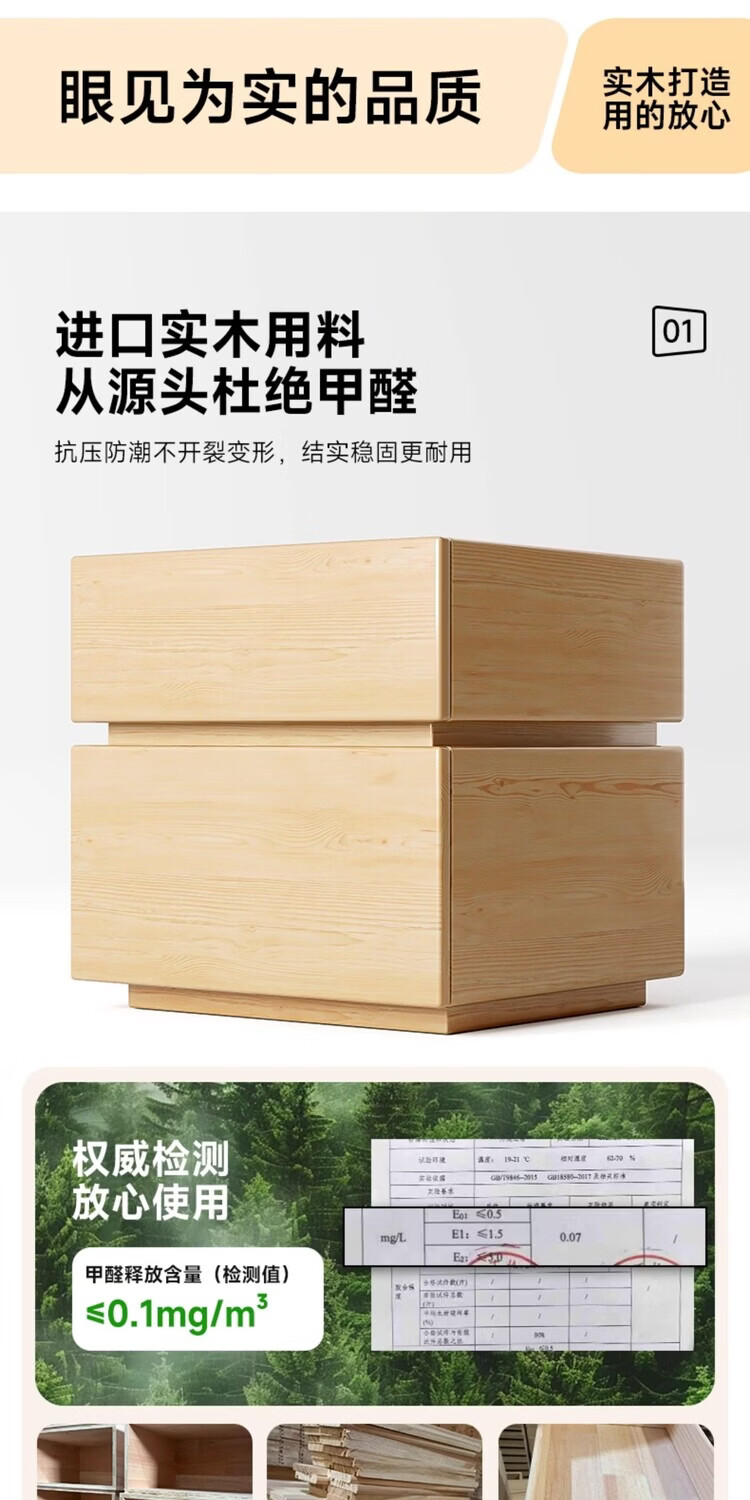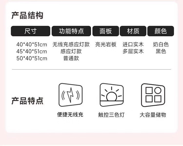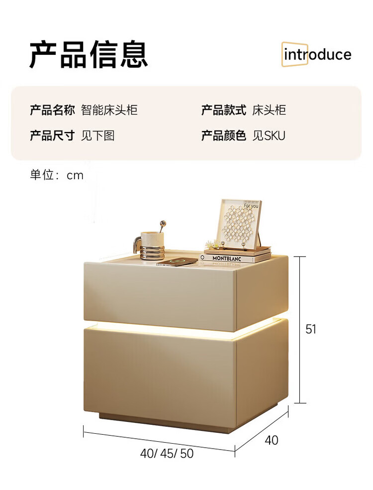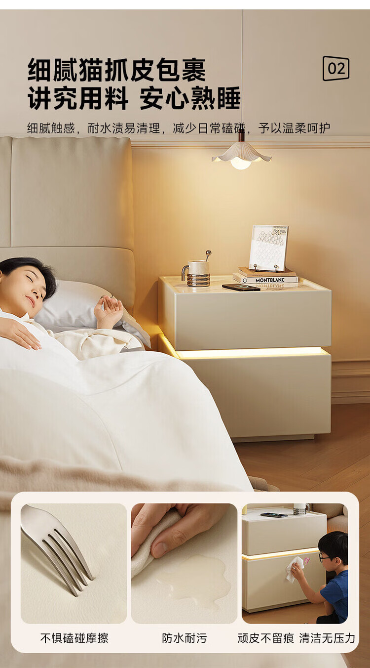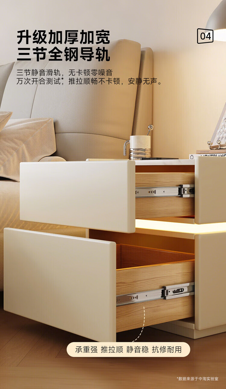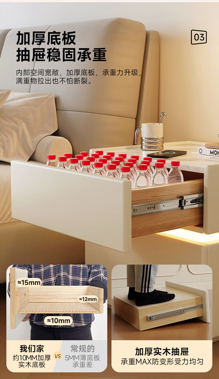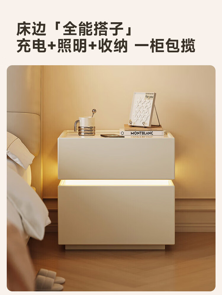 耐禾实木床头柜家用卧室2026爆款轻奢高级感奶油风小型床边收纳柜智能 奶白色【岩板标配】实木框架 长40宽40高50cm