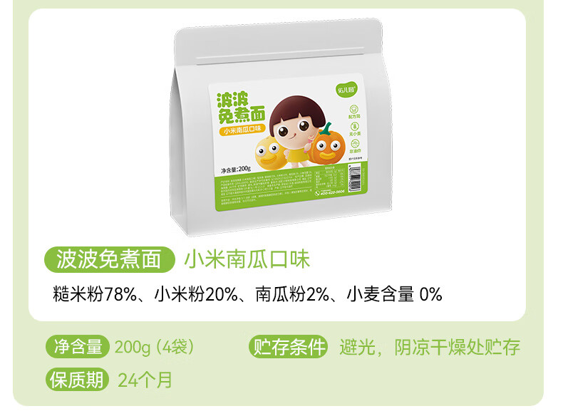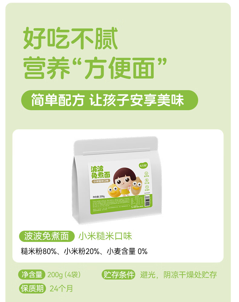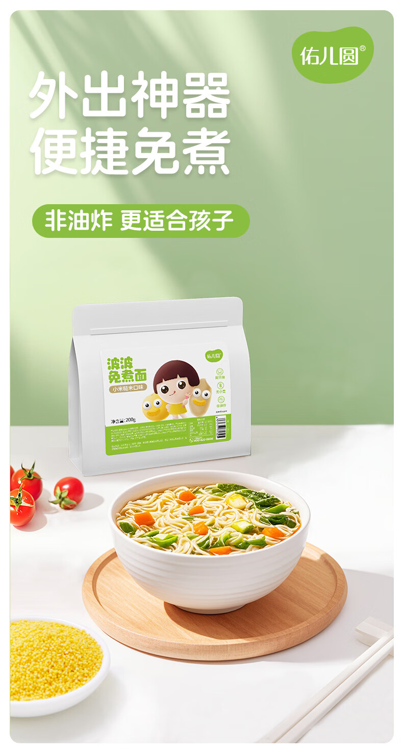 佑儿圆波波免煮面无小麦儿童方便面200g即食面速食面条粗粮细作 小米糙米味