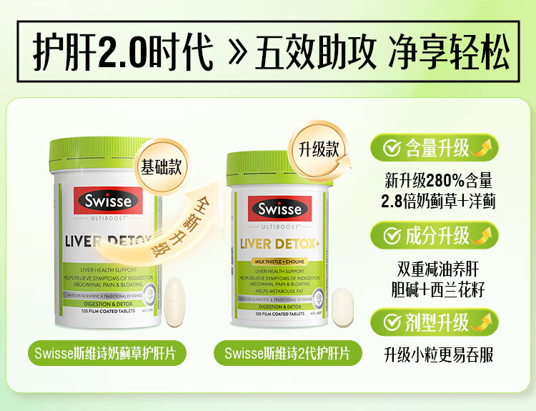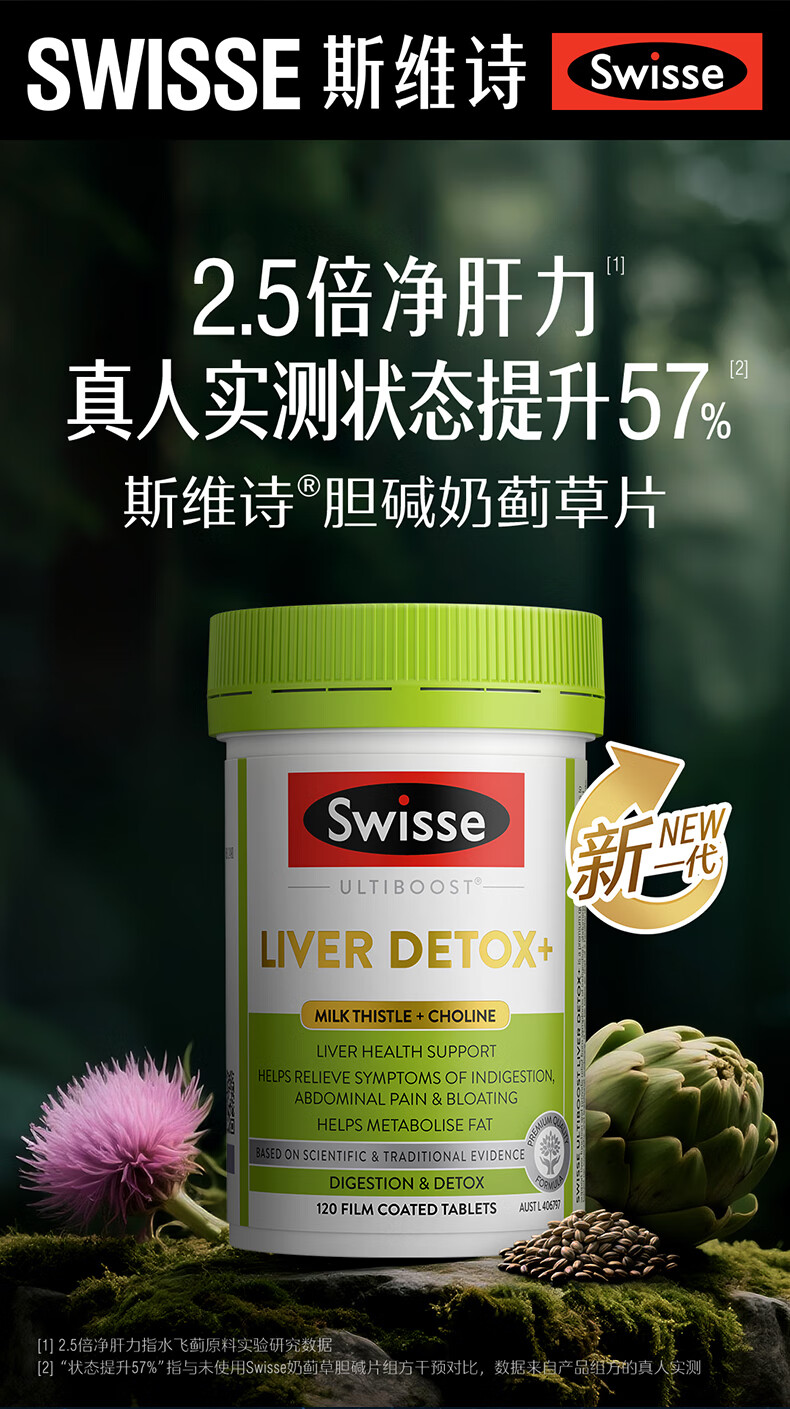 Swisse斯维诗 2代胆碱护肝片 2.8倍浓度奶蓟草 水飞蓟姜黄 养肝养肠胃 【2.8倍奶蓟草】2代护肝片