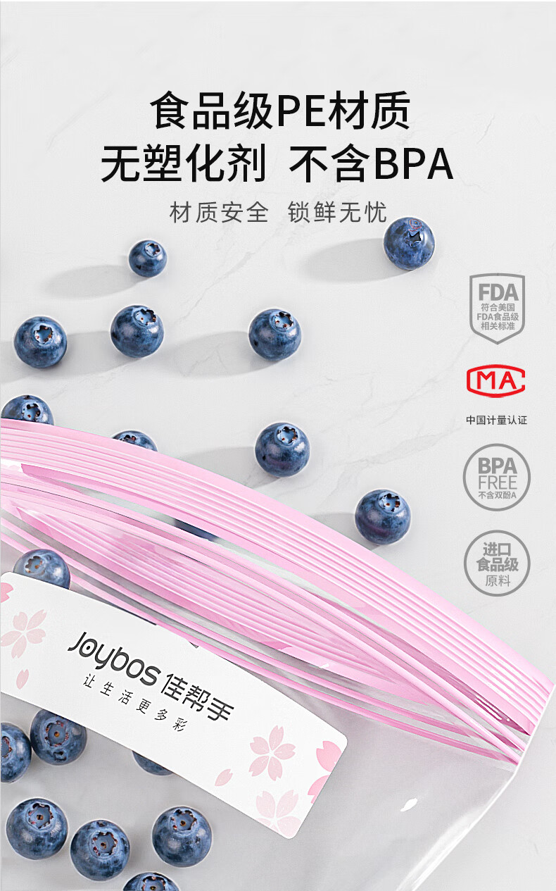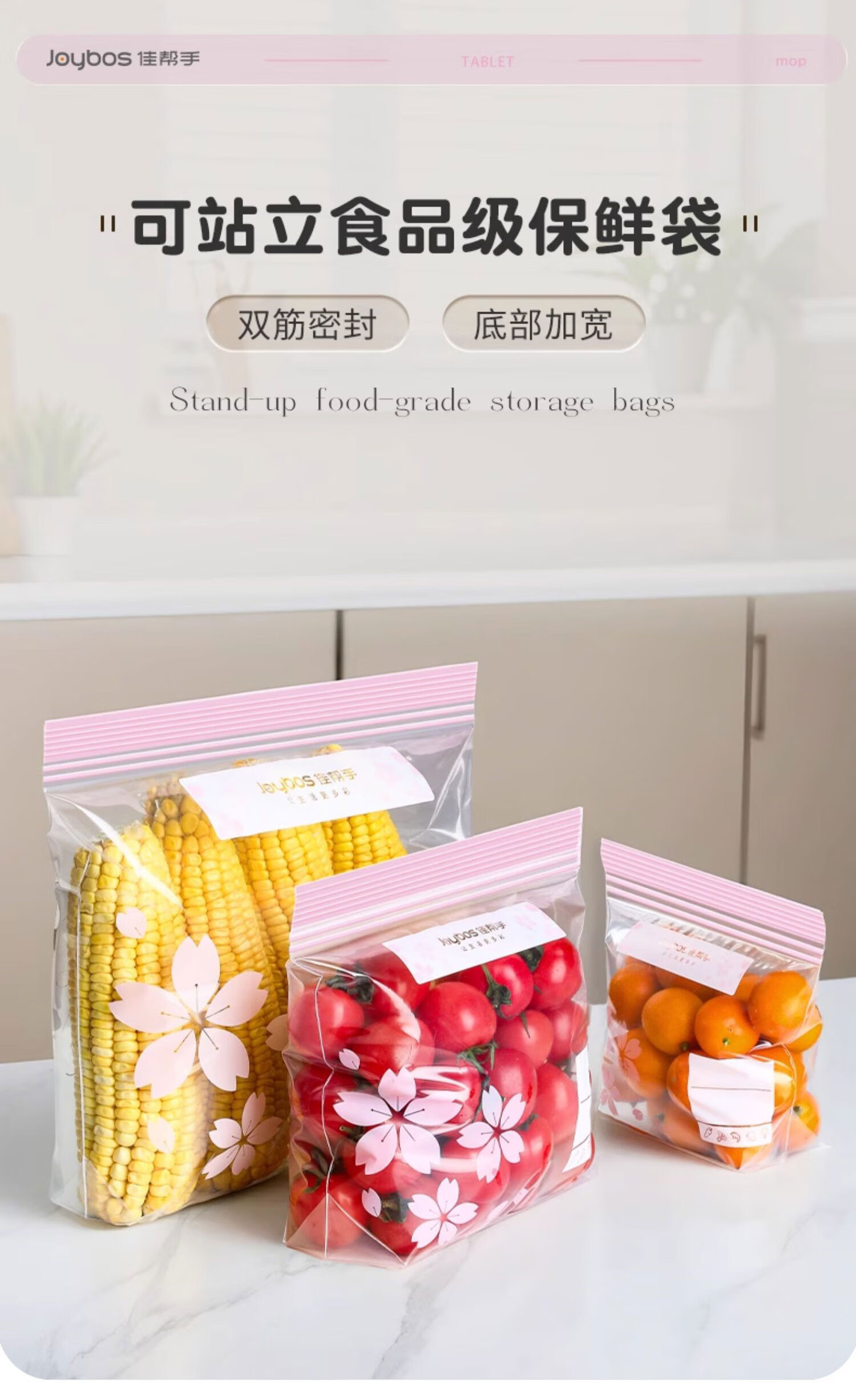 佳帮手密封袋加厚食品级保鲜袋站立双封口密实袋冷冻收纳袋小号30只