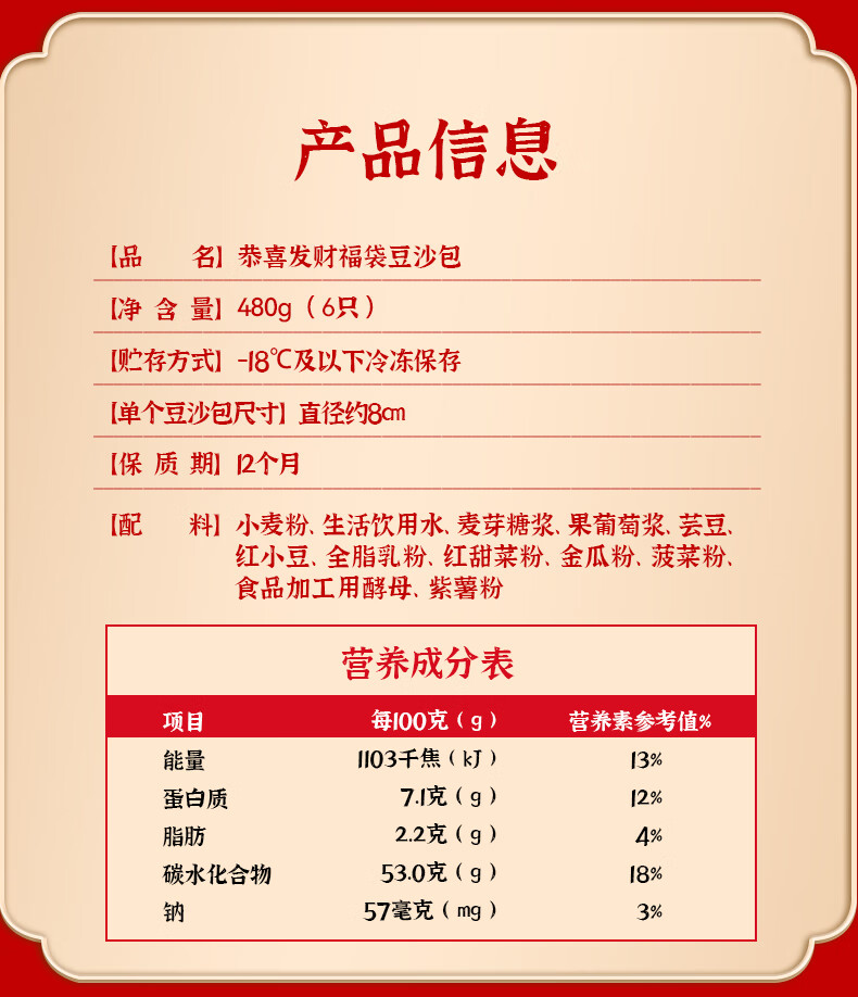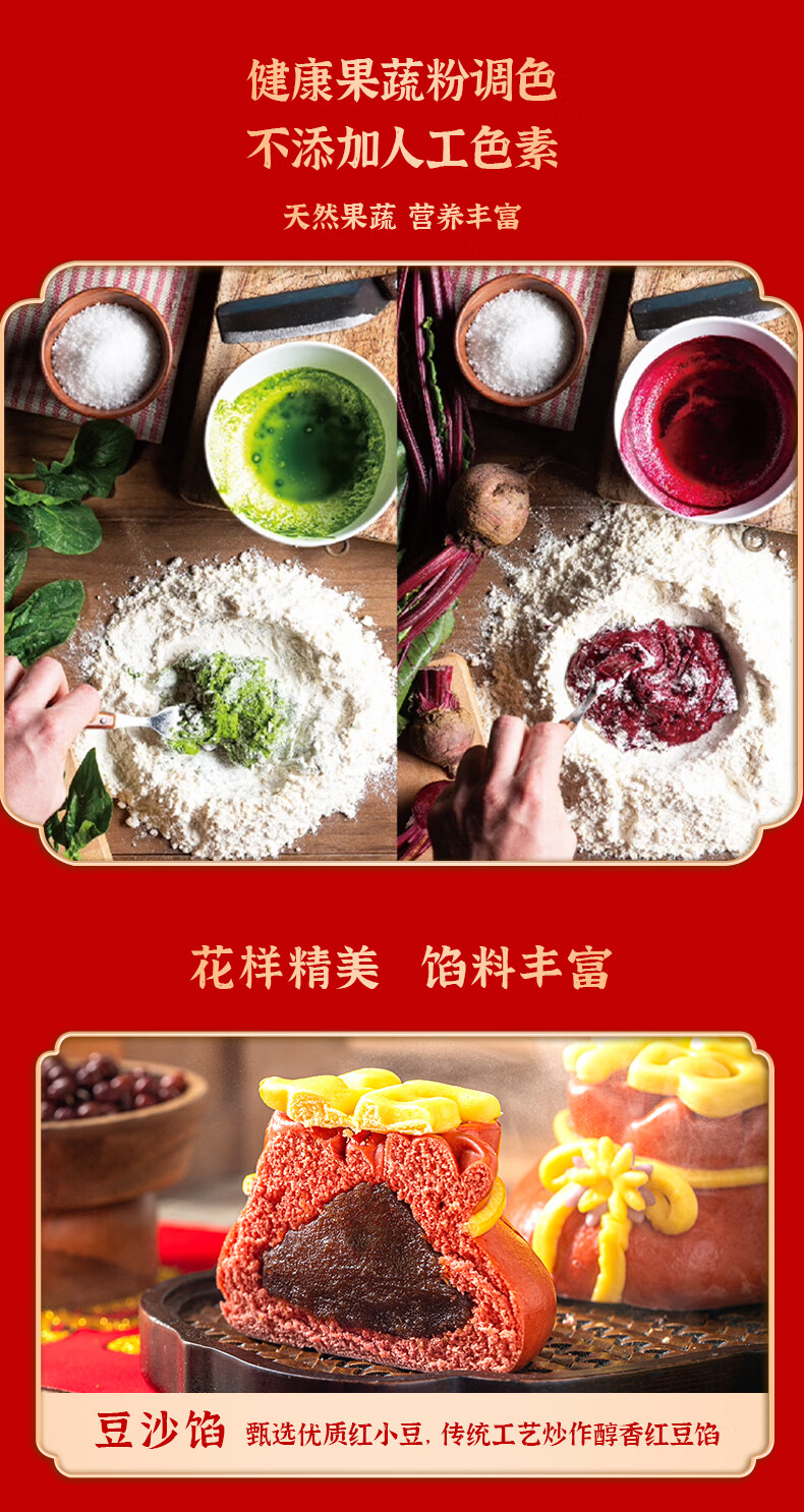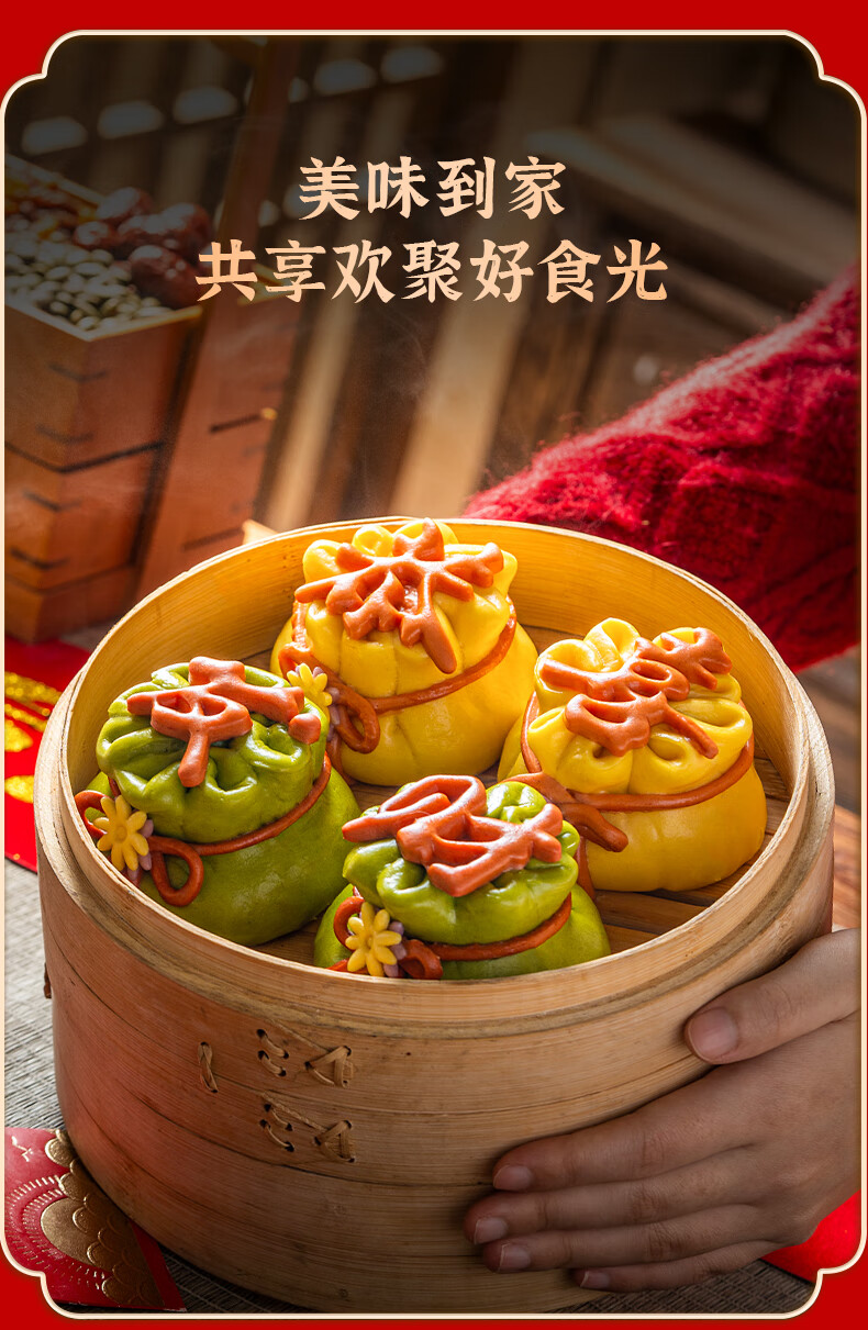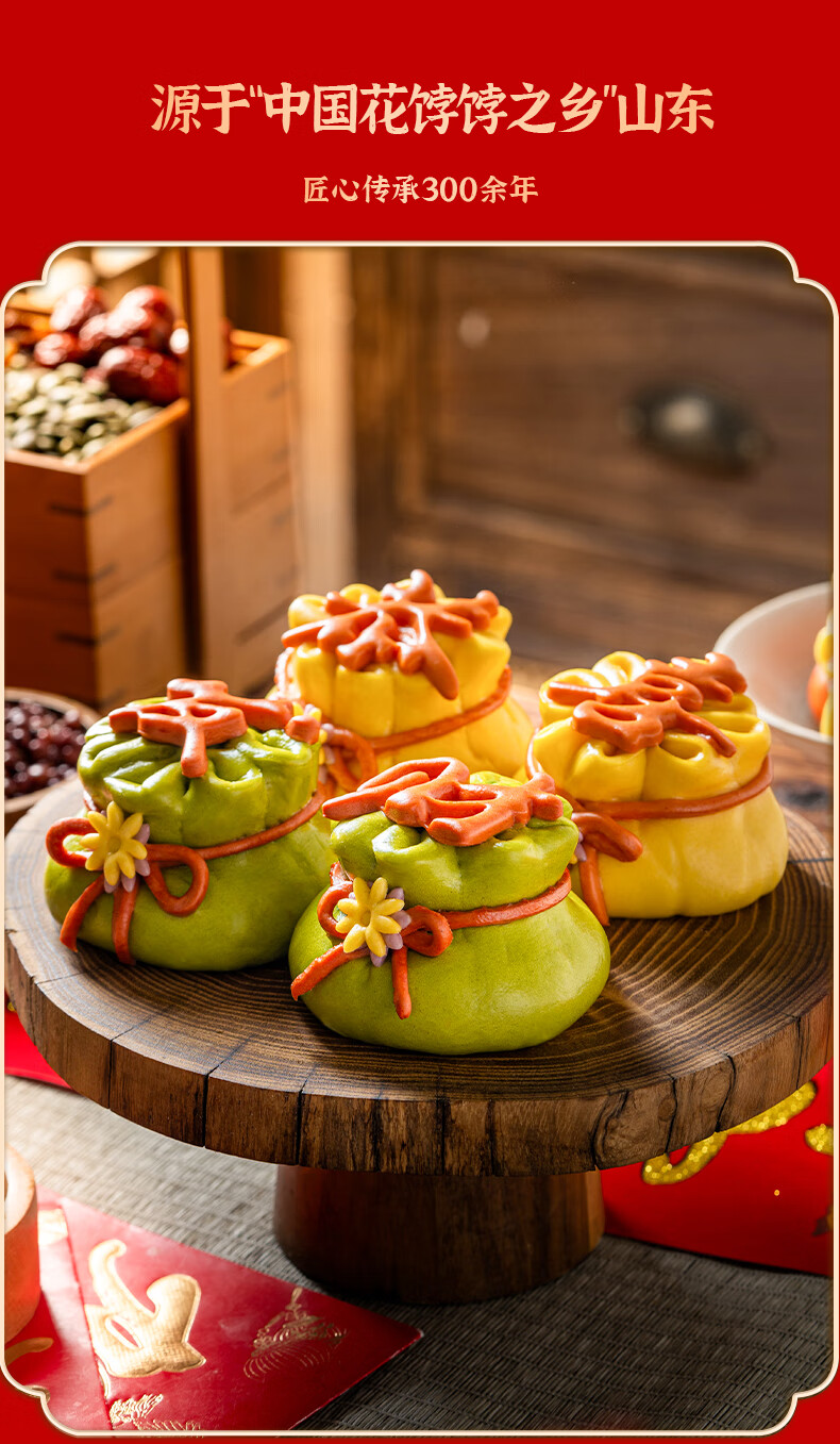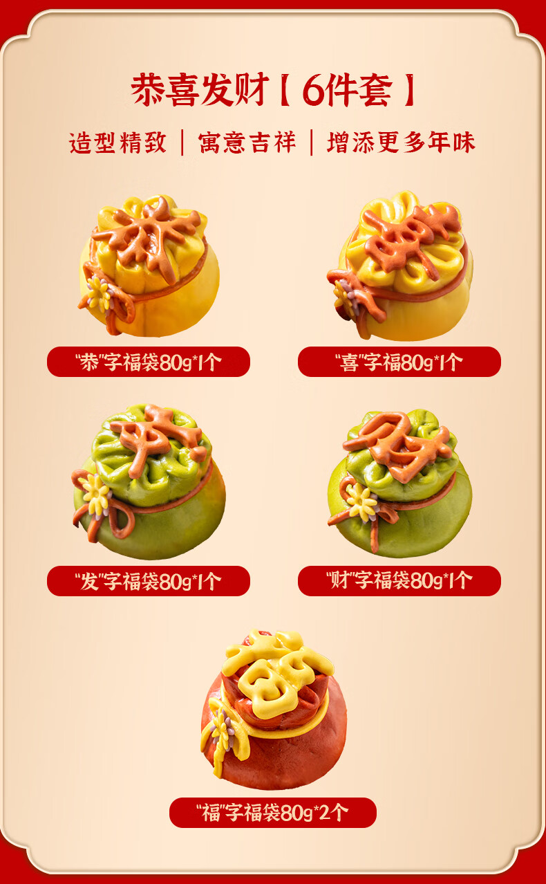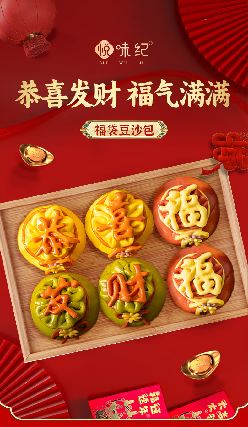 悦味纪 恭喜发财福袋豆沙包480g 6只 山东花饽饽新年年货年夜饭花馍馒头