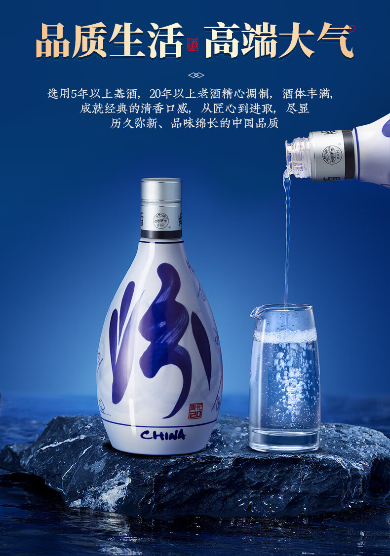 汾酒青花20清香型白酒 商务宴请白酒礼盒 42度 500mL 2瓶 双瓶装(新老包装随机发货)
