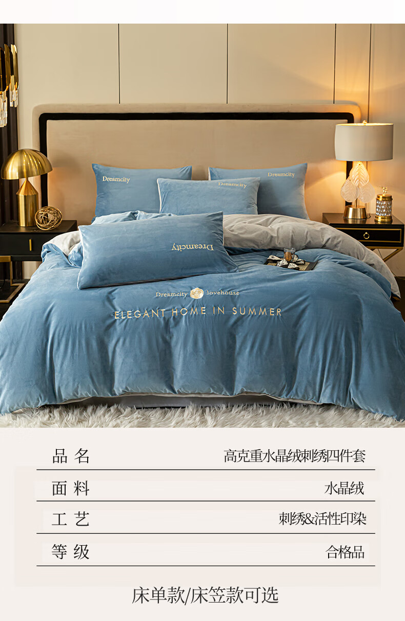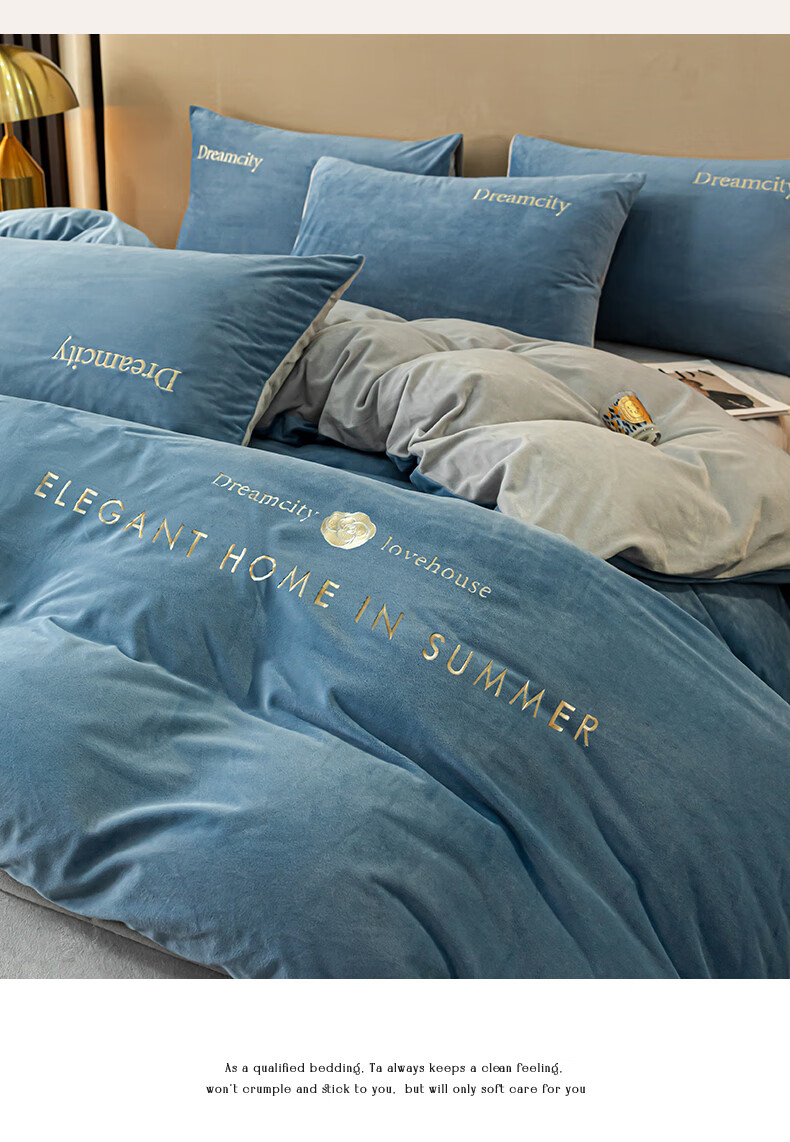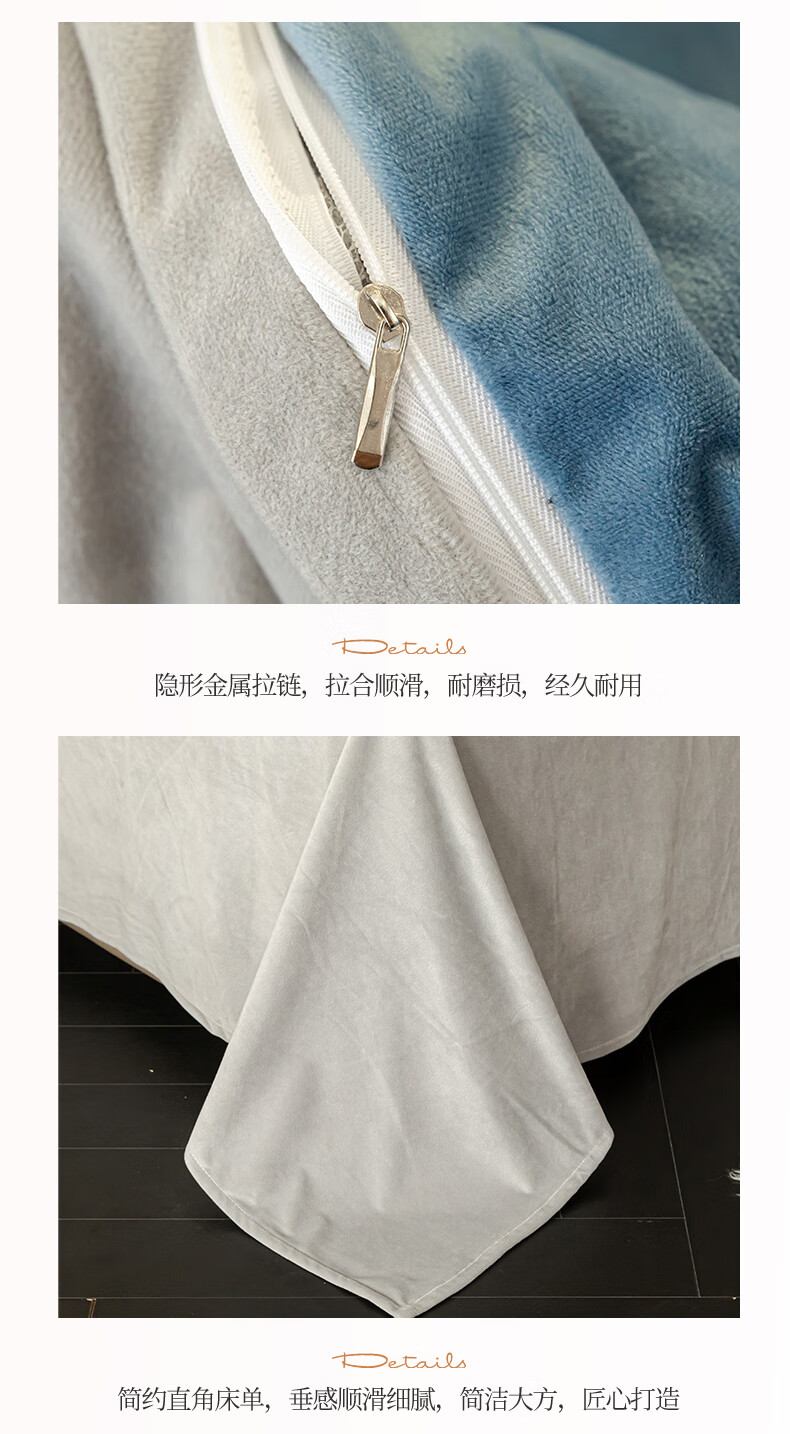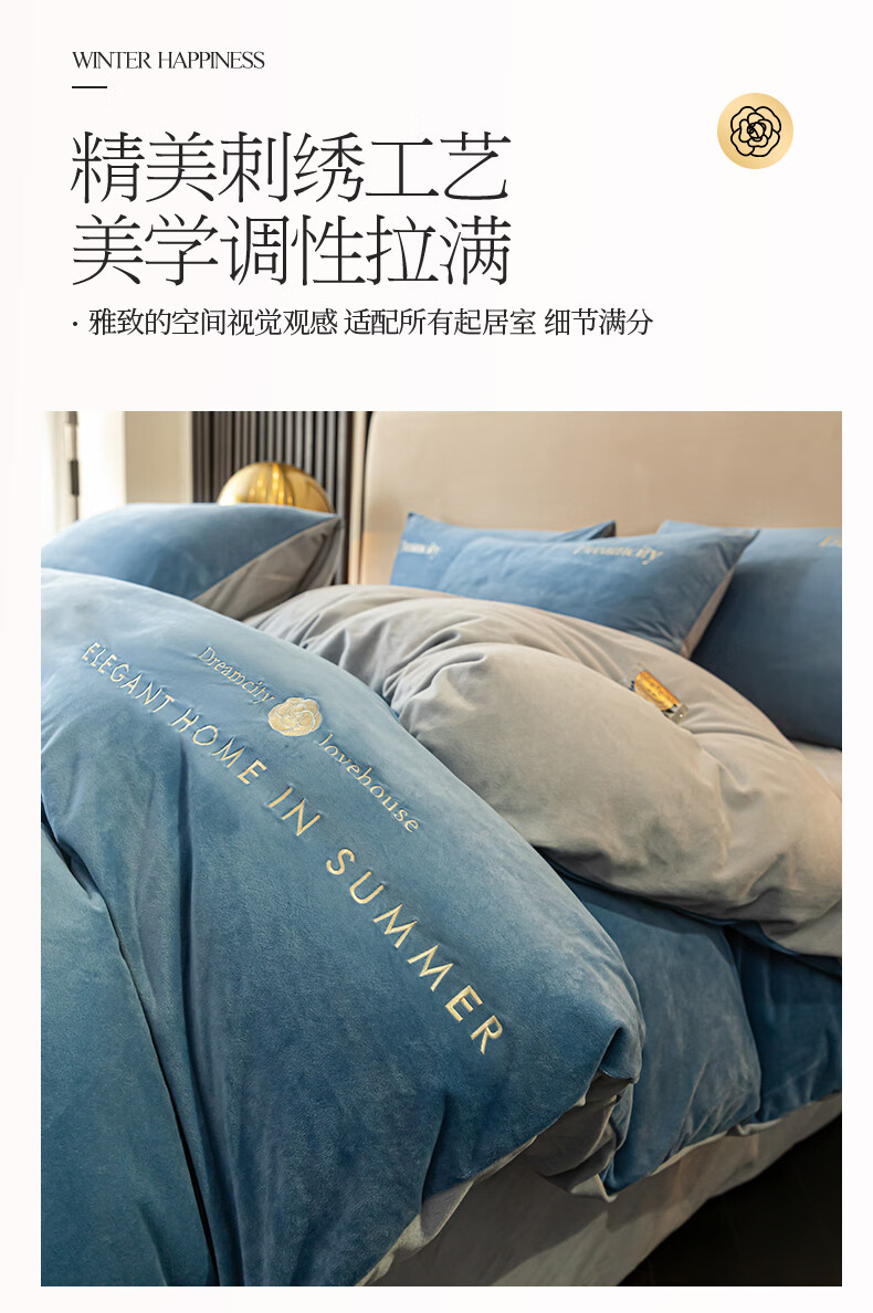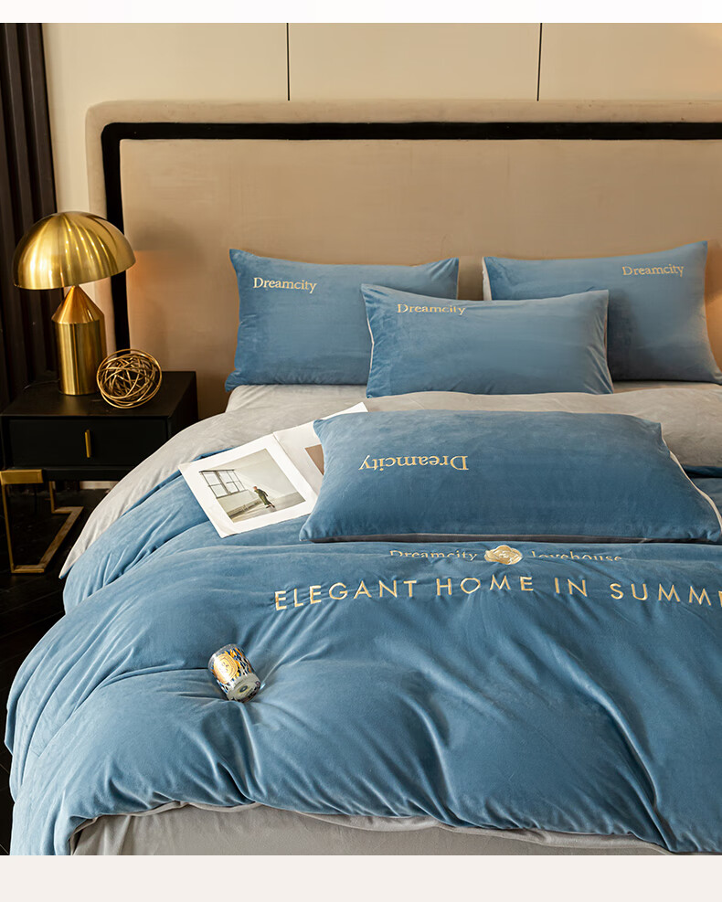 VJE2026新款加厚保暖牛奶绒四件套珊瑚绒法兰绒双面绒床单被套三件套 暗香-宾利蓝 三件套1.2m 床单款 -被套150*200cm