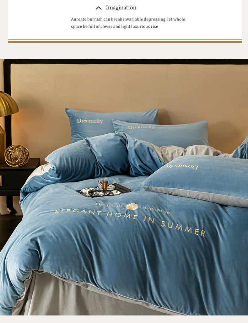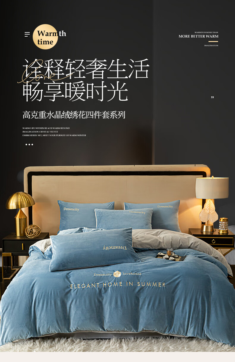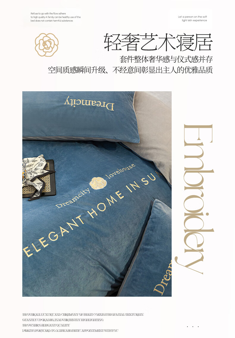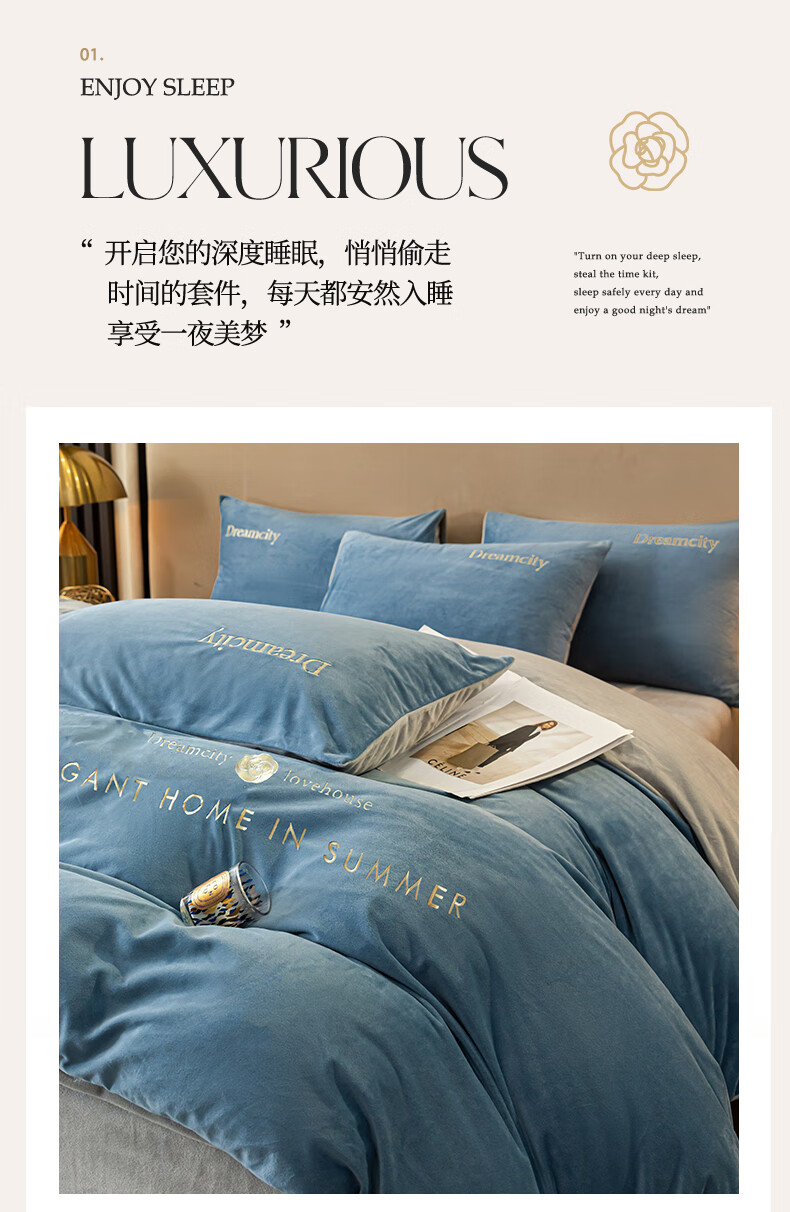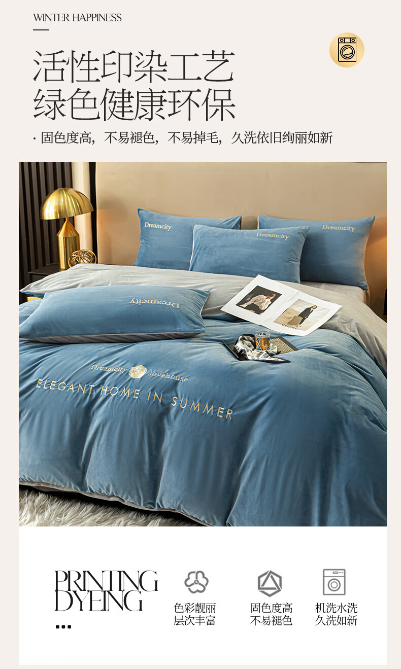 VJE2026新款加厚保暖牛奶绒四件套珊瑚绒法兰绒双面绒床单被套三件套 暗香-宾利蓝 三件套1.2m 床单款 -被套150*200cm