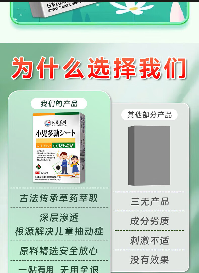 同新堂进口抽动症药专用儿童多动症药频繁眨眼睛小儿可乐定透皮贴片日本 三盒【抽动快速见效】日本进口 乱动注意力不集中清嗓子中药贴