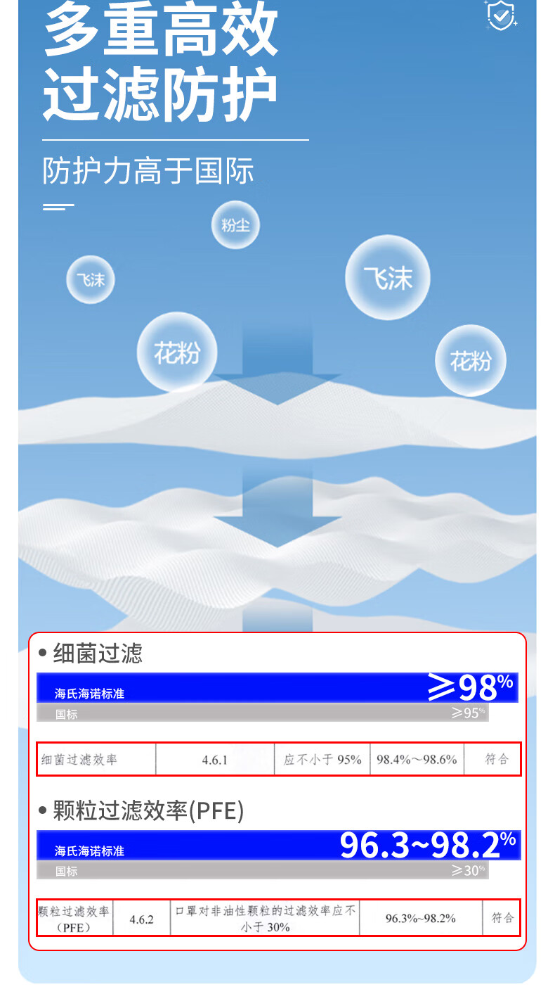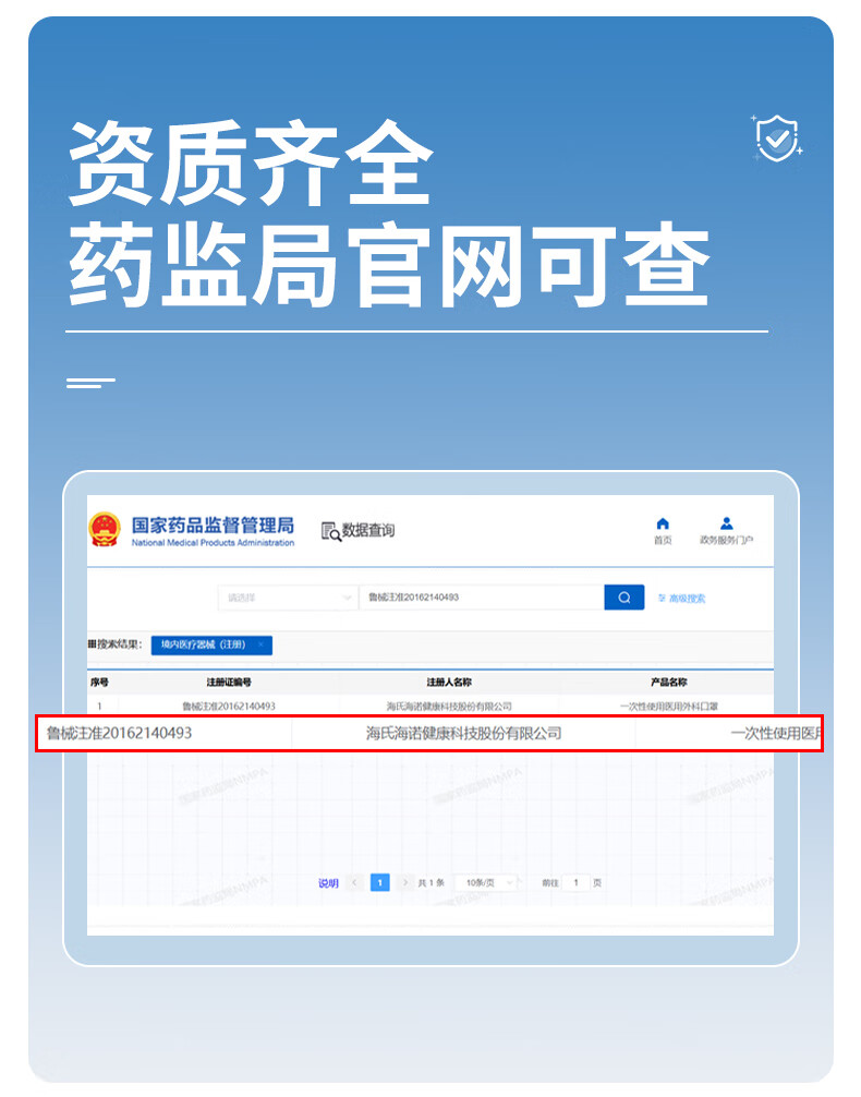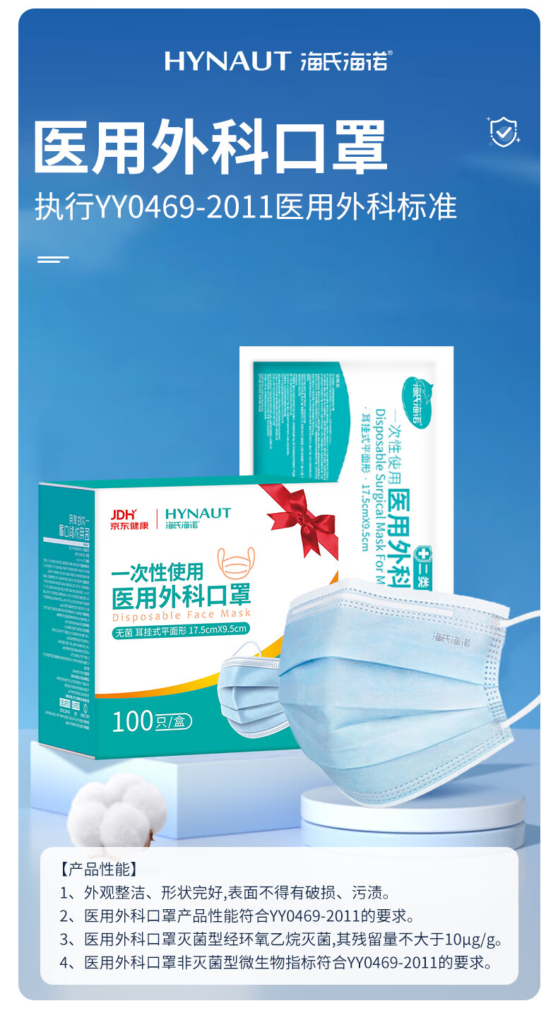 海氏海诺一次性医用外科口罩 灭菌级口罩医用独立包装一只一袋 防尘100只