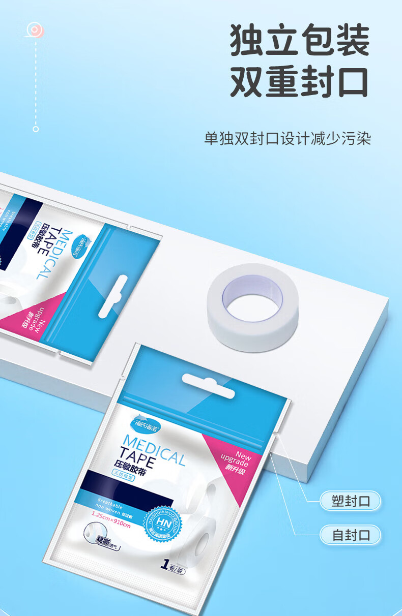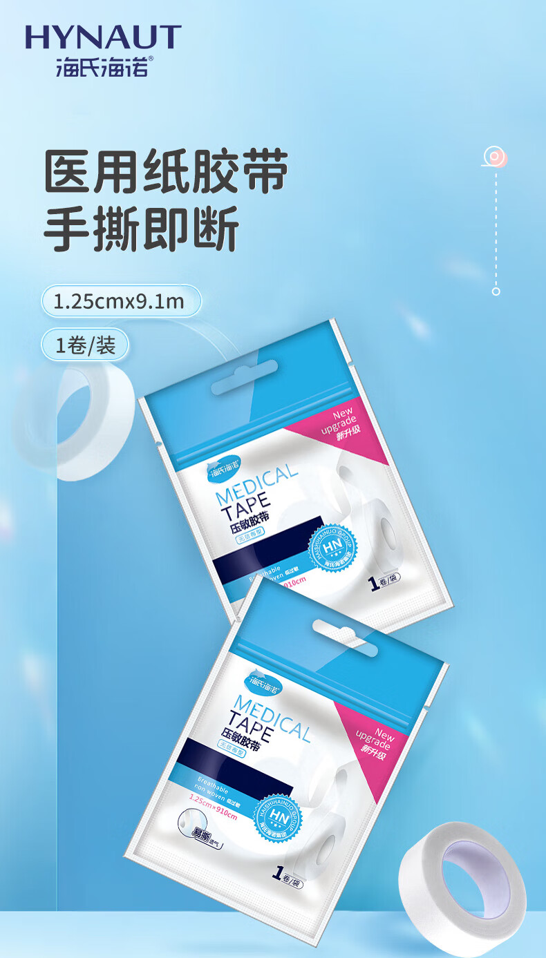 海氏海诺医用胶布纸质无纺布透气压敏胶带胶贴固定包扎1.25*910cm/卷凑单