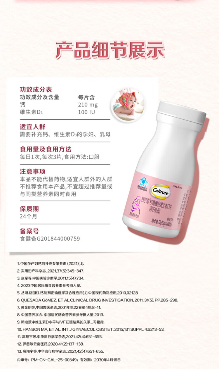 钙尔奇孕妇钙片 备孕成人孕早中晚哺乳期补钙 维生素D3+柠檬酸钙片180片