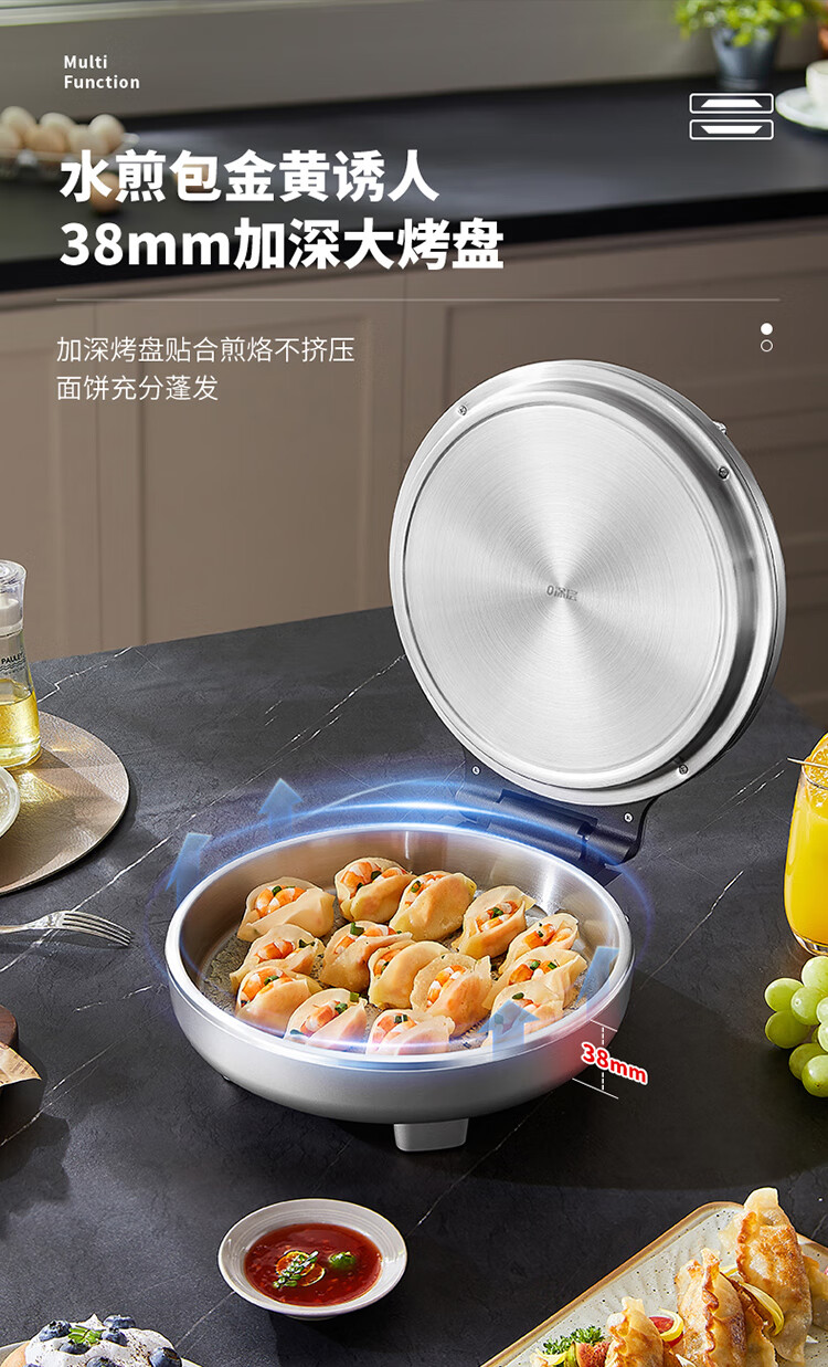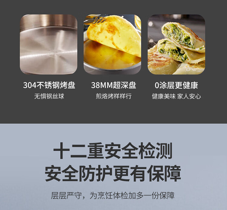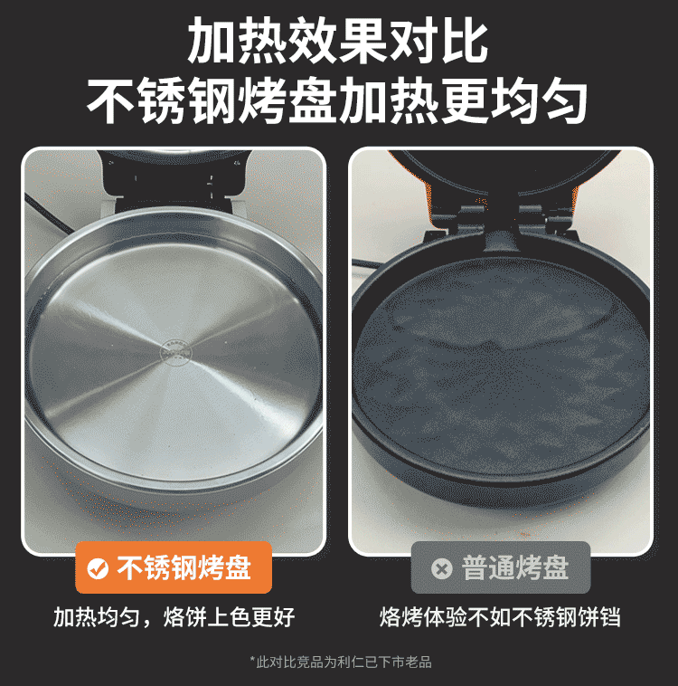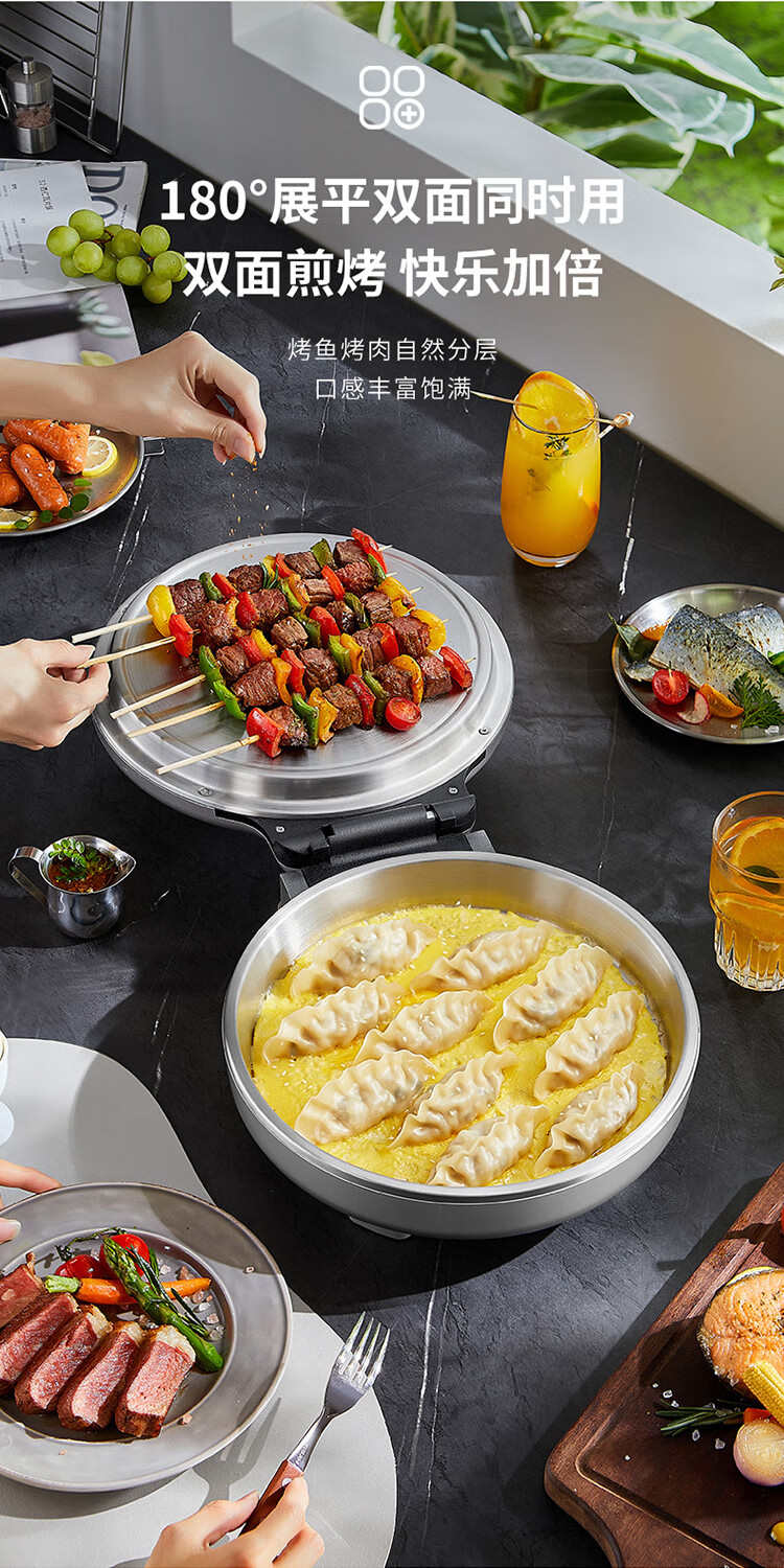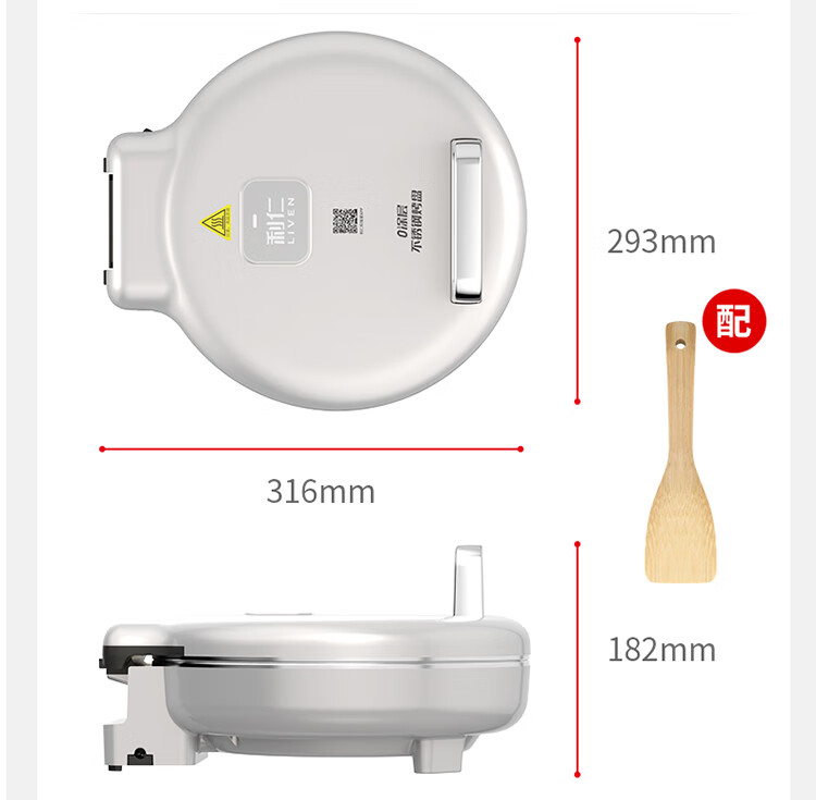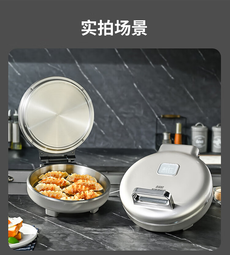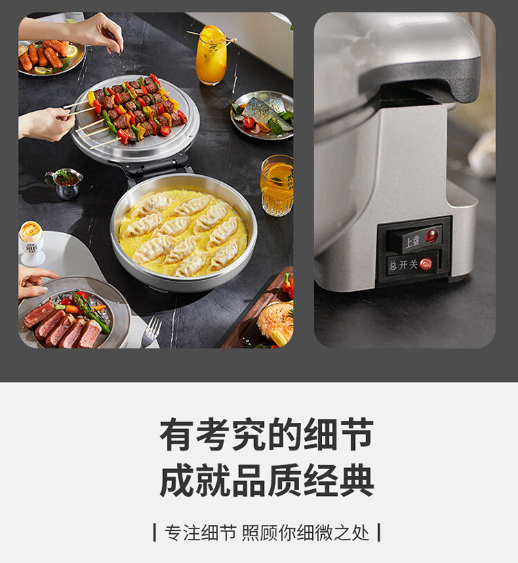 利仁(Liven)小钢人不锈钢电饼铛家用0涂层1800W双面加热电饼档烙饼专用锅无涂层电煎锅早餐机LR-B3097