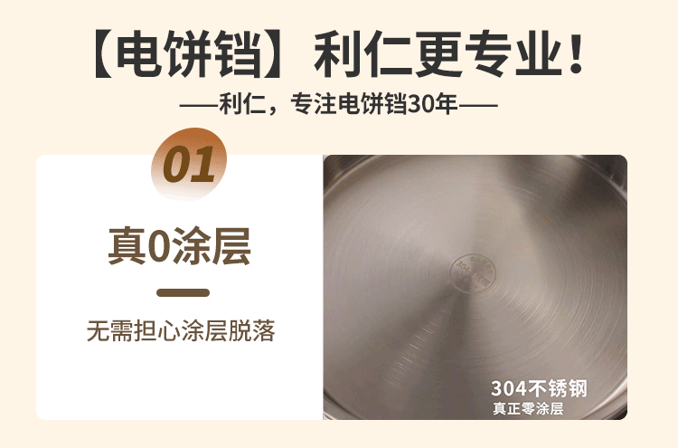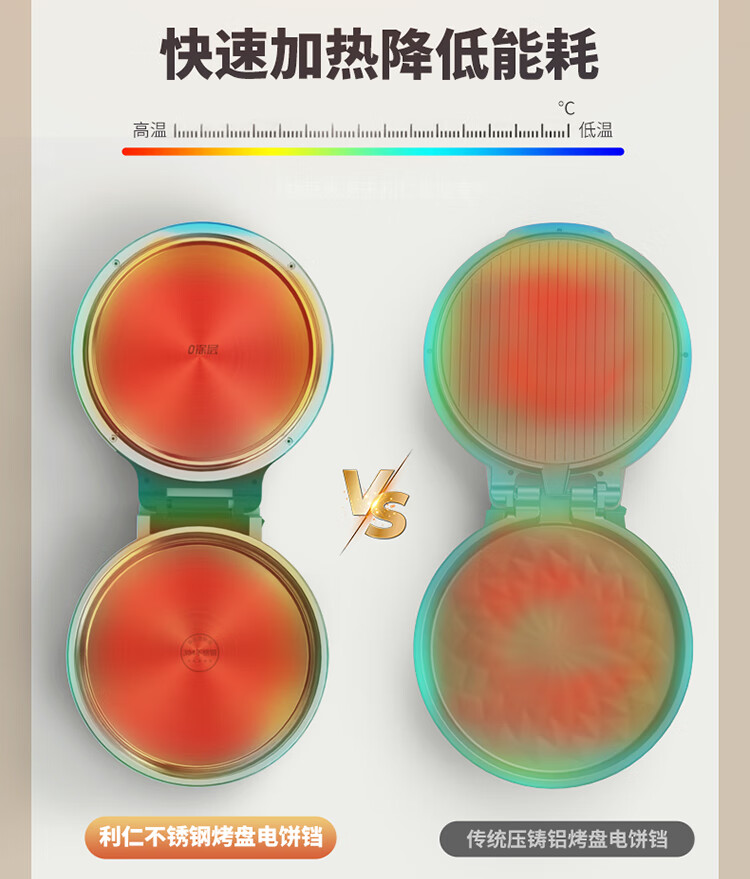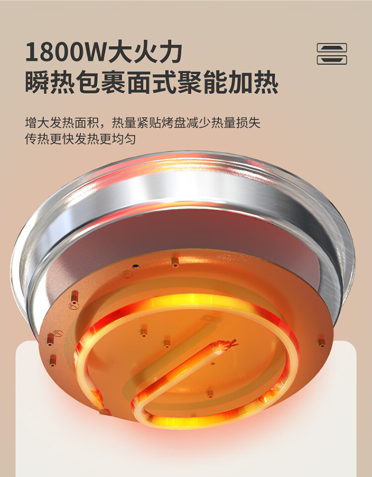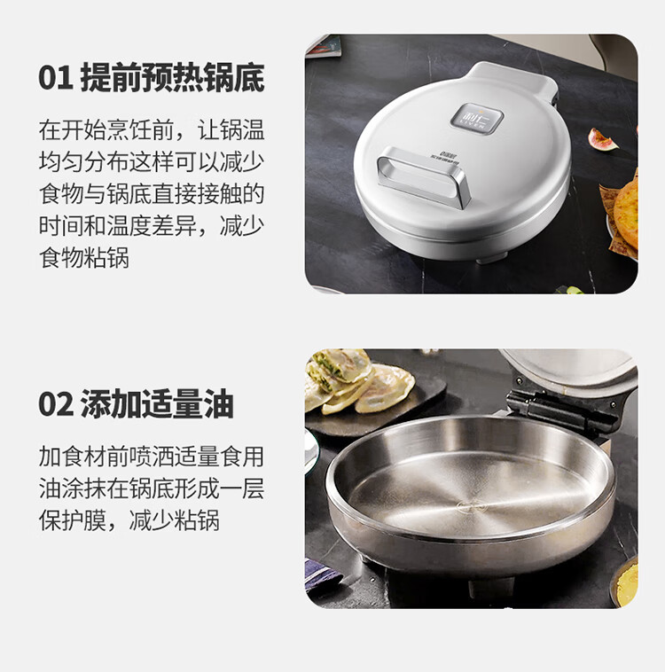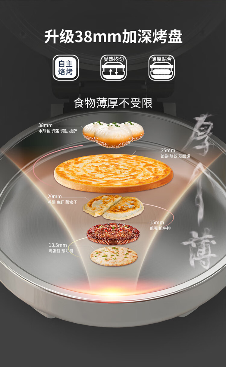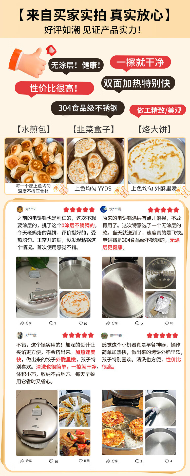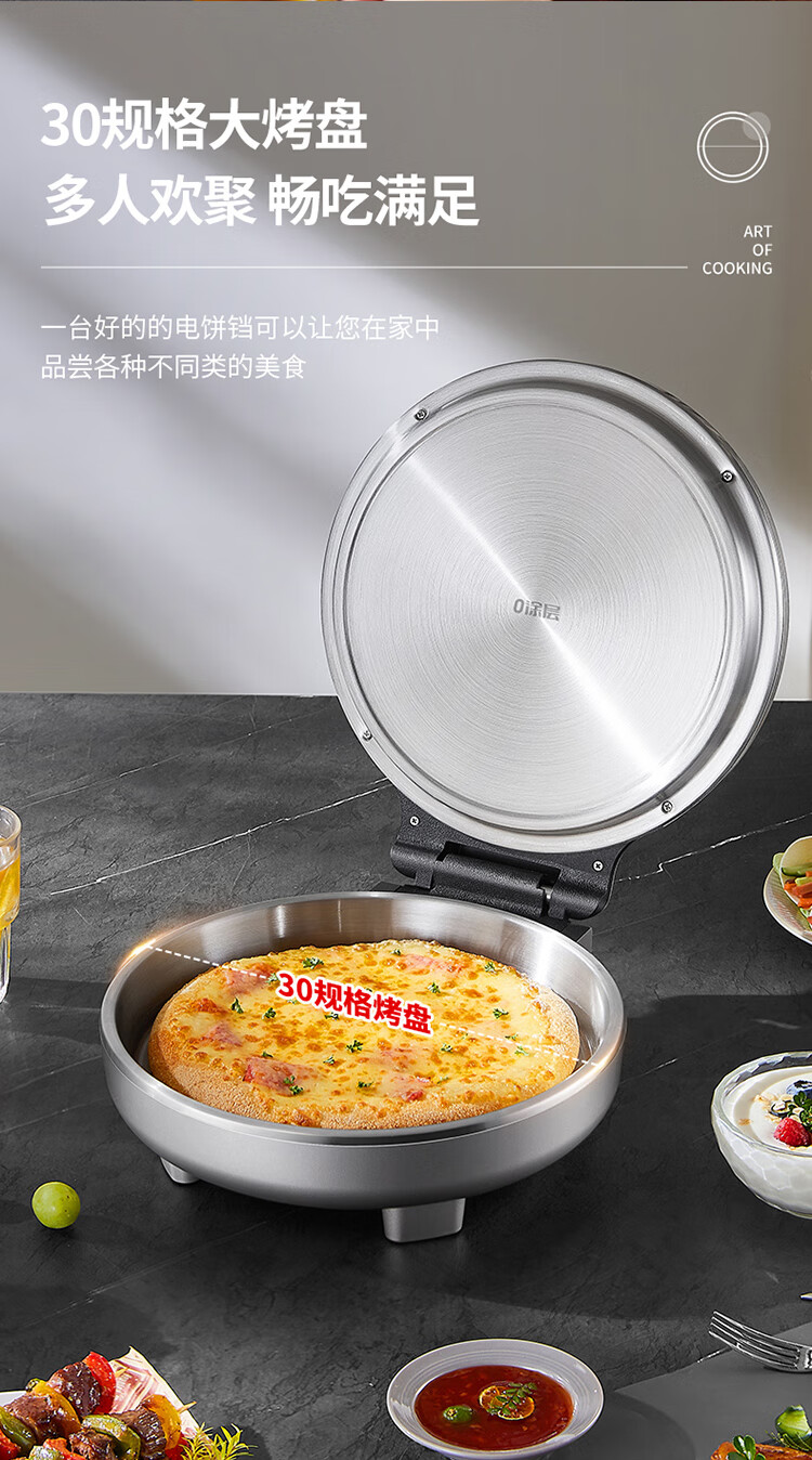 利仁(Liven)小钢人不锈钢电饼铛家用0涂层1800W双面加热电饼档烙饼专用锅无涂层电煎锅早餐机LR-B3097