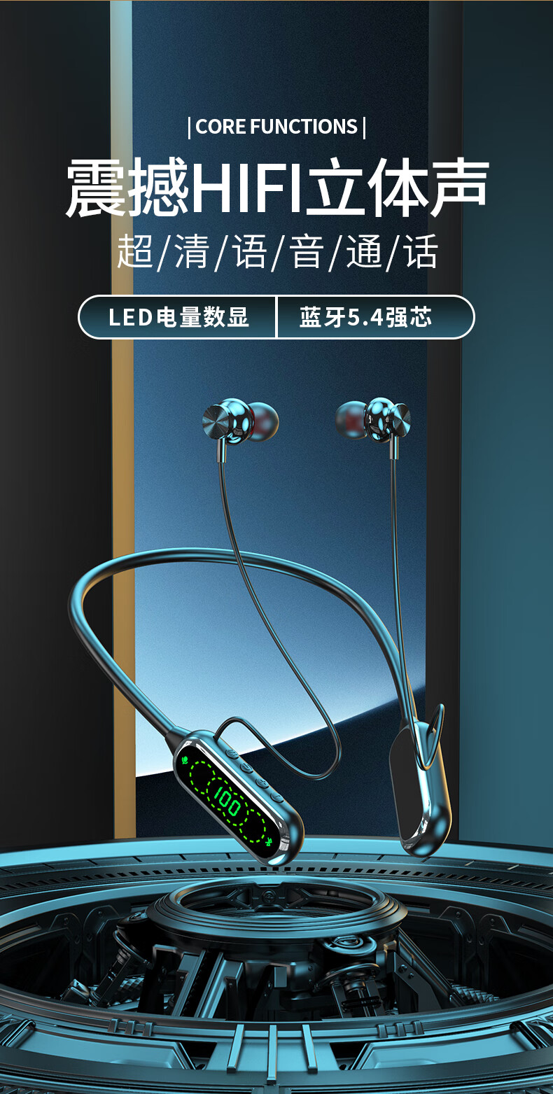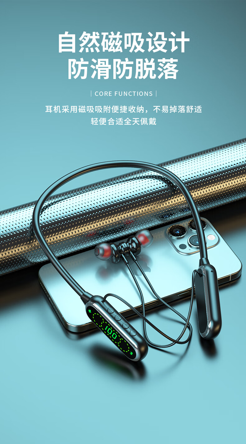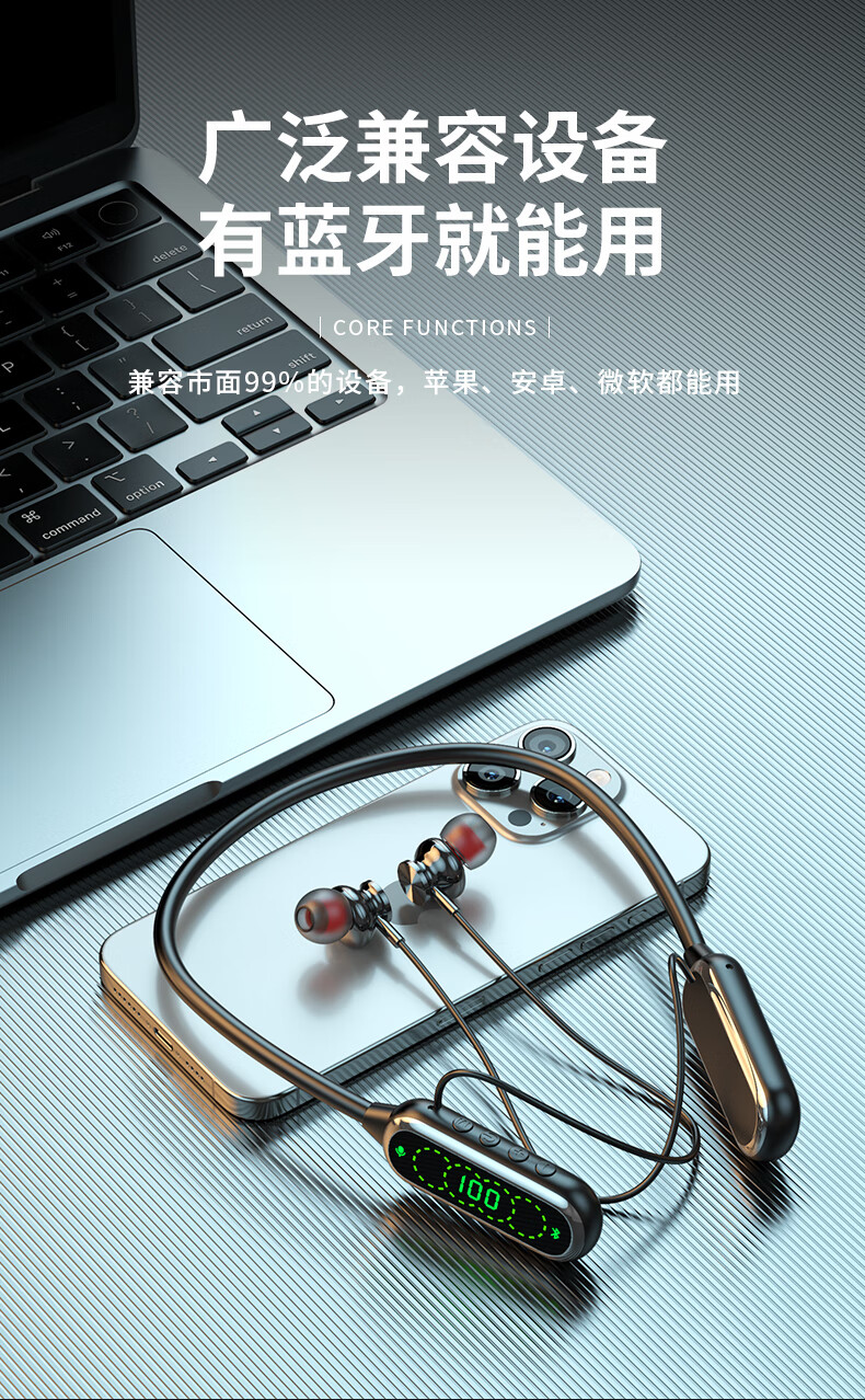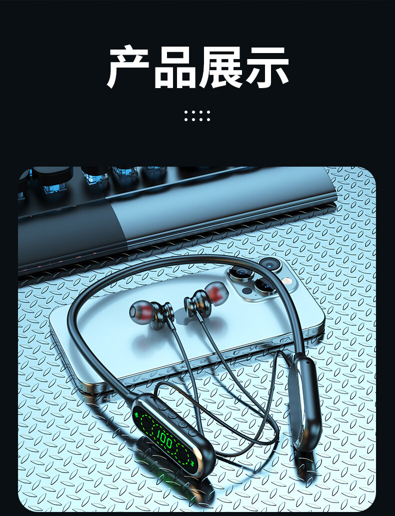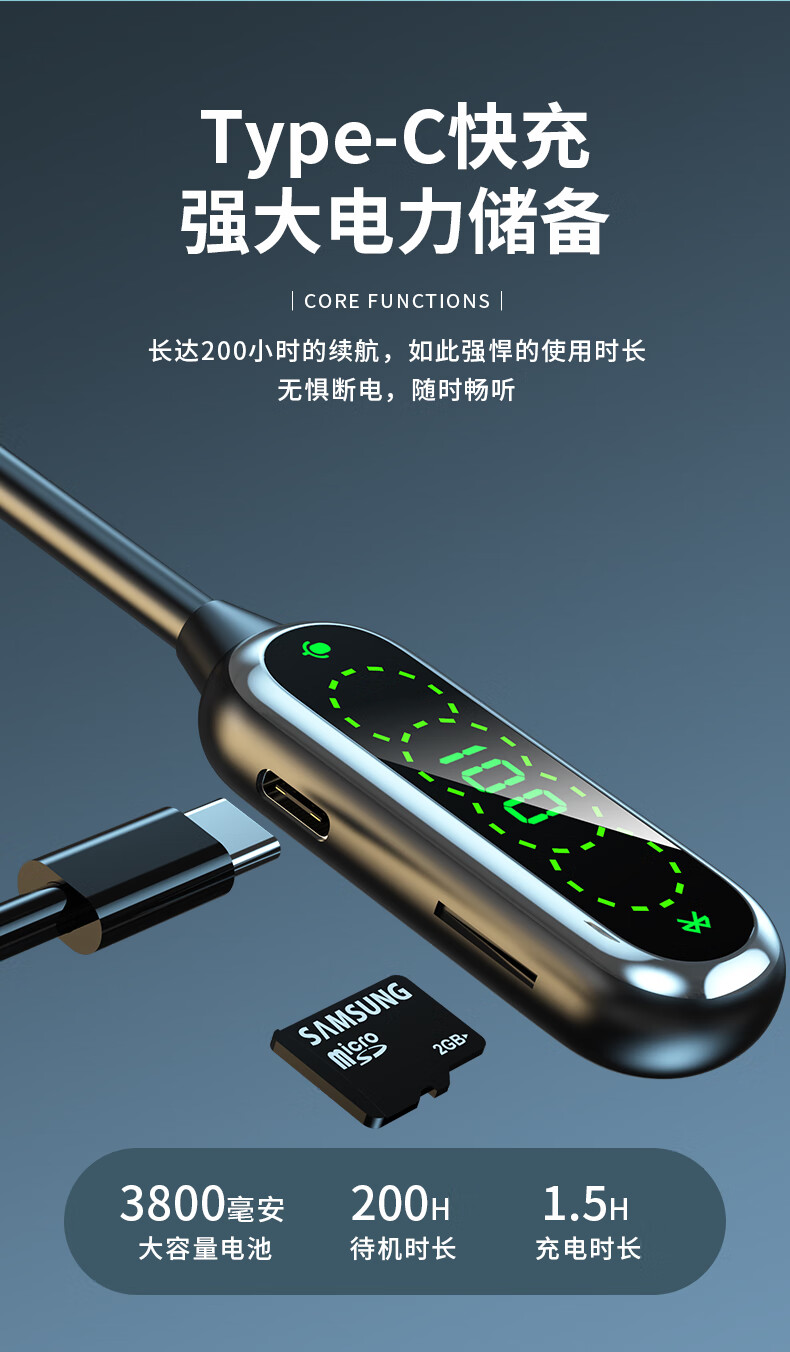 翊晨星通用多功能数显大电池颈挂式蓝牙耳机入耳式K歌耳返立体环绕音效 紫色【最新版】 C03-02 低配
