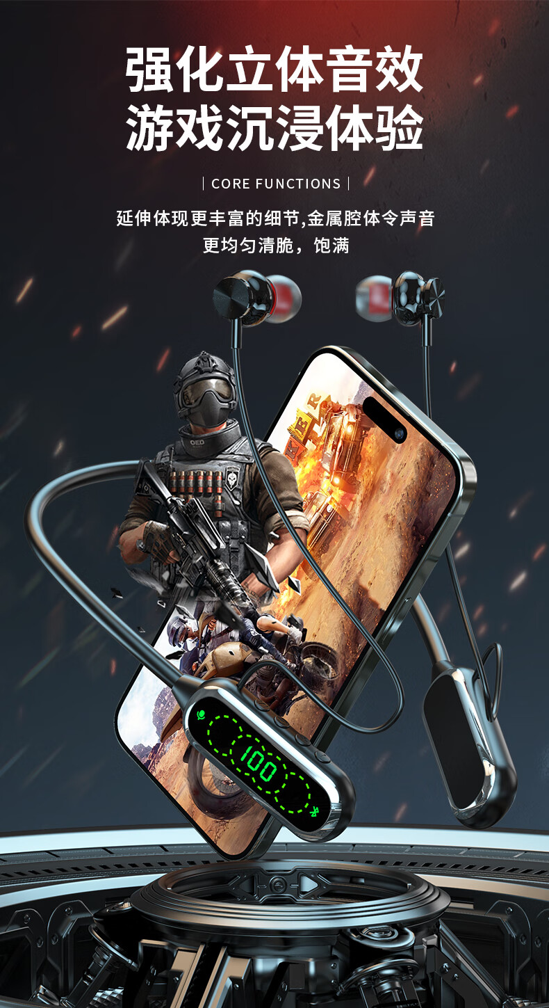 Onedy【芯升级】挂脖式无线蓝牙音箱重低音炮OWS外放式不入耳机可插卡hifi立体声音响降噪超清通话 升级版【可插卡+HiFi立体声】