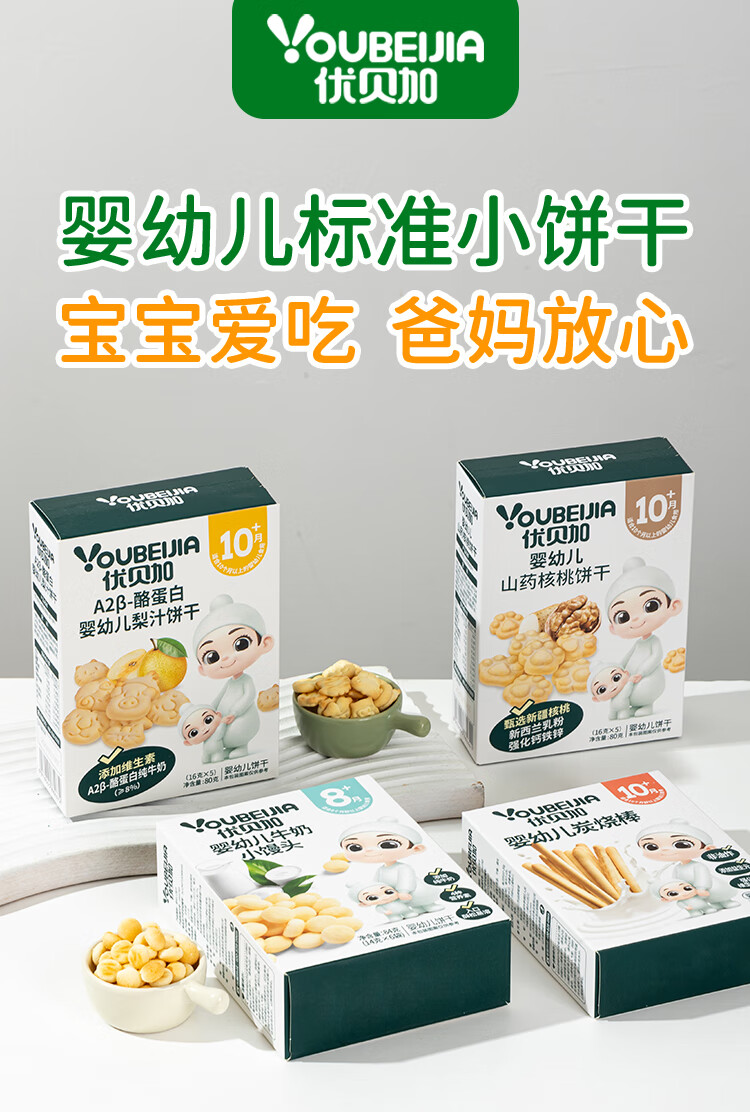 优贝加婴幼儿小馒头炭烧棒山药核桃饼干0添加色素婴标儿童磨牙饼干零食 婴幼儿梨汁饼干*3盒