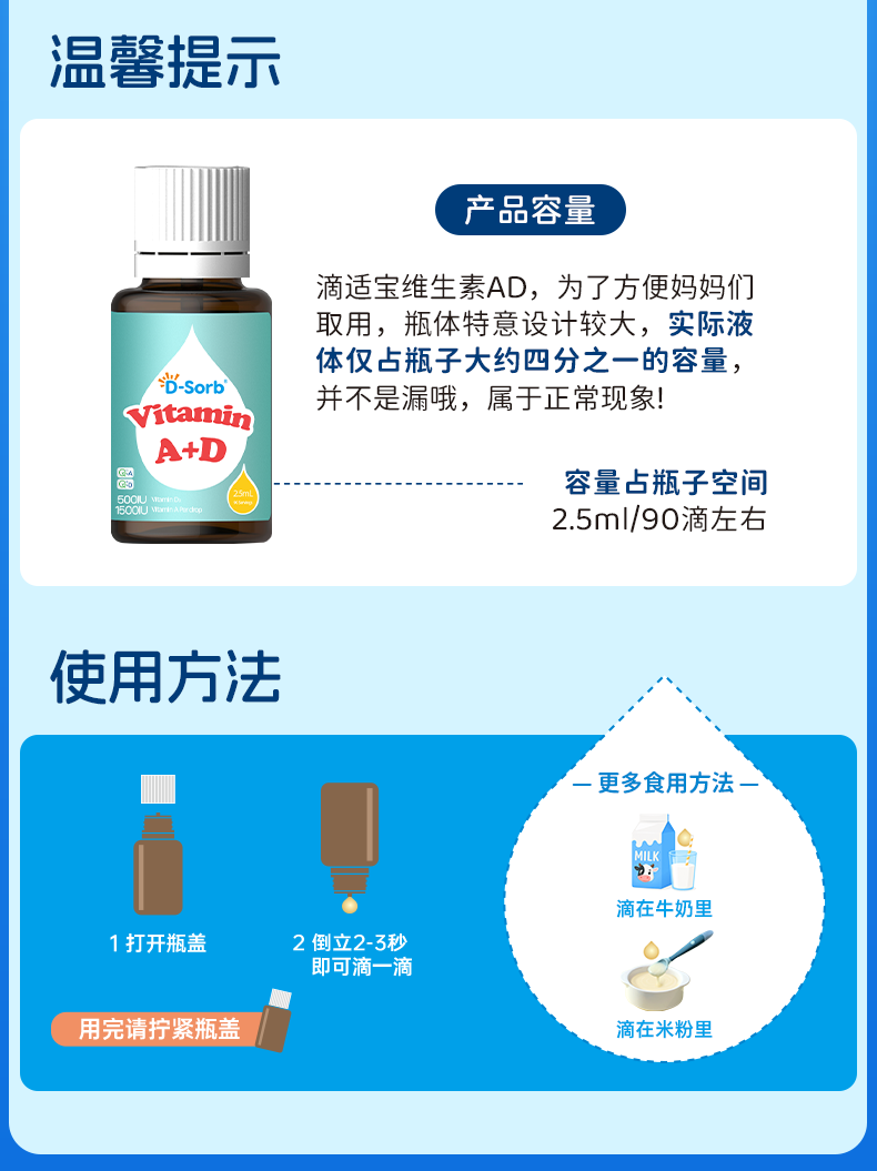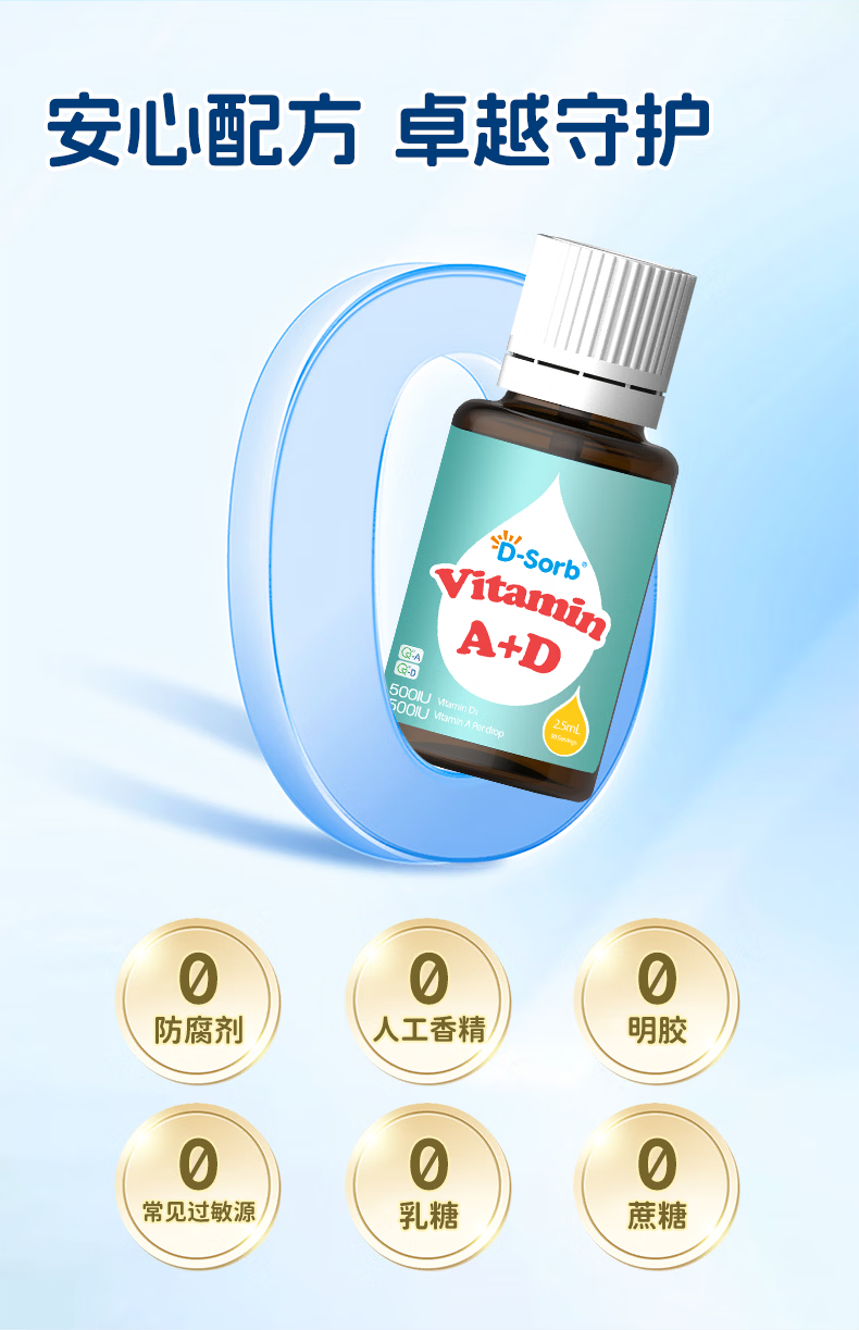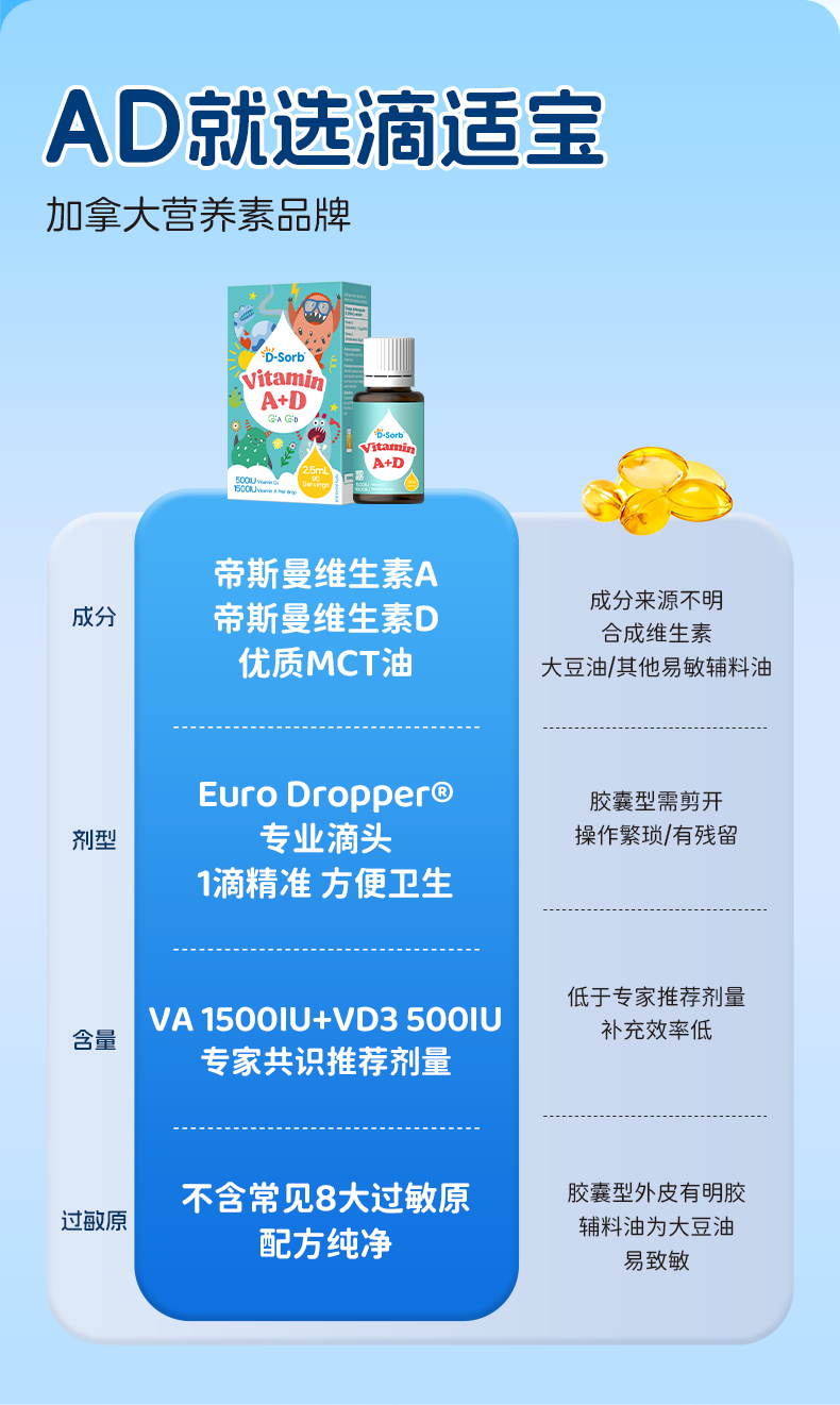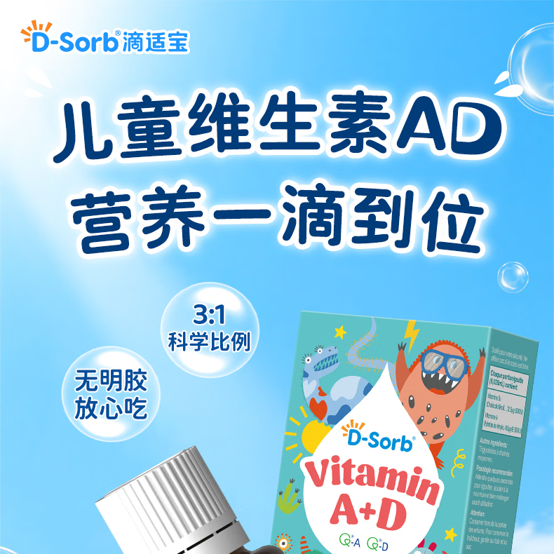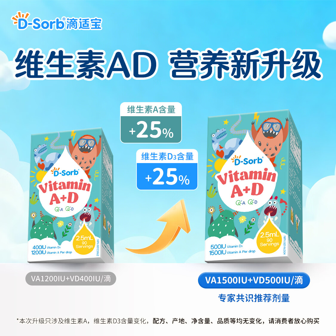 D-Sorb滴适宝维生素AD滴剂儿童维生素ad滴剂ADvd3滴剂加拿大原装进口 维生素AD滴剂1瓶装 2.5ml*1瓶