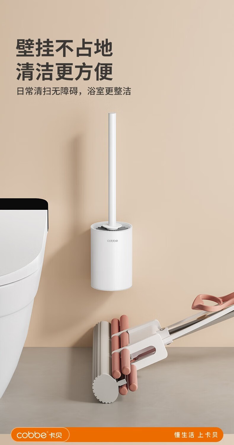 卡贝(cobbe)马桶刷厕所清洁刷子壁挂免打孔卫生间洁厕刷浴室太空铝白硅胶刷头 壁挂落地-马桶刷灰【硅胶刷头】