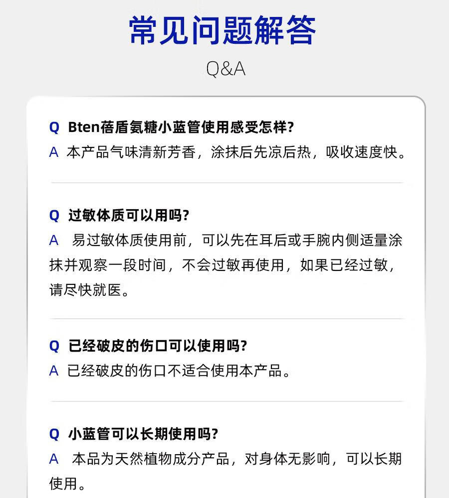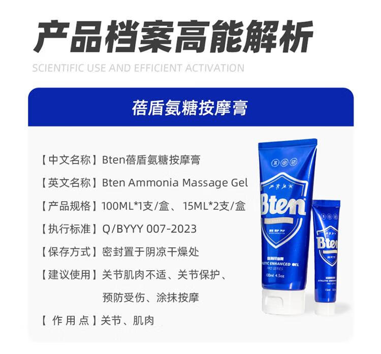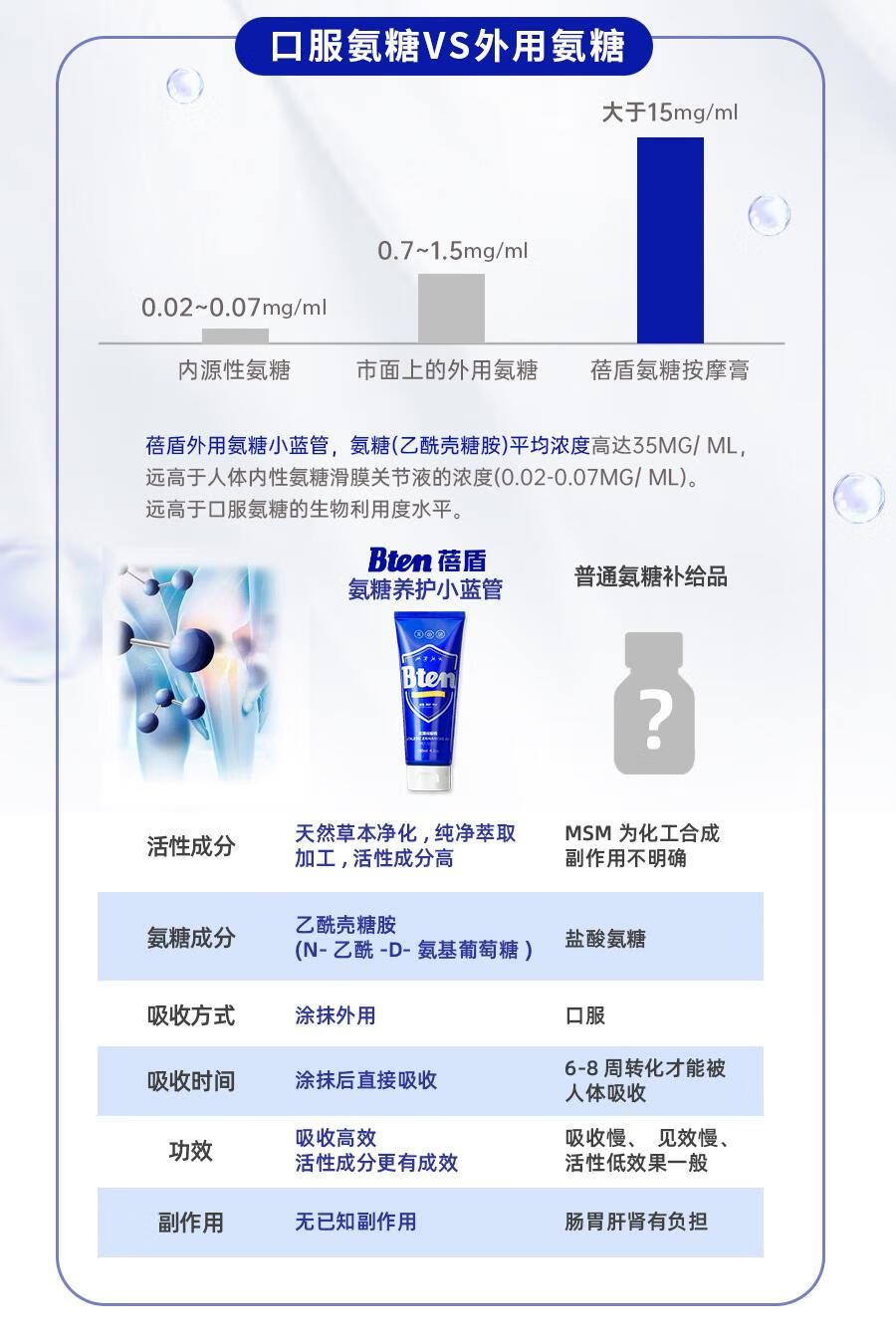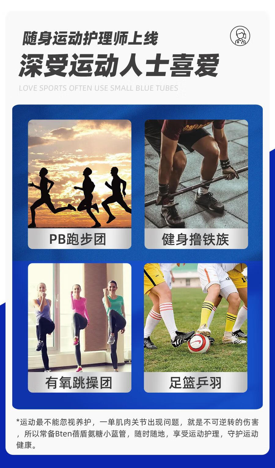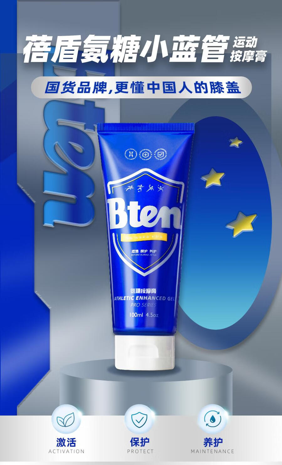 蓓盾Bten小蓝管氨糖涂抹膏外用干燥随身跑步小绿管膝盖保养氨糖软骨素 【1支100ml+2支15ml】到手2盒