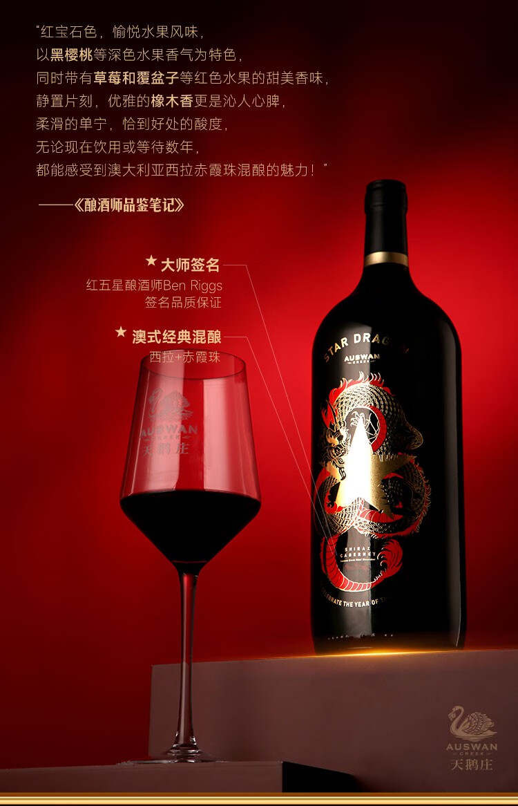 天鹅庄马年生肖红酒澳大利亚干红葡萄酒1500ML珍藏酒原酒进口年货送礼盒 【马上发财】马年生肖大酒 1.5L*单支