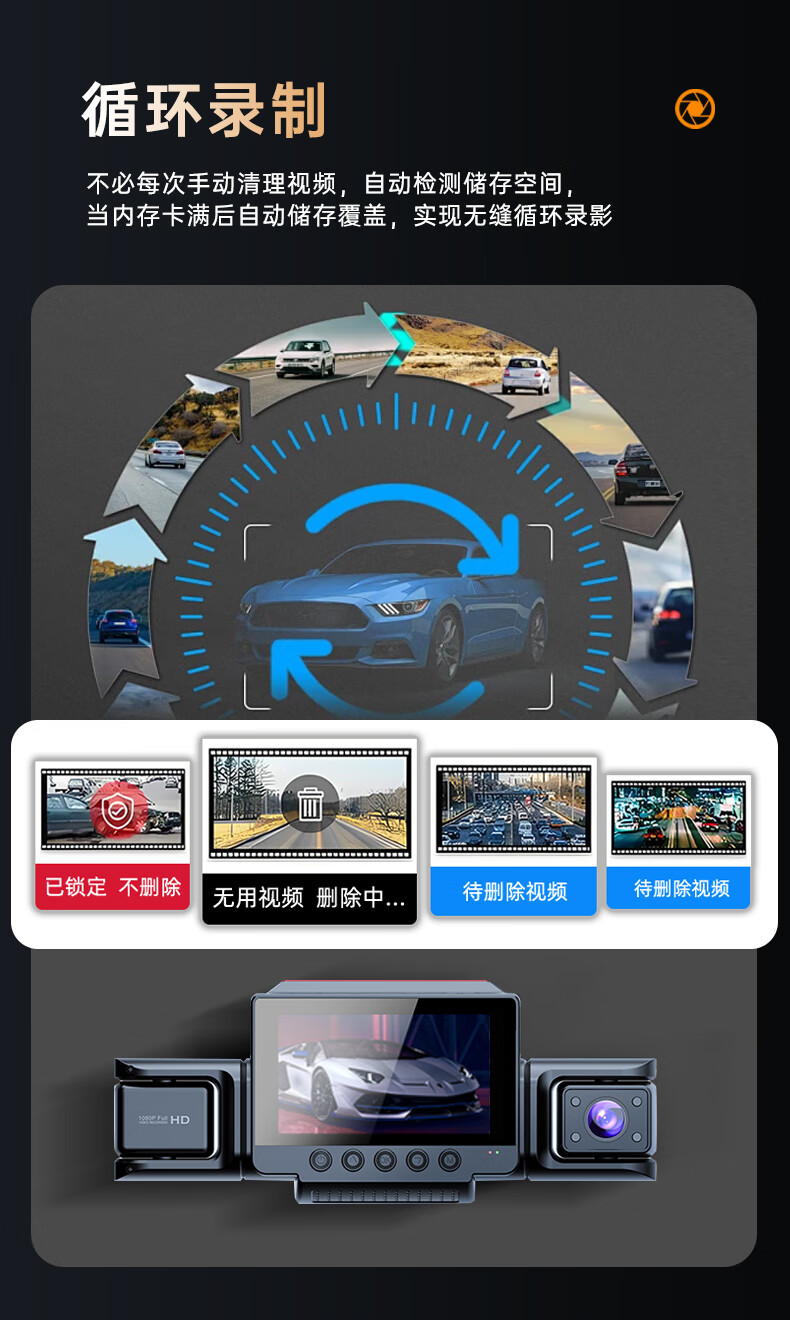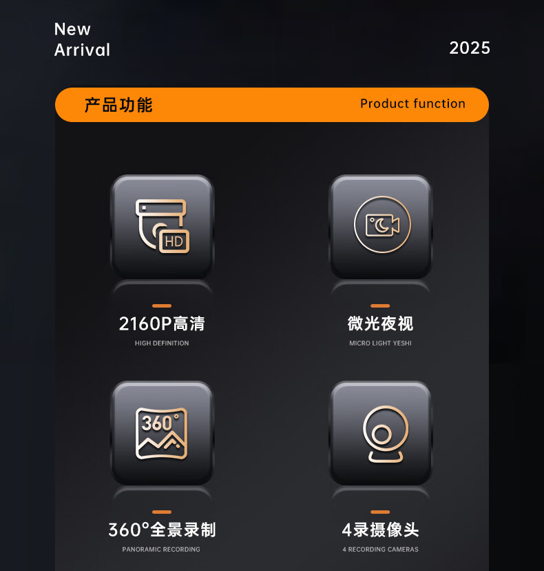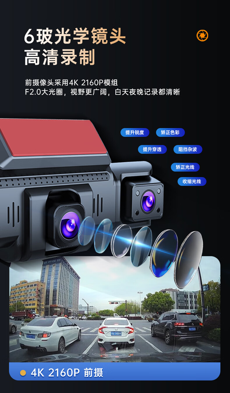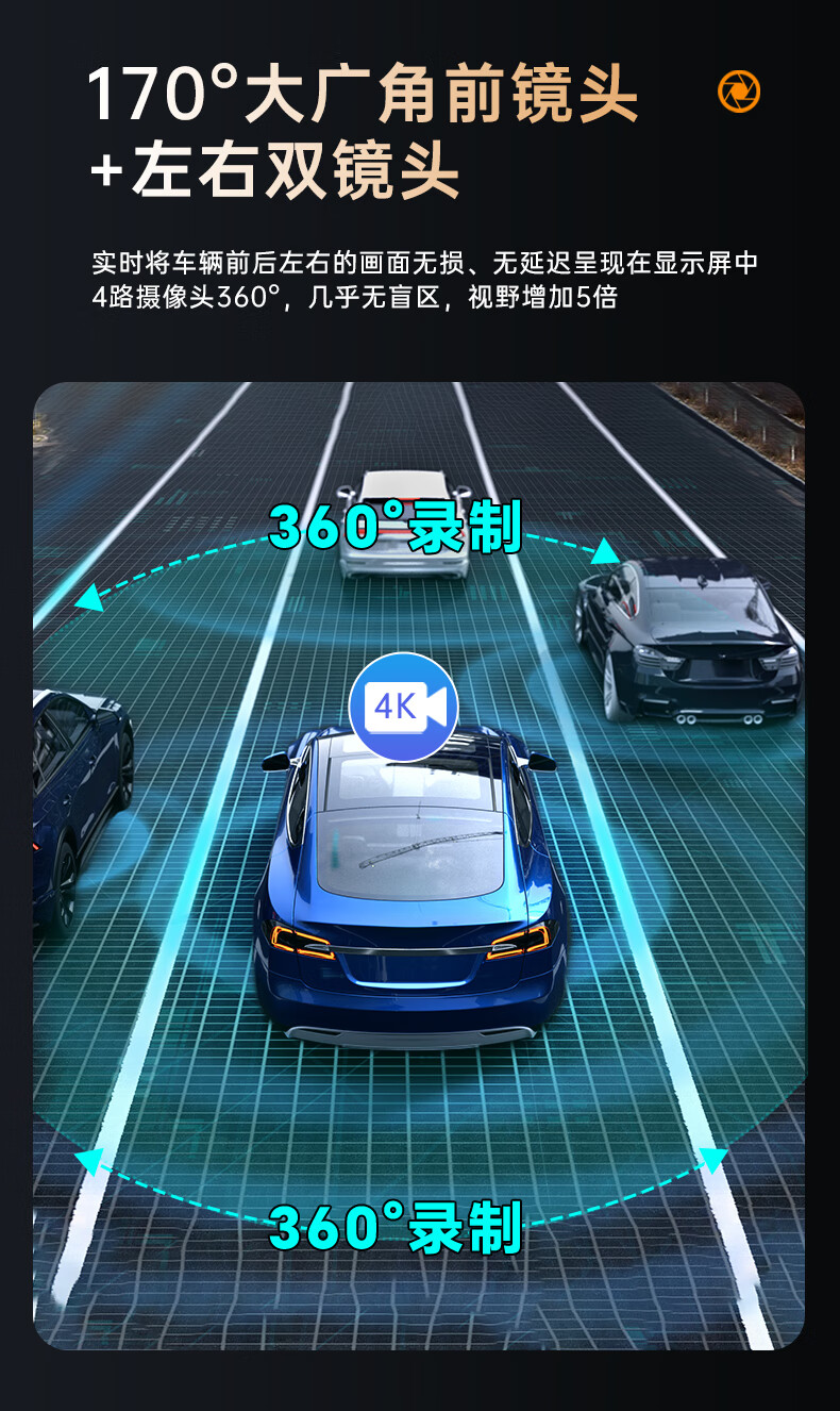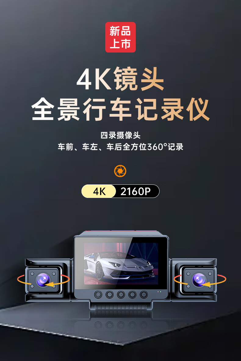 YZKNG【前后左右录像】2026新款4K高清行车记录仪360全景4镜头倒车画面 点烟器取电+降压线取电【带24小时停车监控】 四镜头全景+移动侦测+手机互联+哨兵模式+64G