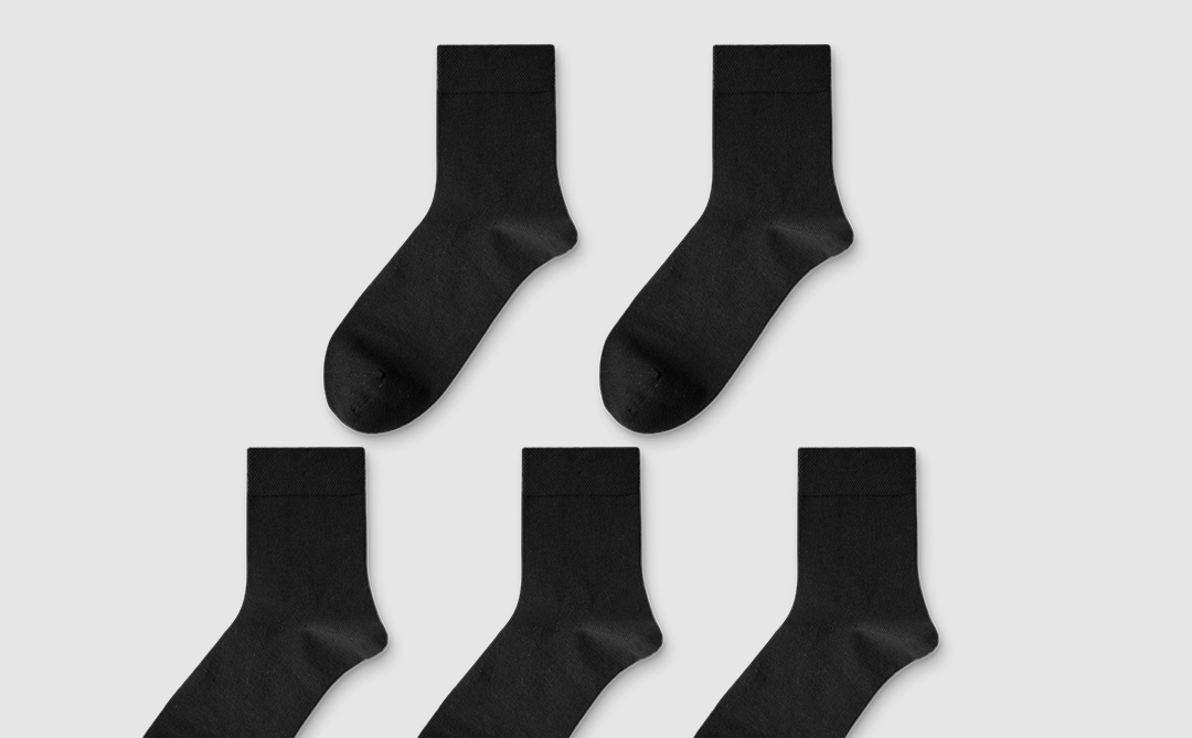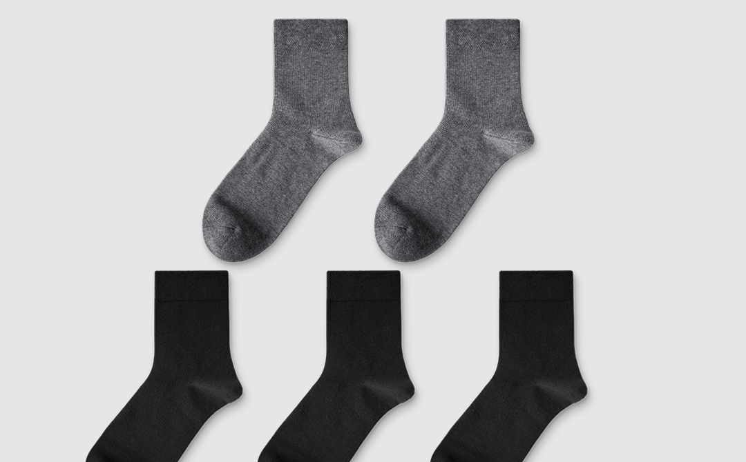 粒米 粒米袜子男抗菌百搭休闲棉袜透气吸汗秋冬中筒袜男袜5双装 男士中筒平纹袜(黑色×3 中麻灰×2)