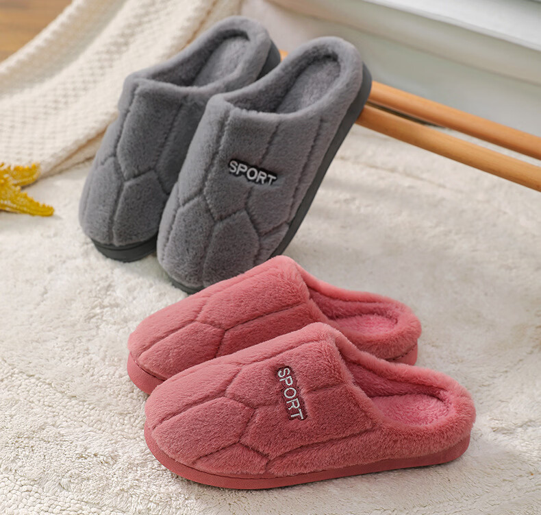 【现发】棉拖鞋女家用室内保暖厚底情侣毛拖鞋男秋(偏小一码) 灰色【菱形毛绒】 36 /37