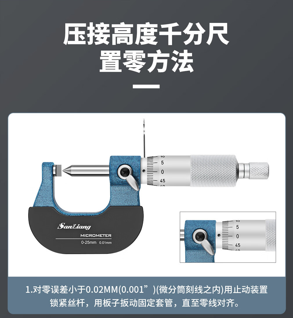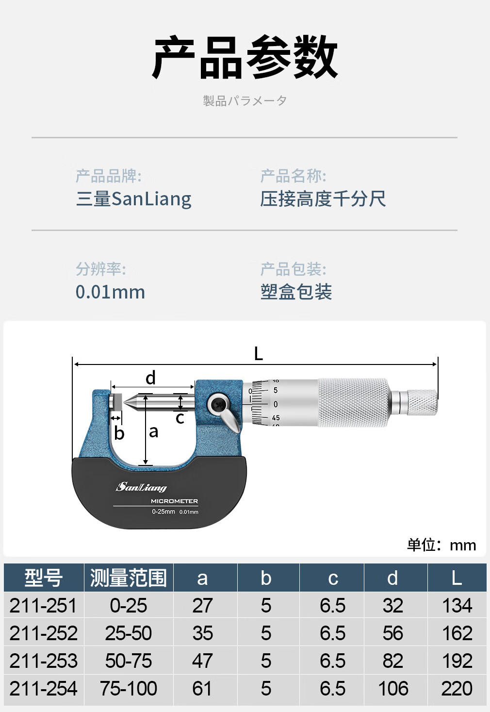 三量(sanliang)三量扁尖头千分尺0-25mm数显千分尺压接高度尺螺旋测微器仪 压接高度千分尺211-251 0-25mm 无规格