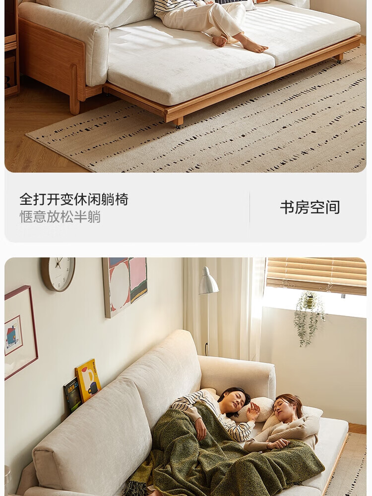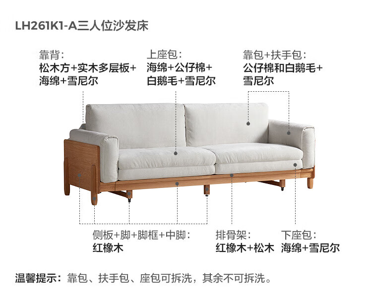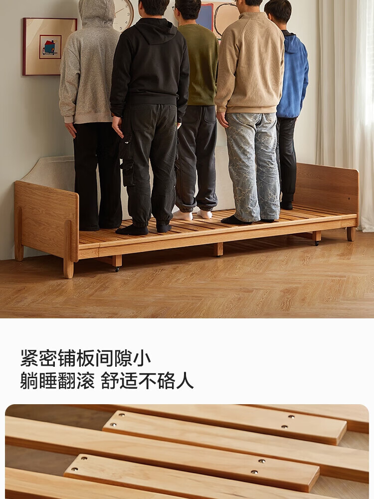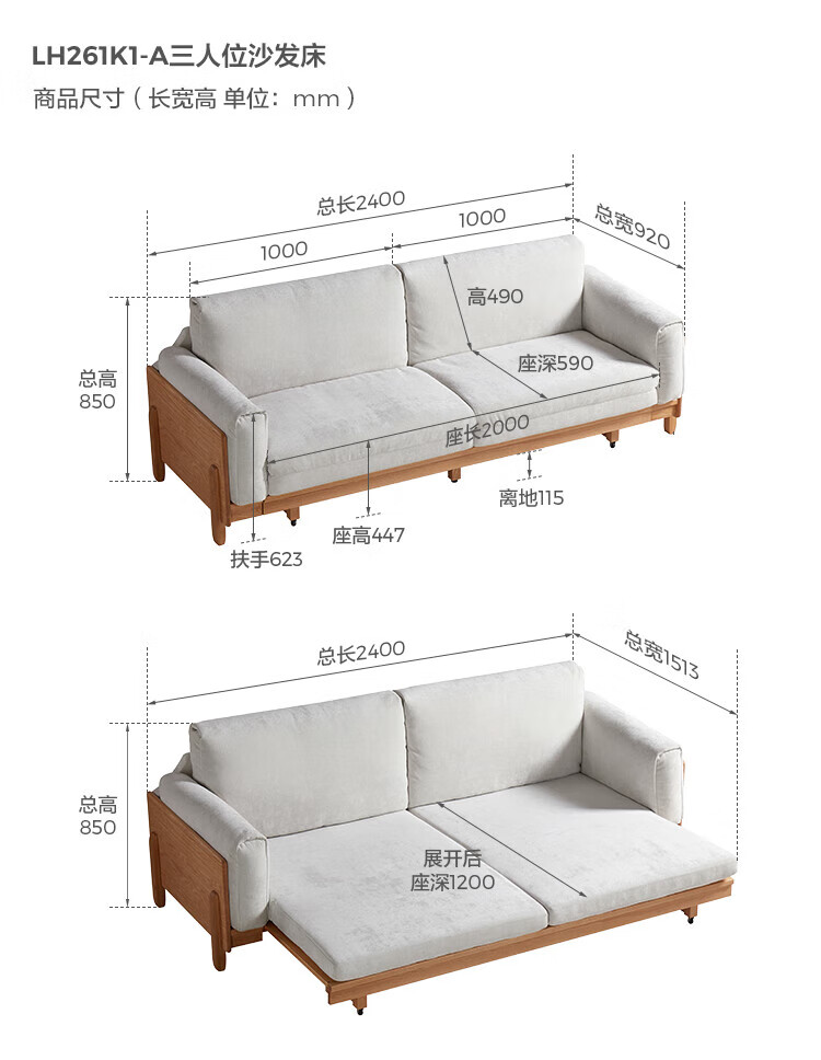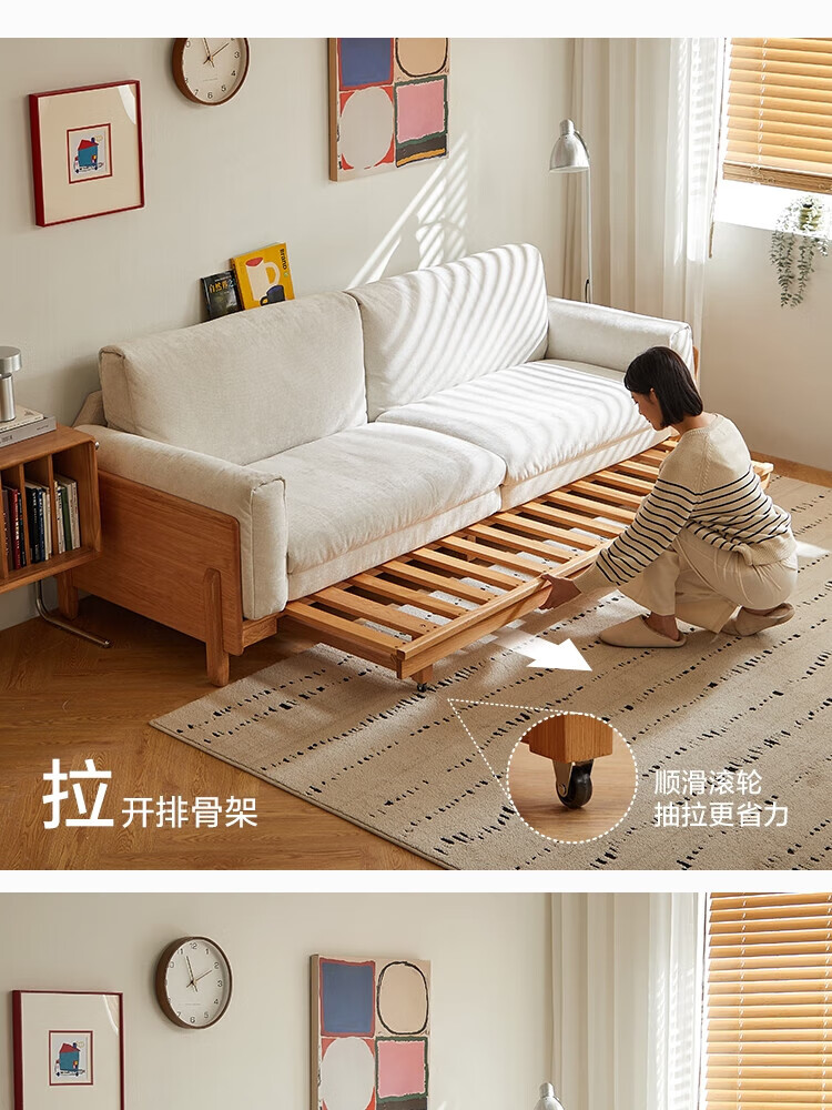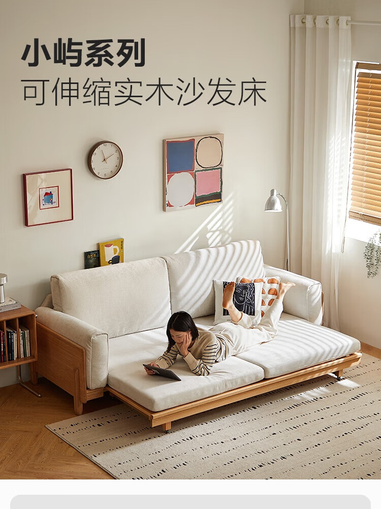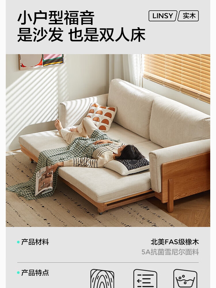 林氏家居可伸缩实木沙发床客厅2025新款橡木小户型木业小屿系列LH261K1 【汝窑灰+原木色】三人位沙发床