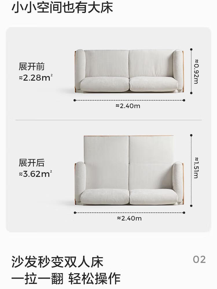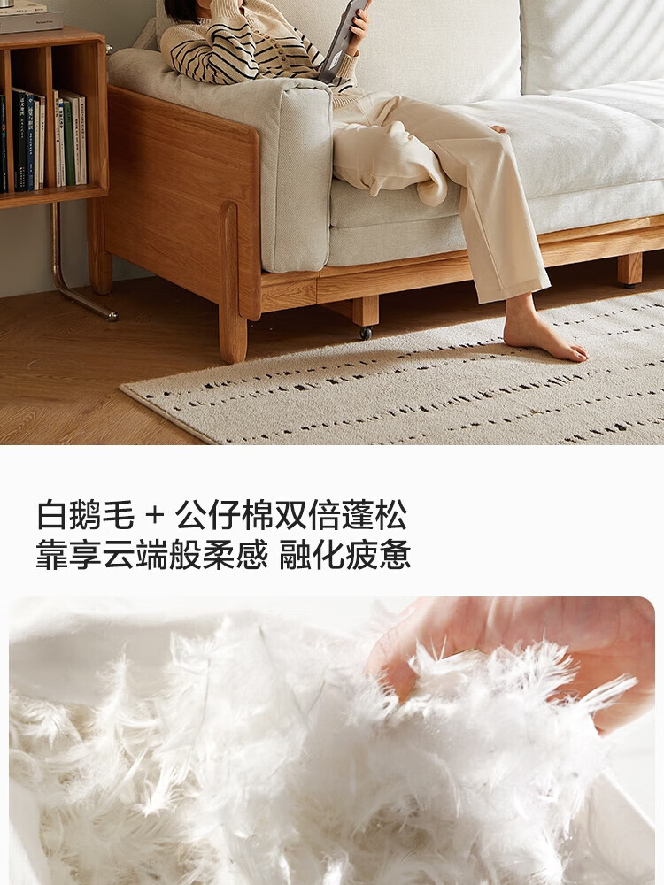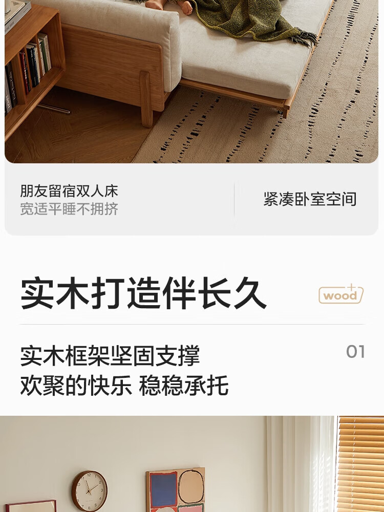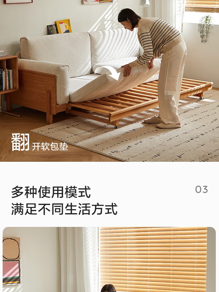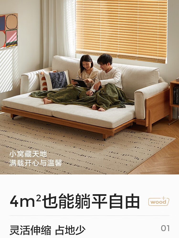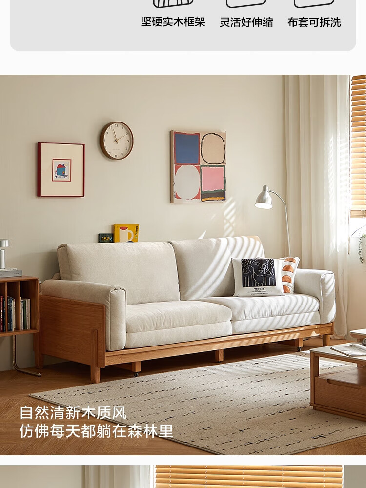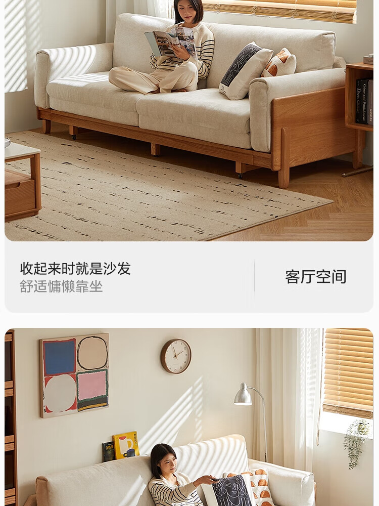 林氏家居可伸缩实木沙发床客厅2025新款橡木小户型木业小屿系列LH261K1 【汝窑灰+原木色】三人位沙发床