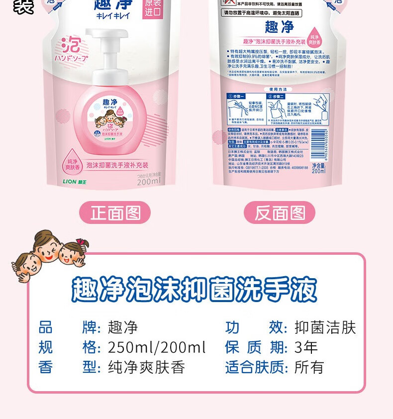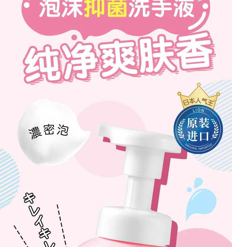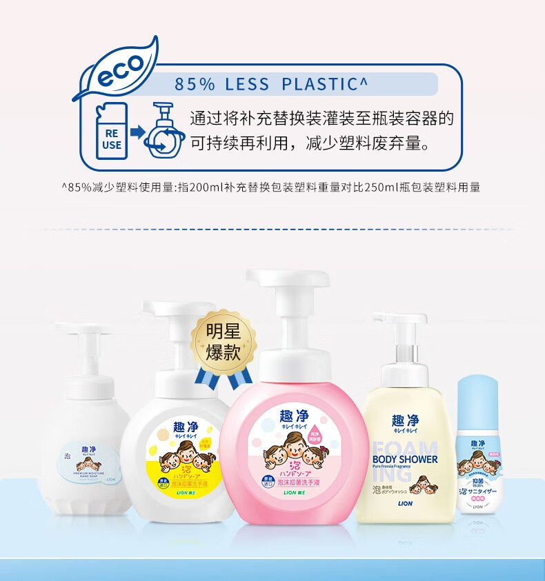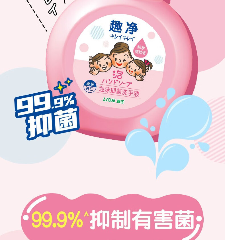 狮王(Lion)趣净泡沫抑菌洗手液混合香型200ml*4清爽易冲洗保湿润护抑菌儿童