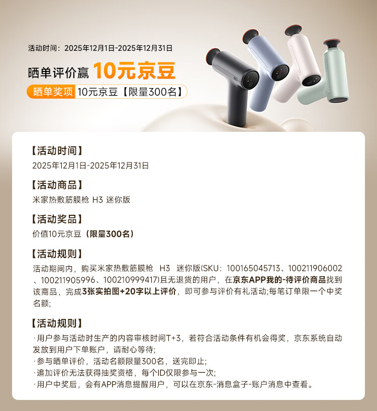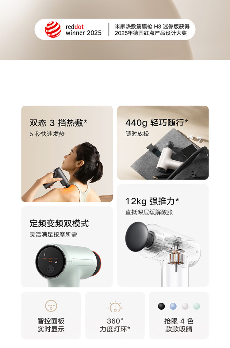 米家(MIJIA)小米筋膜枪H3 迷你版 珠光沙 热敷健身按摩仪按摩器肩颈全身肌肉按摩送父母生日节日新年礼物