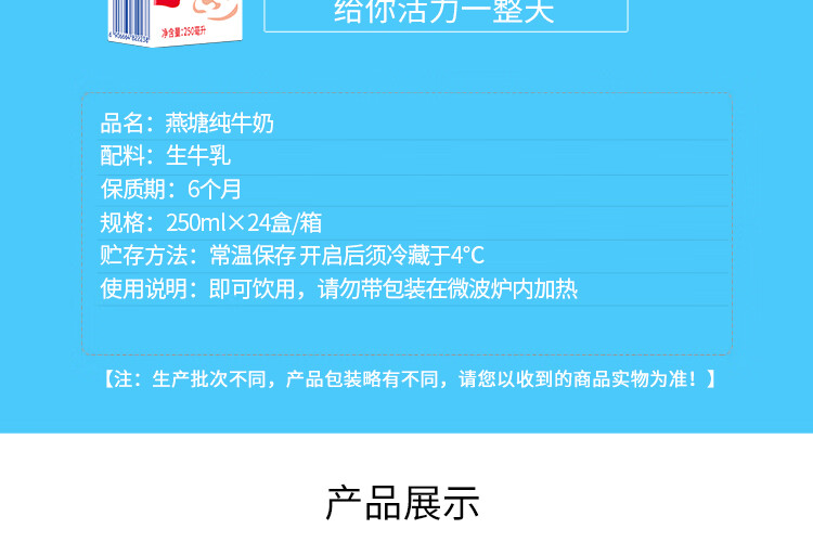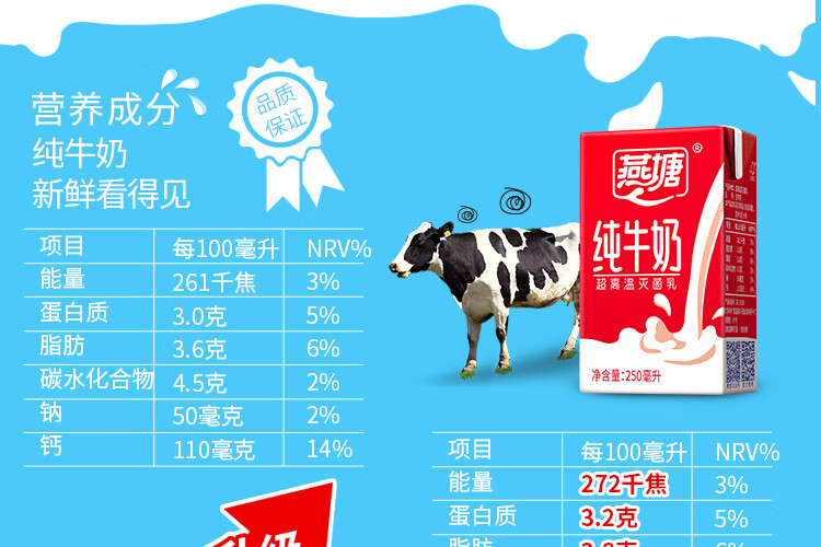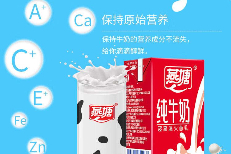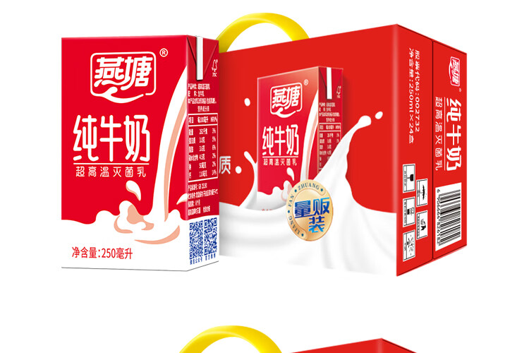 燕塘 全脂纯牛奶 250ml*24盒 量贩装 牛奶整箱 送礼盒装 营养早餐