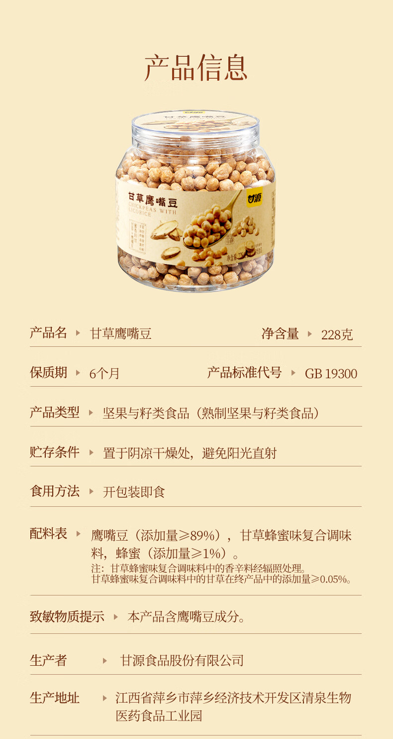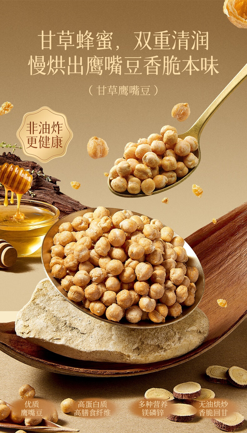 甘源牌甘草蜂蜜即食鹰嘴豆228g坚果炒货免煮高蛋白健身粗粮代餐大颗粒